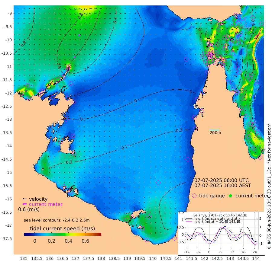 22cm/s 115T +3cm/s rms + 7cm/s -42T. ARA-GOC87 57m 12cm/s 14T +3cm/s rms + 2cm/s -2T. ARA-GOC87 60m 23cm/s 110T +2cm/s rms + 3cm/s 61T. ARA-GOC87 47m -93cm Daru -93cm Bobo Island -39cm Meer Island Barge -63cm Bramble Cay -84cm Unnamed Cay -87cm Pearce Cay -76cm Stephens Island -83cm Merrie England Shoals -102cm Mutacomal Reef -68cm Darnley Island Barge -52cm East Cay -80cm Yorke Island Barge -89cm Rennel Island -92cm Aureed Island -93cm Dungeness Reef -89cm Zagai Island -95cm Yam Island -68cm Dauan Island -74cm Saibai Island -82cm Phipi Reef -99cm Warrior Reef - West -54cm Mabuiag Island Barge -85cm Half Way Island -95cm Coconut Island -95cm Dugong Islet -94cm Poll Island -96cm Kirkcaldie Reef -102cm Suarji Island -90cm Sue Islet -14cm Hawkesbury Island -82cm Alert Patches -88cm Twin Island -20cm Badu Island -84cm St Pauls (Moa Island) -31cm Kubin (Moa Island) -65cm Ince Point -53cm Thursday Island -56cm Nardana Patches -40cm Turtle Head -20cm Round Island -12cm Goods Island 9cm Booby Island -9cm White Rocks Area 14cm Carpentaria -73cm Papou Point 10cm Bampfield Head 14cm Crab Island -5cm Red Wallis Island -32cm Packe Island -104cm Harrington Reef -14cm Herald Camp -30cm Sharp Point -44cm Red Island Point -54cm Possession Island -85cm Alpha Rock -93cm Frederick Point -93cm Wyborn Reef Light -93cm Tetley Island -48cm Triangle Reef -76cm Turtle Head Island -48cm Maclennan Cay -24cm Raine Island -76cm Mcsweeny Reef -70cm Collette Reef -42cm Shadwell Reef -75cm Hannibal Island -65cm Round Point 23cm Vrilya Point -60cm Cape Grenville -51cm Hicks Island -60cm Sir Charles Hardy Island -18cm Harvey Island -51cm Kay Reef -37cm Rocky Island -37cm Chapman Island -32cm Ham Reef -32cm Jubilee Reef -33cm Night Island -36cm Unnamed Reef No. 3 -36cm Morris Island -24cm 1st 3 Mile Opening -34cm Creech Reef -34cm Fife Island -34cm Eden Reef -36cm Stanley Island -44cm Normanby River 98cm Yabooma Island 105cm Hutchison River 101cm Elcho Island 92cm North West Crocodile Island 58cm Cape Wessel 90cm Stevens Island 47cm Guluwuru Island 83cm Hopeful Bay 75cm Auster Point 84cm Two Island Bay 95cm Cadell Strait 32cm Mallison Island 48cm Melville Bay (Gove Harbour) 54cm Truant Island 32cm Cape Arnhem 15cm Cape Grey 7cm Hawk Island 1cm Milner Bay (Groote Eylandt) -13cm Cape Beatrice -35cm West Island -34cm Centre Island -62cm Mornington Island -68cm West Wellesley Islands -78cm Bountiful Island -58cm Albert River Mouth -42cm Sweers Island -62cm Karumba -67cm Nassau River Offshore -59cm Christmas Creek -23cm Archer River -12cm Boyd Point -12cm Weipa (Humbug Point) 16cm Pennefather River 8cm Cullen Point