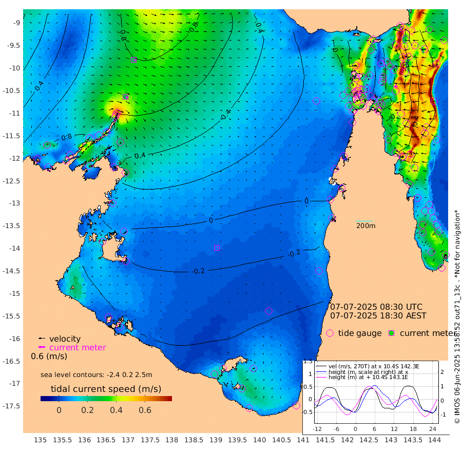 27cm/s 115T +3cm/s rms + 7cm/s -42T. ARA-GOC87 57m 6cm/s 121T +3cm/s rms + 2cm/s -2T. ARA-GOC87 60m 24cm/s 110T +2cm/s rms + 3cm/s 61T. ARA-GOC87 47m 6cm Daru 13cm Bobo Island 50cm Meer Island Barge 48cm Bramble Cay 33cm Unnamed Cay 19cm Pearce Cay 33cm Stephens Island 42cm Merrie England Shoals 13cm Mutacomal Reef 37cm Darnley Island Barge 49cm East Cay 20cm Yorke Island Barge 14cm Rennel Island 6cm Aureed Island -10cm Dungeness Reef -38cm Zagai Island -45cm Yam Island -66cm Dauan Island -58cm Saibai Island -59cm Phipi Reef -50cm Warrior Reef - West -43cm Mabuiag Island Barge 11cm Half Way Island 0cm Coconut Island -3cm Dugong Islet -26cm Poll Island -20cm Kirkcaldie Reef -51cm Suarji Island -21cm Sue Islet 7cm Hawkesbury Island -29cm Alert Patches -34cm Twin Island -6cm Badu Island -47cm St Pauls (Moa Island) -13cm Kubin (Moa Island) -32cm Ince Point -27cm Thursday Island -29cm Nardana Patches -16cm Turtle Head 3cm Round Island 7cm Goods Island 16cm Booby Island 5cm White Rocks Area 25cm Carpentaria -35cm Papou Point 40cm Bampfield Head 15cm Crab Island 4cm Red Wallis Island -7cm Packe Island -3cm Harrington Reef 2cm Herald Camp -23cm Sharp Point -16cm Red Island Point -15cm Possession Island -24cm Alpha Rock -19cm Frederick Point 13cm Wyborn Reef Light 5cm Tetley Island 34cm Triangle Reef 24cm Turtle Head Island 38cm Maclennan Cay 53cm Raine Island 28cm Mcsweeny Reef 37cm Collette Reef 48cm Shadwell Reef 45cm Hannibal Island 51cm Round Point 23cm Vrilya Point 49cm Cape Grenville 46cm Hicks Island 44cm Sir Charles Hardy Island 13cm Harvey Island 60cm Kay Reef 53cm Rocky Island 55cm Chapman Island 54cm Ham Reef 54cm Jubilee Reef 45cm Night Island 54cm Unnamed Reef No. 3 57cm Morris Island 55cm 1st 3 Mile Opening 53cm Creech Reef 50cm Fife Island 71cm Eden Reef 61cm Stanley Island 60cm Normanby River 74cm Yabooma Island 97cm Hutchison River 83cm Elcho Island 68cm North West Crocodile Island 68cm Cape Wessel 86cm Stevens Island 83cm Guluwuru Island 83cm Hopeful Bay 75cm Auster Point 73cm Two Island Bay 90cm Cadell Strait 164cm Mallison Island 69cm Melville Bay (Gove Harbour) 76cm Truant Island 47cm Cape Arnhem 20cm Cape Grey 9cm Hawk Island -25cm Milner Bay (Groote Eylandt) -36cm Cape Beatrice -73cm West Island -69cm Centre Island -80cm Mornington Island -87cm West Wellesley Islands -102cm Bountiful Island -113cm Albert River Mouth -103cm Sweers Island -111cm Karumba -69cm Nassau River Offshore -42cm Christmas Creek 1cm Archer River 7cm Boyd Point 5cm Weipa (Humbug Point) 25cm Pennefather River 11cm Cullen Point