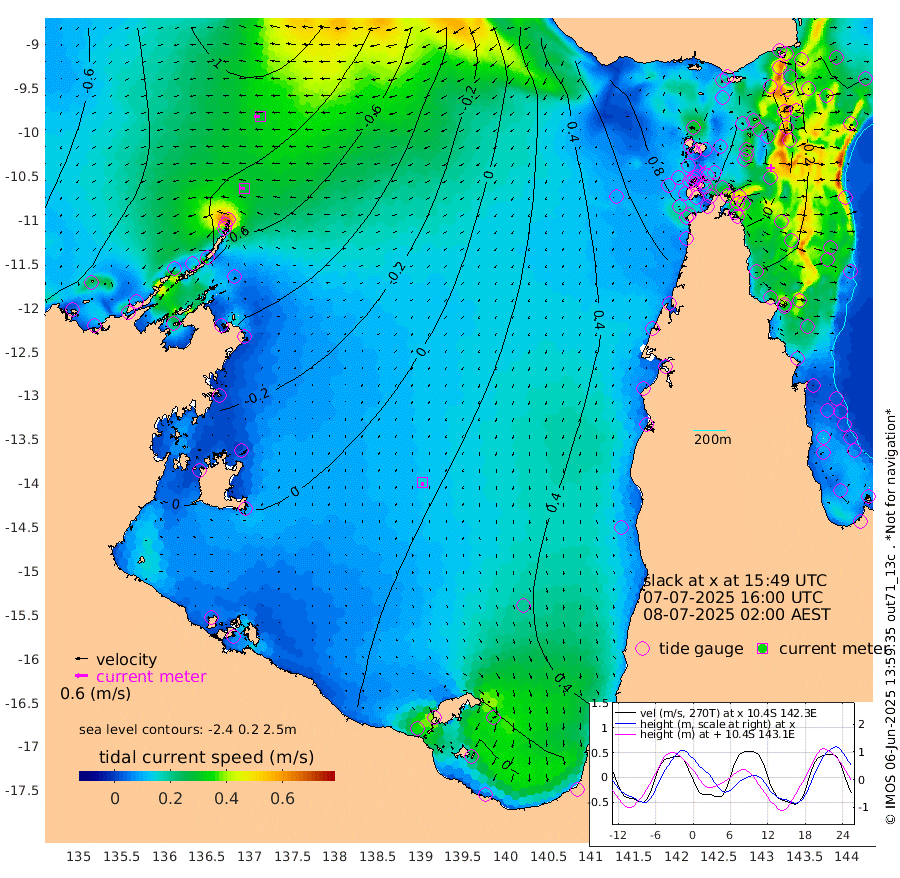 28cm/s -88T +3cm/s rms + 7cm/s -42T. ARA-GOC87 57m 15cm/s -172T +3cm/s rms + 2cm/s -2T. ARA-GOC87 60m 31cm/s -94T +2cm/s rms + 3cm/s 61T. ARA-GOC87 47m 9cm Daru -2cm Bobo Island -17cm Meer Island Barge -27cm Bramble Cay -15cm Unnamed Cay -4cm Pearce Cay -12cm Stephens Island -30cm Merrie England Shoals -7cm Mutacomal Reef -12cm Darnley Island Barge -17cm East Cay 0cm Yorke Island Barge 5cm Rennel Island 8cm Aureed Island 32cm Dungeness Reef 58cm Zagai Island 64cm Yam Island 119cm Dauan Island 103cm Saibai Island 111cm Phipi Reef 75cm Warrior Reef - West 95cm Mabuiag Island Barge 0cm Half Way Island 17cm Coconut Island 17cm Dugong Islet 41cm Poll Island 41cm Kirkcaldie Reef 81cm Suarji Island 43cm Sue Islet 105cm Hawkesbury Island 73cm Alert Patches 66cm Twin Island 107cm Badu Island 81cm St Pauls (Moa Island) 95cm Kubin (Moa Island) 83cm Ince Point 89cm Thursday Island 89cm Nardana Patches 100cm Turtle Head 95cm Round Island 102cm Goods Island 105cm Booby Island 98cm White Rocks Area 75cm Carpentaria 67cm Papou Point 106cm Bampfield Head 86cm Crab Island 98cm Red Wallis Island 91cm Packe Island 15cm Harrington Reef 119cm Herald Camp 23cm Sharp Point 89cm Red Island Point 79cm Possession Island 43cm Alpha Rock 43cm Frederick Point -1cm Wyborn Reef Light 8cm Tetley Island -5cm Triangle Reef 5cm Turtle Head Island -5cm Maclennan Cay -12cm Raine Island -8cm Mcsweeny Reef -14cm Collette Reef -14cm Shadwell Reef -25cm Hannibal Island -28cm Round Point 70cm Vrilya Point -24cm Cape Grenville -13cm Hicks Island -5cm Sir Charles Hardy Island -4cm Harvey Island -30cm Kay Reef -15cm Rocky Island -16cm Chapman Island -14cm Ham Reef -15cm Jubilee Reef -15cm Night Island -17cm Unnamed Reef No. 3 -20cm Morris Island -8cm 1st 3 Mile Opening -13cm Creech Reef -17cm Fife Island -30cm Eden Reef -24cm Stanley Island -30cm Normanby River -80cm Yabooma Island -98cm Hutchison River -94cm Elcho Island -85cm North West Crocodile Island -82cm Cape Wessel -109cm Stevens Island -83cm Guluwuru Island -96cm Hopeful Bay -81cm Auster Point -85cm Two Island Bay -101cm Cadell Strait -186cm Mallison Island -72cm Melville Bay (Gove Harbour) -76cm Truant Island -49cm Cape Arnhem -30cm Cape Grey -31cm Hawk Island -26cm Milner Bay (Groote Eylandt) -15cm Cape Beatrice 3cm West Island 1cm Centre Island 22cm Mornington Island 26cm West Wellesley Islands 42cm Bountiful Island 11cm Albert River Mouth -2cm Sweers Island 26cm Karumba 44cm Nassau River Offshore 60cm Christmas Creek 56cm Archer River 65cm Boyd Point 74cm Weipa (Humbug Point) 43cm Pennefather River 76cm Cullen Point