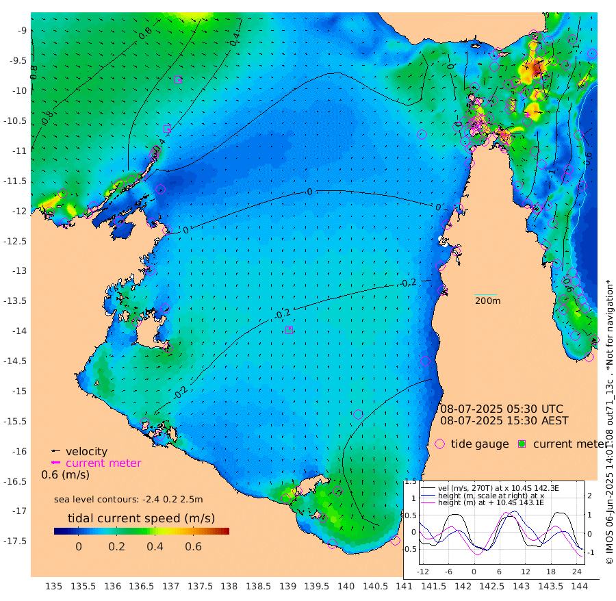 15cm/s 115T +3cm/s rms + 7cm/s -42T. ARA-GOC87 57m 18cm/s 13T +3cm/s rms + 2cm/s -2T. ARA-GOC87 60m 19cm/s 114T +2cm/s rms + 3cm/s 61T. ARA-GOC87 47m -119cm Daru -118cm Bobo Island -70cm Meer Island Barge -99cm Bramble Cay -118cm Unnamed Cay -113cm Pearce Cay -106cm Stephens Island -121cm Merrie England Shoals -131cm Mutacomal Reef -99cm Darnley Island Barge -84cm East Cay -107cm Yorke Island Barge -114cm Rennel Island -111cm Aureed Island -111cm Dungeness Reef -95cm Zagai Island -100cm Yam Island -69cm Dauan Island -76cm Saibai Island -93cm Phipi Reef -106cm Warrior Reef - West -53cm Mabuiag Island Barge -106cm Half Way Island -115cm Coconut Island -113cm Dugong Islet -104cm Poll Island -109cm Kirkcaldie Reef -102cm Suarji Island -103cm Sue Islet -27cm Hawkesbury Island -90cm Alert Patches -91cm Twin Island -29cm Badu Island -83cm St Pauls (Moa Island) -35cm Kubin (Moa Island) -67cm Ince Point -53cm Thursday Island -57cm Nardana Patches -46cm Turtle Head -32cm Round Island -20cm Goods Island 5cm Booby Island -9cm White Rocks Area 23cm Carpentaria -73cm Papou Point -3cm Bampfield Head 10cm Crab Island -4cm Red Wallis Island -36cm Packe Island -121cm Harrington Reef -24cm Herald Camp -27cm Sharp Point -50cm Red Island Point -62cm Possession Island -91cm Alpha Rock -104cm Frederick Point -119cm Wyborn Reef Light -116cm Tetley Island -72cm Triangle Reef -103cm Turtle Head Island -73cm Maclennan Cay -54cm Raine Island -105cm Mcsweeny Reef -103cm Collette Reef -75cm Shadwell Reef -112cm Hannibal Island -102cm Round Point 22cm Vrilya Point -94cm Cape Grenville -83cm Hicks Island -92cm Sir Charles Hardy Island -27cm Harvey Island -88cm Kay Reef -70cm Rocky Island -69cm Chapman Island -62cm Ham Reef -63cm Jubilee Reef -59cm Night Island -65cm Unnamed Reef No. 3 -69cm Morris Island -54cm 1st 3 Mile Opening -64cm Creech Reef -63cm Fife Island -72cm Eden Reef -70cm Stanley Island -79cm Normanby River 72cm Yabooma Island 69cm Hutchison River 74cm Elcho Island 68cm North West Crocodile Island 42cm Cape Wessel 60cm Stevens Island 16cm Guluwuru Island 52cm Hopeful Bay 53cm Auster Point 64cm Two Island Bay 61cm Cadell Strait -46cm Mallison Island 22cm Melville Bay (Gove Harbour) 28cm Truant Island 15cm Cape Arnhem 5cm Cape Grey -2cm Hawk Island 10cm Milner Bay (Groote Eylandt) -2cm Cape Beatrice -9cm West Island -9cm Centre Island -57cm Mornington Island -59cm West Wellesley Islands -77cm Bountiful Island -50cm Albert River Mouth -38cm Sweers Island -60cm Karumba -69cm Nassau River Offshore -69cm Christmas Creek -37cm Archer River -20cm Boyd Point -23cm Weipa (Humbug Point) 7cm Pennefather River 7cm Cullen Point