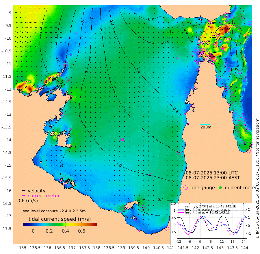 6cm/s -153T +3cm/s rms + 7cm/s -42T. ARA-GOC87 57m 25cm/s 164T +3cm/s rms + 2cm/s -2T. ARA-GOC87 60m 11cm/s -114T +2cm/s rms + 3cm/s 61T. ARA-GOC87 47m 129cm Daru 128cm Bobo Island 68cm Meer Island Barge 93cm Bramble Cay 120cm Unnamed Cay 127cm Pearce Cay 110cm Stephens Island 119cm Merrie England Shoals 138cm Mutacomal Reef 102cm Darnley Island Barge 78cm East Cay 116cm Yorke Island Barge 127cm Rennel Island 128cm Aureed Island 132cm Dungeness Reef 127cm Zagai Island 127cm Yam Island 111cm Dauan Island 110cm Saibai Island 118cm Phipi Reef 133cm Warrior Reef - West 108cm Mabuiag Island Barge 119cm Half Way Island 140cm Coconut Island 131cm Dugong Islet 136cm Poll Island 132cm Kirkcaldie Reef 151cm Suarji Island 131cm Sue Islet 112cm Hawkesbury Island 147cm Alert Patches 145cm Twin Island 106cm Badu Island 140cm St Pauls (Moa Island) 112cm Kubin (Moa Island) 129cm Ince Point 123cm Thursday Island 124cm Nardana Patches 118cm Turtle Head 112cm Round Island 103cm Goods Island 93cm Booby Island 100cm White Rocks Area 81cm Carpentaria 121cm Papou Point 123cm Bampfield Head 69cm Crab Island 97cm Red Wallis Island 115cm Packe Island 147cm Harrington Reef 109cm Herald Camp 37cm Sharp Point 102cm Red Island Point 128cm Possession Island 134cm Alpha Rock 145cm Frederick Point 143cm Wyborn Reef Light 145cm Tetley Island 81cm Triangle Reef 140cm Turtle Head Island 75cm Maclennan Cay 51cm Raine Island 115cm Mcsweeny Reef 107cm Collette Reef 74cm Shadwell Reef 111cm Hannibal Island 101cm Round Point 60cm Vrilya Point 91cm Cape Grenville 80cm Hicks Island 87cm Sir Charles Hardy Island 26cm Harvey Island 78cm Kay Reef 63cm Rocky Island 65cm Chapman Island 58cm Ham Reef 59cm Jubilee Reef 59cm Night Island 62cm Unnamed Reef No. 3 63cm Morris Island 56cm 1st 3 Mile Opening 62cm Creech Reef 61cm Fife Island 62cm Eden Reef 63cm Stanley Island 66cm Normanby River -83cm Yabooma Island -84cm Hutchison River -89cm Elcho Island -91cm North West Crocodile Island -31cm Cape Wessel -68cm Stevens Island -17cm Guluwuru Island -62cm Hopeful Bay -43cm Auster Point -58cm Two Island Bay -72cm Cadell Strait 32cm Mallison Island -21cm Melville Bay (Gove Harbour) -15cm Truant Island -10cm Cape Arnhem -22cm Cape Grey -19cm Hawk Island -50cm Milner Bay (Groote Eylandt) -46cm Cape Beatrice -53cm West Island -48cm Centre Island -45cm Mornington Island -40cm West Wellesley Islands -66cm Bountiful Island -122cm Albert River Mouth -127cm Sweers Island -106cm Karumba -15cm Nassau River Offshore 24cm Christmas Creek 42cm Archer River 56cm Boyd Point 51cm Weipa (Humbug Point) 44cm Pennefather River 61cm Cullen Point