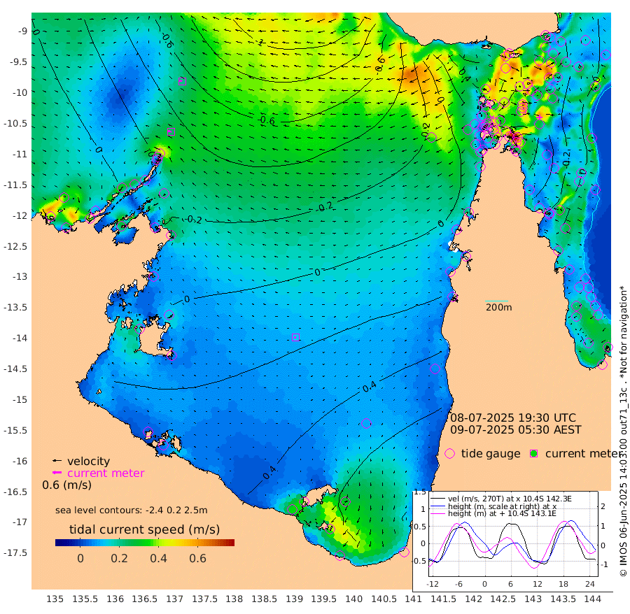 24cm/s -75T +3cm/s rms + 7cm/s -42T. ARA-GOC87 57m 13cm/s -113T +3cm/s rms + 2cm/s -2T. ARA-GOC87 60m 21cm/s -77T +2cm/s rms + 3cm/s 61T. ARA-GOC87 47m -42cm Daru -48cm Bobo Island -6cm Meer Island Barge -22cm Bramble Cay -37cm Unnamed Cay -47cm Pearce Cay -32cm Stephens Island -41cm Merrie England Shoals -52cm Mutacomal Reef -26cm Darnley Island Barge -7cm East Cay -37cm Yorke Island Barge -41cm Rennel Island -47cm Aureed Island -39cm Dungeness Reef -43cm Zagai Island -34cm Yam Island -7cm Dauan Island -12cm Saibai Island 6cm Phipi Reef -31cm Warrior Reef - West -25cm Mabuiag Island Barge -43cm Half Way Island -56cm Coconut Island -46cm Dugong Islet -53cm Poll Island -38cm Kirkcaldie Reef -51cm Suarji Island -45cm Sue Islet -7cm Hawkesbury Island -50cm Alert Patches -55cm Twin Island -9cm Badu Island -52cm St Pauls (Moa Island) -20cm Kubin (Moa Island) -40cm Ince Point -35cm Thursday Island -36cm Nardana Patches -18cm Turtle Head -12cm Round Island -6cm Goods Island -6cm Booby Island -16cm White Rocks Area -31cm Carpentaria -43cm Papou Point -19cm Bampfield Head 1cm Crab Island -16cm Red Wallis Island -20cm Packe Island -61cm Harrington Reef 11cm Herald Camp -13cm Sharp Point -6cm Red Island Point -34cm Possession Island -59cm Alpha Rock -57cm Frederick Point -63cm Wyborn Reef Light -65cm Tetley Island -19cm Triangle Reef -61cm Turtle Head Island -7cm Maclennan Cay 6cm Raine Island -39cm Mcsweeny Reef -30cm Collette Reef -9cm Shadwell Reef -33cm Hannibal Island -28cm Round Point -9cm Vrilya Point -19cm Cape Grenville -8cm Hicks Island -3cm Sir Charles Hardy Island -4cm Harvey Island -9cm Kay Reef 3cm Rocky Island -1cm Chapman Island 3cm Ham Reef 2cm Jubilee Reef -4cm Night Island -1cm Unnamed Reef No. 3 1cm Morris Island 5cm 1st 3 Mile Opening 2cm Creech Reef -5cm Fife Island 5cm Eden Reef 1cm Stanley Island -1cm Normanby River 3cm Yabooma Island -1cm Hutchison River -1cm Elcho Island 7cm North West Crocodile Island -44cm Cape Wessel -28cm Stevens Island -33cm Guluwuru Island -15cm Hopeful Bay -32cm Auster Point -26cm Two Island Bay -15cm Cadell Strait -89cm Mallison Island -29cm Melville Bay (Gove Harbour) -41cm Truant Island -26cm Cape Arnhem -2cm Cape Grey -1cm Hawk Island 9cm Milner Bay (Groote Eylandt) 21cm Cape Beatrice 30cm West Island 28cm Centre Island 81cm Mornington Island 74cm West Wellesley Islands 125cm Bountiful Island 136cm Albert River Mouth 126cm Sweers Island 144cm Karumba 85cm Nassau River Offshore 69cm Christmas Creek 39cm Archer River 18cm Boyd Point 35cm Weipa (Humbug Point) -1cm Pennefather River 3cm Cullen Point