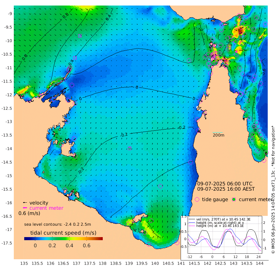 14cm/s 118T +3cm/s rms + 7cm/s -42T. ARA-GOC87 57m 21cm/s 16T +3cm/s rms + 2cm/s -2T. ARA-GOC87 60m 18cm/s 120T +2cm/s rms + 3cm/s 61T. ARA-GOC87 47m -132cm Daru -128cm Bobo Island -73cm Meer Island Barge -106cm Bramble Cay -129cm Unnamed Cay -123cm Pearce Cay -114cm Stephens Island -132cm Merrie England Shoals -145cm Mutacomal Reef -106cm Darnley Island Barge -87cm East Cay -116cm Yorke Island Barge -124cm Rennel Island -120cm Aureed Island -124cm Dungeness Reef -107cm Zagai Island -112cm Yam Island -85cm Dauan Island -87cm Saibai Island -113cm Phipi Reef -120cm Warrior Reef - West -63cm Mabuiag Island Barge -116cm Half Way Island -125cm Coconut Island -124cm Dugong Islet -115cm Poll Island -121cm Kirkcaldie Reef -113cm Suarji Island -114cm Sue Islet -32cm Hawkesbury Island -101cm Alert Patches -101cm Twin Island -34cm Badu Island -95cm St Pauls (Moa Island) -42cm Kubin (Moa Island) -75cm Ince Point -60cm Thursday Island -64cm Nardana Patches -52cm Turtle Head -39cm Round Island -21cm Goods Island 9cm Booby Island -5cm White Rocks Area 38cm Carpentaria -81cm Papou Point -1cm Bampfield Head 13cm Crab Island 0cm Red Wallis Island -40cm Packe Island -131cm Harrington Reef -28cm Herald Camp -31cm Sharp Point -53cm Red Island Point -71cm Possession Island -101cm Alpha Rock -114cm Frederick Point -132cm Wyborn Reef Light -129cm Tetley Island -76cm Triangle Reef -117cm Turtle Head Island -75cm Maclennan Cay -54cm Raine Island -114cm Mcsweeny Reef -112cm Collette Reef -79cm Shadwell Reef -121cm Hannibal Island -109cm Round Point 27cm Vrilya Point -99cm Cape Grenville -87cm Hicks Island -94cm Sir Charles Hardy Island -29cm Harvey Island -90cm Kay Reef -71cm Rocky Island -69cm Chapman Island -61cm Ham Reef -64cm Jubilee Reef -61cm Night Island -64cm Unnamed Reef No. 3 -70cm Morris Island -55cm 1st 3 Mile Opening -64cm Creech Reef -65cm Fife Island -73cm Eden Reef -72cm Stanley Island -80cm Normanby River 63cm Yabooma Island 60cm Hutchison River 68cm Elcho Island 62cm North West Crocodile Island 42cm Cape Wessel 51cm Stevens Island 13cm Guluwuru Island 44cm Hopeful Bay 48cm Auster Point 58cm Two Island Bay 49cm Cadell Strait -61cm Mallison Island 16cm Melville Bay (Gove Harbour) 23cm Truant Island 12cm Cape Arnhem 2cm Cape Grey -8cm Hawk Island 9cm Milner Bay (Groote Eylandt) -4cm Cape Beatrice -7cm West Island -8cm Centre Island -66cm Mornington Island -66cm West Wellesley Islands -89cm Bountiful Island -64cm Albert River Mouth -56cm Sweers Island -77cm Karumba -80cm Nassau River Offshore -76cm Christmas Creek -40cm Archer River -19cm Boyd Point -24cm Weipa (Humbug Point) 7cm Pennefather River 10cm Cullen Point