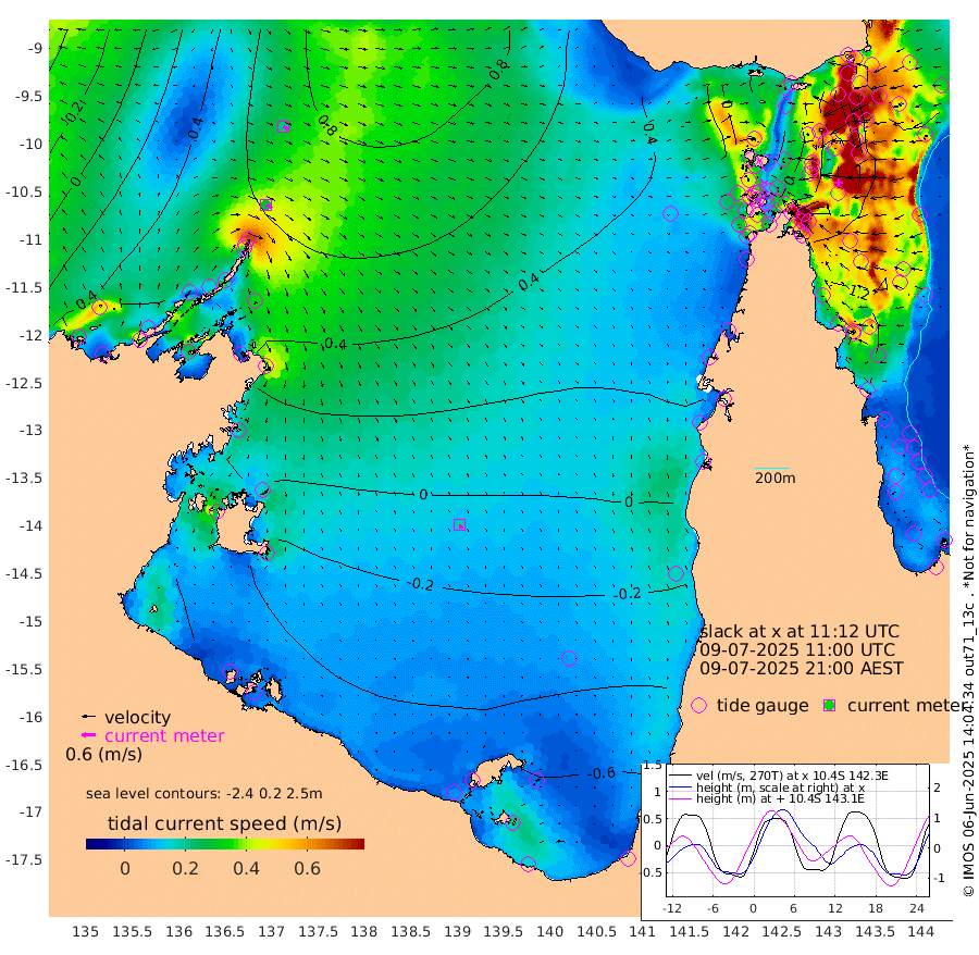 28cm/s 121T +3cm/s rms + 7cm/s -42T. ARA-GOC87 57m 19cm/s 158T +3cm/s rms + 2cm/s -2T. ARA-GOC87 60m 21cm/s 119T +2cm/s rms + 3cm/s 61T. ARA-GOC87 47m 110cm Daru 113cm Bobo Island 105cm Meer Island Barge 127cm Bramble Cay 134cm Unnamed Cay 121cm Pearce Cay 124cm Stephens Island 142cm Merrie England Shoals 127cm Mutacomal Reef 119cm Darnley Island Barge 111cm East Cay 112cm Yorke Island Barge 118cm Rennel Island 104cm Aureed Island 96cm Dungeness Reef 55cm Zagai Island 57cm Yam Island 10cm Dauan Island 10cm Saibai Island 21cm Phipi Reef 47cm Warrior Reef - West 26cm Mabuiag Island Barge 114cm Half Way Island 105cm Coconut Island 109cm Dugong Islet 81cm Poll Island 86cm Kirkcaldie Reef 57cm Suarji Island 76cm Sue Islet 78cm Hawkesbury Island 74cm Alert Patches 71cm Twin Island 59cm Badu Island 55cm St Pauls (Moa Island) 66cm Kubin (Moa Island) 59cm Ince Point 58cm Thursday Island 57cm Nardana Patches 64cm Turtle Head 73cm Round Island 74cm Goods Island 70cm Booby Island 71cm White Rocks Area 60cm Carpentaria 54cm Papou Point 102cm Bampfield Head 51cm Crab Island 65cm Red Wallis Island 73cm Packe Island 114cm Harrington Reef 70cm Herald Camp 3cm Sharp Point 48cm Red Island Point 67cm Possession Island 75cm Alpha Rock 89cm Frederick Point 125cm Wyborn Reef Light 117cm Tetley Island 95cm Triangle Reef 134cm Turtle Head Island 99cm Maclennan Cay 92cm Raine Island 120cm Mcsweeny Reef 120cm Collette Reef 105cm Shadwell Reef 134cm Hannibal Island 133cm Round Point 49cm Vrilya Point 123cm Cape Grenville 111cm Hicks Island 115cm Sir Charles Hardy Island 35cm Harvey Island 122cm Kay Reef 101cm Rocky Island 101cm Chapman Island 95cm Ham Reef 100cm Jubilee Reef 92cm Night Island 98cm Unnamed Reef No. 3 107cm Morris Island 100cm 1st 3 Mile Opening 101cm Creech Reef 95cm Fife Island 122cm Eden Reef 113cm Stanley Island 118cm Normanby River 62cm Yabooma Island 87cm Hutchison River 63cm Elcho Island 48cm North West Crocodile Island 65cm Cape Wessel 75cm Stevens Island 87cm Guluwuru Island 67cm Hopeful Bay 67cm Auster Point 63cm Two Island Bay 77cm Cadell Strait 174cm Mallison Island 68cm Melville Bay (Gove Harbour) 78cm Truant Island 45cm Cape Arnhem 9cm Cape Grey -3cm Hawk Island -52cm Milner Bay (Groote Eylandt) -58cm Cape Beatrice -102cm West Island -99cm Centre Island -102cm Mornington Island -101cm West Wellesley Islands -130cm Bountiful Island -163cm Albert River Mouth -173cm Sweers Island -160cm Karumba -68cm Nassau River Offshore -21cm Christmas Creek 21cm Archer River 34cm Boyd Point 33cm Weipa (Humbug Point) 40cm Pennefather River 40cm Cullen Point