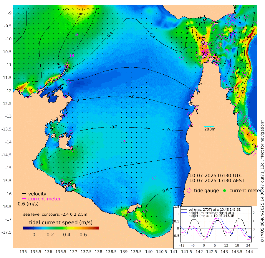 19cm/s 127T +3cm/s rms + 7cm/s -42T. ARA-GOC87 57m 17cm/s 21T +3cm/s rms + 2cm/s -2T. ARA-GOC87 60m 24cm/s 128T +2cm/s rms + 3cm/s 61T. ARA-GOC87 47m -120cm Daru -111cm Bobo Island -36cm Meer Island Barge -69cm Bramble Cay -101cm Unnamed Cay -100cm Pearce Cay -83cm Stephens Island -100cm Merrie England Shoals -127cm Mutacomal Reef -75cm Darnley Island Barge -47cm East Cay -96cm Yorke Island Barge -104cm Rennel Island -104cm Aureed Island -115cm Dungeness Reef -119cm Zagai Island -121cm Yam Island -112cm Dauan Island -112cm Saibai Island -134cm Phipi Reef -136cm Warrior Reef - West -76cm Mabuiag Island Barge -95cm Half Way Island -115cm Coconut Island -108cm Dugong Islet -117cm Poll Island -115cm Kirkcaldie Reef -124cm Suarji Island -116cm Sue Islet -7cm Hawkesbury Island -104cm Alert Patches -106cm Twin Island -21cm Badu Island -108cm St Pauls (Moa Island) -29cm Kubin (Moa Island) -78cm Ince Point -58cm Thursday Island -64cm Nardana Patches -40cm Turtle Head -22cm Round Island 7cm Goods Island 42cm Booby Island 26cm White Rocks Area 68cm Carpentaria -86cm Papou Point 38cm Bampfield Head 38cm Crab Island 28cm Red Wallis Island -21cm Packe Island -118cm Harrington Reef -2cm Herald Camp -42cm Sharp Point -41cm Red Island Point -67cm Possession Island -105cm Alpha Rock -113cm Frederick Point -119cm Wyborn Reef Light -121cm Tetley Island -49cm Triangle Reef -97cm Turtle Head Island -40cm Maclennan Cay -15cm Raine Island -90cm Mcsweeny Reef -84cm Collette Reef -46cm Shadwell Reef -88cm Hannibal Island -72cm Round Point 52cm Vrilya Point -61cm Cape Grenville -50cm Hicks Island -52cm Sir Charles Hardy Island -18cm Harvey Island -45cm Kay Reef -31cm Rocky Island -29cm Chapman Island -21cm Ham Reef -24cm Jubilee Reef -27cm Night Island -23cm Unnamed Reef No. 3 -27cm Morris Island -13cm 1st 3 Mile Opening -22cm Creech Reef -31cm Fife Island -20cm Eden Reef -26cm Stanley Island -32cm Normanby River 97cm Yabooma Island 105cm Hutchison River 104cm Elcho Island 94cm North West Crocodile Island 63cm Cape Wessel 78cm Stevens Island 37cm Guluwuru Island 71cm Hopeful Bay 71cm Auster Point 81cm Two Island Bay 77cm Cadell Strait -46cm Mallison Island 33cm Melville Bay (Gove Harbour) 40cm Truant Island 19cm Cape Arnhem 3cm Cape Grey -15cm Hawk Island -11cm Milner Bay (Groote Eylandt) -23cm Cape Beatrice -40cm West Island -39cm Centre Island -97cm Mornington Island -98cm West Wellesley Islands -120cm Bountiful Island -106cm Albert River Mouth -108cm Sweers Island -119cm Karumba -97cm Nassau River Offshore -77cm Christmas Creek -24cm Archer River -1cm Boyd Point -2cm Weipa (Humbug Point) 24cm Pennefather River 31cm Cullen Point