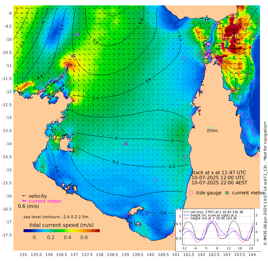 29cm/s 121T +3cm/s rms + 7cm/s -42T. ARA-GOC87 57m 24cm/s 162T +3cm/s rms + 2cm/s -2T. ARA-GOC87 60m 20cm/s 120T +2cm/s rms + 3cm/s 61T. ARA-GOC87 47m 144cm Daru 143cm Bobo Island 114cm Meer Island Barge 143cm Bramble Cay 160cm Unnamed Cay 150cm Pearce Cay 148cm Stephens Island 166cm Merrie England Shoals 161cm Mutacomal Reef 139cm Darnley Island Barge 122cm East Cay 139cm Yorke Island Barge 148cm Rennel Island 134cm Aureed Island 132cm Dungeness Reef 94cm Zagai Island 99cm Yam Island 54cm Dauan Island 48cm Saibai Island 61cm Phipi Reef 92cm Warrior Reef - West 59cm Mabuiag Island Barge 144cm Half Way Island 139cm Coconut Island 144cm Dugong Islet 121cm Poll Island 124cm Kirkcaldie Reef 99cm Suarji Island 113cm Sue Islet 101cm Hawkesbury Island 112cm Alert Patches 111cm Twin Island 84cm Badu Island 97cm St Pauls (Moa Island) 96cm Kubin (Moa Island) 95cm Ince Point 91cm Thursday Island 91cm Nardana Patches 94cm Turtle Head 95cm Round Island 94cm Goods Island 84cm Booby Island 89cm White Rocks Area 64cm Carpentaria 89cm Papou Point 114cm Bampfield Head 61cm Crab Island 82cm Red Wallis Island 99cm Packe Island 150cm Harrington Reef 90cm Herald Camp 16cm Sharp Point 71cm Red Island Point 96cm Possession Island 112cm Alpha Rock 127cm Frederick Point 160cm Wyborn Reef Light 153cm Tetley Island 108cm Triangle Reef 167cm Turtle Head Island 111cm Maclennan Cay 95cm Raine Island 145cm Mcsweeny Reef 140cm Collette Reef 115cm Shadwell Reef 155cm Hannibal Island 150cm Round Point 54cm Vrilya Point 136cm Cape Grenville 124cm Hicks Island 130cm Sir Charles Hardy Island 39cm Harvey Island 130cm Kay Reef 107cm Rocky Island 105cm Chapman Island 98cm Ham Reef 105cm Jubilee Reef 98cm Night Island 102cm Unnamed Reef No. 3 113cm Morris Island 105cm 1st 3 Mile Opening 106cm Creech Reef 103cm Fife Island 125cm Eden Reef 117cm Stanley Island 124cm Normanby River 58cm Yabooma Island 82cm Hutchison River 53cm Elcho Island 40cm North West Crocodile Island 65cm Cape Wessel 71cm Stevens Island 91cm Guluwuru Island 59cm Hopeful Bay 64cm Auster Point 60cm Two Island Bay 78cm Cadell Strait 182cm Mallison Island 70cm Melville Bay (Gove Harbour) 81cm Truant Island 47cm Cape Arnhem 7cm Cape Grey -6cm Hawk Island -60cm Milner Bay (Groote Eylandt) -64cm Cape Beatrice -109cm West Island -109cm Centre Island -105cm Mornington Island -100cm West Wellesley Islands -133cm Bountiful Island -171cm Albert River Mouth -190cm Sweers Island -169cm Karumba -63cm Nassau River Offshore -12cm Christmas Creek 25cm Archer River 41cm Boyd Point 39cm Weipa (Humbug Point) 41cm Pennefather River 47cm Cullen Point