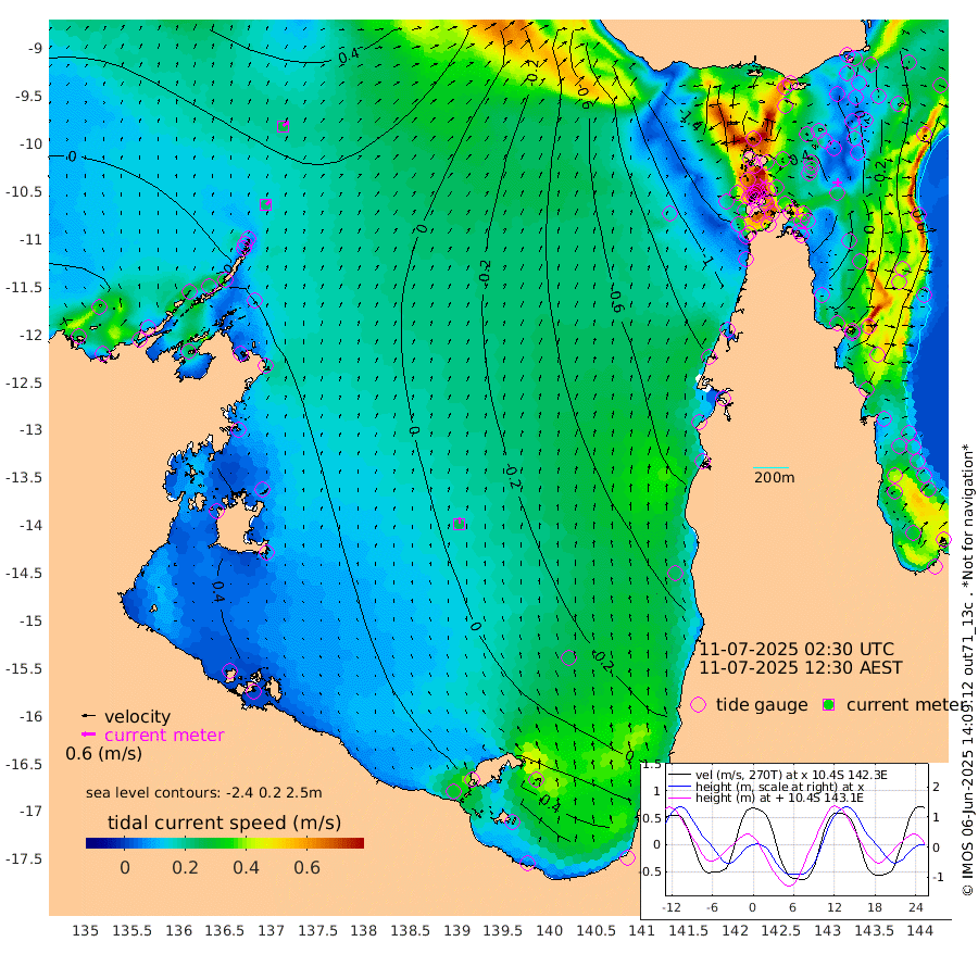 22cm/s 48T +3cm/s rms + 7cm/s -42T. ARA-GOC87 57m 26cm/s 2T +3cm/s rms + 2cm/s -2T. ARA-GOC87 60m 27cm/s 50T +2cm/s rms + 3cm/s 61T. ARA-GOC87 47m 7cm Daru 10cm Bobo Island -46cm Meer Island Barge -27cm Bramble Cay -9cm Unnamed Cay -5cm Pearce Cay -20cm Stephens Island -7cm Merrie England Shoals 12cm Mutacomal Reef -22cm Darnley Island Barge -47cm East Cay -6cm Yorke Island Barge -9cm Rennel Island 2cm Aureed Island -5cm Dungeness Reef 18cm Zagai Island 3cm Yam Island -19cm Dauan Island -1cm Saibai Island -19cm Phipi Reef 9cm Warrior Reef - West -24cm Mabuiag Island Barge -8cm Half Way Island 7cm Coconut Island -5cm Dugong Islet 8cm Poll Island -5cm Kirkcaldie Reef 3cm Suarji Island 12cm Sue Islet -143cm Hawkesbury Island -19cm Alert Patches -10cm Twin Island -110cm Badu Island -5cm St Pauls (Moa Island) -105cm Kubin (Moa Island) -40cm Ince Point -61cm Thursday Island -55cm Nardana Patches -98cm Turtle Head -121cm Round Island -147cm Goods Island -171cm Booby Island -150cm White Rocks Area -141cm Carpentaria -12cm Papou Point -186cm Bampfield Head -144cm Crab Island -154cm Red Wallis Island -126cm Packe Island 7cm Harrington Reef -174cm Herald Camp 13cm Sharp Point -81cm Red Island Point -55cm Possession Island 6cm Alpha Rock 0cm Frederick Point 14cm Wyborn Reef Light 16cm Tetley Island -36cm Triangle Reef -6cm Turtle Head Island -50cm Maclennan Cay -61cm Raine Island -10cm Mcsweeny Reef -15cm Collette Reef -41cm Shadwell Reef -16cm Hannibal Island -29cm Round Point -134cm Vrilya Point -37cm Cape Grenville -46cm Hicks Island -58cm Sir Charles Hardy Island -13cm Harvey Island -47cm Kay Reef -56cm Rocky Island -57cm Chapman Island -59cm Ham Reef -56cm Jubilee Reef -50cm Night Island -58cm Unnamed Reef No. 3 -59cm Morris Island -69cm 1st 3 Mile Opening -62cm Creech Reef -48cm Fife Island -71cm Eden Reef -61cm Stanley Island -56cm Normanby River -15cm Yabooma Island -16cm Hutchison River -8cm Elcho Island -4cm North West Crocodile Island 26cm Cape Wessel 25cm Stevens Island 28cm Guluwuru Island 10cm Hopeful Bay 16cm Auster Point 8cm Two Island Bay 18cm Cadell Strait 106cm Mallison Island 30cm Melville Bay (Gove Harbour) 29cm Truant Island 28cm Cape Arnhem 43cm Cape Grey 46cm Hawk Island 75cm Milner Bay (Groote Eylandt) 66cm Cape Beatrice 86cm West Island 81cm Centre Island 62cm Mornington Island 68cm West Wellesley Islands 70cm Bountiful Island 102cm Albert River Mouth 134cm Sweers Island 84cm Karumba 6cm Nassau River Offshore -49cm Christmas Creek -87cm Archer River -102cm Boyd Point -120cm Weipa (Humbug Point) -92cm Pennefather River -132cm Cullen Point