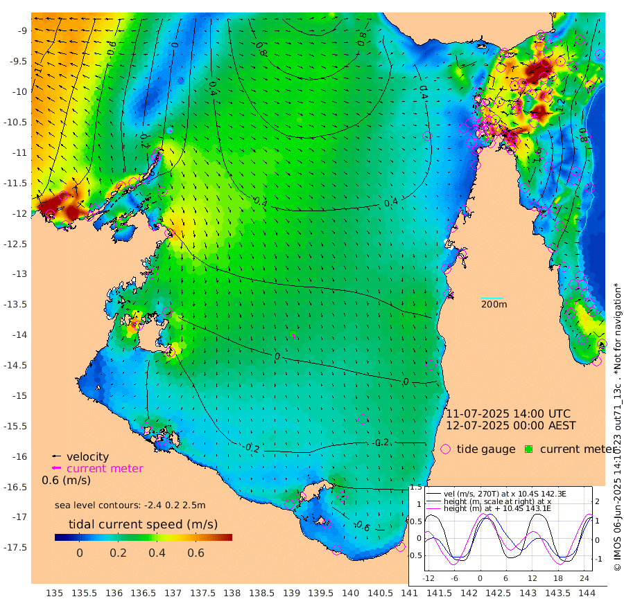 15cm/s 126T +3cm/s rms + 7cm/s -42T. ARA-GOC87 57m 34cm/s 165T +3cm/s rms + 2cm/s -2T. ARA-GOC87 60m 5cm/s 168T +2cm/s rms + 3cm/s 61T. ARA-GOC87 47m 174cm Daru 162cm Bobo Island 91cm Meer Island Barge 125cm Bramble Cay 162cm Unnamed Cay 157cm Pearce Cay 144cm Stephens Island 161cm Merrie England Shoals 183cm Mutacomal Reef 133cm Darnley Island Barge 99cm East Cay 151cm Yorke Island Barge 164cm Rennel Island 154cm Aureed Island 165cm Dungeness Reef 159cm Zagai Island 163cm Yam Island 148cm Dauan Island 138cm Saibai Island 142cm Phipi Reef 170cm Warrior Reef - West 126cm Mabuiag Island Barge 156cm Half Way Island 172cm Coconut Island 169cm Dugong Islet 169cm Poll Island 167cm Kirkcaldie Reef 167cm Suarji Island 163cm Sue Islet 122cm Hawkesbury Island 168cm Alert Patches 169cm Twin Island 119cm Badu Island 167cm St Pauls (Moa Island) 131cm Kubin (Moa Island) 150cm Ince Point 139cm Thursday Island 142cm Nardana Patches 132cm Turtle Head 120cm Round Island 110cm Goods Island 89cm Booby Island 97cm White Rocks Area 66cm Carpentaria 142cm Papou Point 116cm Bampfield Head 67cm Crab Island 97cm Red Wallis Island 129cm Packe Island 180cm Harrington Reef 114cm Herald Camp 44cm Sharp Point 102cm Red Island Point 136cm Possession Island 166cm Alpha Rock 175cm Frederick Point 187cm Wyborn Reef Light 188cm Tetley Island 101cm Triangle Reef 180cm Turtle Head Island 94cm Maclennan Cay 67cm Raine Island 150cm Mcsweeny Reef 138cm Collette Reef 98cm Shadwell Reef 146cm Hannibal Island 132cm Round Point 55cm Vrilya Point 116cm Cape Grenville 104cm Hicks Island 114cm Sir Charles Hardy Island 34cm Harvey Island 100cm Kay Reef 79cm Rocky Island 77cm Chapman Island 71cm Ham Reef 77cm Jubilee Reef 75cm Night Island 75cm Unnamed Reef No. 3 81cm Morris Island 74cm 1st 3 Mile Opening 78cm Creech Reef 83cm Fife Island 80cm Eden Reef 83cm Stanley Island 86cm Normanby River -35cm Yabooma Island -28cm Hutchison River -46cm Elcho Island -52cm North West Crocodile Island 11cm Cape Wessel -11cm Stevens Island 44cm Guluwuru Island -21cm Hopeful Bay -3cm Auster Point -9cm Two Island Bay -2cm Cadell Strait 173cm Mallison Island 28cm Melville Bay (Gove Harbour) 38cm Truant Island 25cm Cape Arnhem -9cm Cape Grey -16cm Hawk Island -64cm Milner Bay (Groote Eylandt) -62cm Cape Beatrice -90cm West Island -93cm Centre Island -75cm Mornington Island -68cm West Wellesley Islands -104cm Bountiful Island -153cm Albert River Mouth -177cm Sweers Island -145cm Karumba -30cm Nassau River Offshore 19cm Christmas Creek 35cm Archer River 54cm Boyd Point 48cm Weipa (Humbug Point) 41cm Pennefather River 57cm Cullen Point
