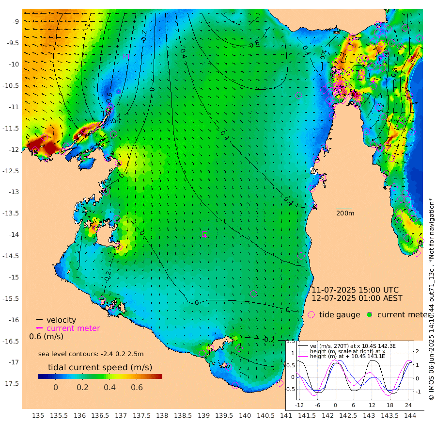 6cm/s -137T +3cm/s rms + 7cm/s -42T. ARA-GOC87 57m 35cm/s 167T +3cm/s rms + 2cm/s -2T. ARA-GOC87 60m 16cm/s -98T +2cm/s rms + 3cm/s 61T. ARA-GOC87 47m 148cm Daru 132cm Bobo Island 54cm Meer Island Barge 83cm Bramble Cay 122cm Unnamed Cay 120cm Pearce Cay 105cm Stephens Island 117cm Merrie England Shoals 152cm Mutacomal Reef 97cm Darnley Island Barge 62cm East Cay 120cm Yorke Island Barge 133cm Rennel Island 129cm Aureed Island 146cm Dungeness Reef 163cm Zagai Island 166cm Yam Island 177cm Dauan Island 168cm Saibai Island 165cm Phipi Reef 180cm Warrior Reef - West 147cm Mabuiag Island Barge 124cm Half Way Island 152cm Coconut Island 143cm Dugong Islet 160cm Poll Island 154cm Kirkcaldie Reef 174cm Suarji Island 158cm Sue Islet 125cm Hawkesbury Island 171cm Alert Patches 170cm Twin Island 127cm Badu Island 176cm St Pauls (Moa Island) 136cm Kubin (Moa Island) 157cm Ince Point 148cm Thursday Island 151cm Nardana Patches 139cm Turtle Head 127cm Round Island 112cm Goods Island 95cm Booby Island 99cm White Rocks Area 76cm Carpentaria 146cm Papou Point 119cm Bampfield Head 75cm Crab Island 105cm Red Wallis Island 136cm Packe Island 154cm Harrington Reef 127cm Herald Camp 52cm Sharp Point 110cm Red Island Point 140cm Possession Island 164cm Alpha Rock 166cm Frederick Point 158cm Wyborn Reef Light 165cm Tetley Island 75cm Triangle Reef 143cm Turtle Head Island 63cm Maclennan Cay 35cm Raine Island 116cm Mcsweeny Reef 104cm Collette Reef 66cm Shadwell Reef 105cm Hannibal Island 89cm Round Point 63cm Vrilya Point 78cm Cape Grenville 67cm Hicks Island 79cm Sir Charles Hardy Island 23cm Harvey Island 59cm Kay Reef 46cm Rocky Island 45cm Chapman Island 41cm Ham Reef 43cm Jubilee Reef 46cm Night Island 43cm Unnamed Reef No. 3 44cm Morris Island 39cm 1st 3 Mile Opening 44cm Creech Reef 52cm Fife Island 34cm Eden Reef 44cm Stanley Island 42cm Normanby River -113cm Yabooma Island -122cm Hutchison River -124cm Elcho Island -124cm North West Crocodile Island -45cm Cape Wessel -87cm Stevens Island -16cm Guluwuru Island -87cm Hopeful Bay -66cm Auster Point -72cm Two Island Bay -85cm Cadell Strait 112cm Mallison Island -23cm Melville Bay (Gove Harbour) -16cm Truant Island -7cm Cape Arnhem -29cm Cape Grey -26cm Hawk Island -61cm Milner Bay (Groote Eylandt) -54cm Cape Beatrice -61cm West Island -64cm Centre Island -43cm Mornington Island -38cm West Wellesley Islands -71cm Bountiful Island -123cm Albert River Mouth -145cm Sweers Island -108cm Karumba -2cm Nassau River Offshore 42cm Christmas Creek 47cm Archer River 65cm Boyd Point 58cm Weipa (Humbug Point) 46cm Pennefather River 70cm Cullen Point