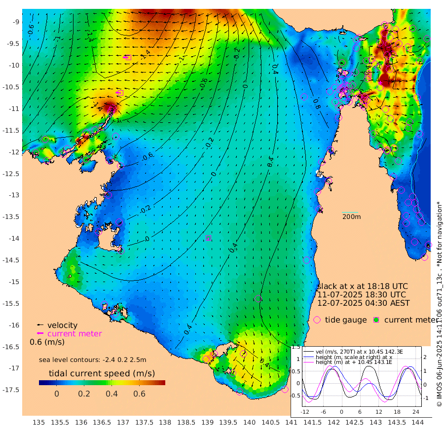 49cm/s -85T +3cm/s rms + 7cm/s -42T. ARA-GOC87 57m 22cm/s -168T +3cm/s rms + 2cm/s -2T. ARA-GOC87 60m 52cm/s -92T +2cm/s rms + 3cm/s 61T. ARA-GOC87 47m -43cm Daru -55cm Bobo Island -45cm Meer Island Barge -64cm Bramble Cay -64cm Unnamed Cay -60cm Pearce Cay -60cm Stephens Island -73cm Merrie England Shoals -56cm Mutacomal Reef -55cm Darnley Island Barge -45cm East Cay -49cm Yorke Island Barge -47cm Rennel Island -42cm Aureed Island -24cm Dungeness Reef 9cm Zagai Island 17cm Yam Island 82cm Dauan Island 72cm Saibai Island 77cm Phipi Reef 31cm Warrior Reef - West 60cm Mabuiag Island Barge -52cm Half Way Island -34cm Coconut Island -41cm Dugong Islet -12cm Poll Island -10cm Kirkcaldie Reef 25cm Suarji Island -8cm Sue Islet 82cm Hawkesbury Island 25cm Alert Patches 17cm Twin Island 76cm Badu Island 30cm St Pauls (Moa Island) 68cm Kubin (Moa Island) 44cm Ince Point 54cm Thursday Island 52cm Nardana Patches 70cm Turtle Head 80cm Round Island 81cm Goods Island 95cm Booby Island 78cm White Rocks Area 81cm Carpentaria 20cm Papou Point 94cm Bampfield Head 87cm Crab Island 93cm Red Wallis Island 83cm Packe Island -45cm Harrington Reef 121cm Herald Camp 15cm Sharp Point 64cm Red Island Point 44cm Possession Island 2cm Alpha Rock -8cm Frederick Point -54cm Wyborn Reef Light -44cm Tetley Island -29cm Triangle Reef -66cm Turtle Head Island -32cm Maclennan Cay -30cm Raine Island -54cm Mcsweeny Reef -52cm Collette Reef -38cm Shadwell Reef -65cm Hannibal Island -63cm Round Point 79cm Vrilya Point -51cm Cape Grenville -44cm Hicks Island -33cm Sir Charles Hardy Island -13cm Harvey Island -51cm Kay Reef -35cm Rocky Island -31cm Chapman Island -28cm Ham Reef -36cm Jubilee Reef -30cm Night Island -29cm Unnamed Reef No. 3 -41cm Morris Island -34cm 1st 3 Mile Opening -33cm Creech Reef -34cm Fife Island -52cm Eden Reef -43cm Stanley Island -55cm Normanby River -169cm Yabooma Island -203cm Hutchison River -174cm Elcho Island -161cm North West Crocodile Island -148cm Cape Wessel -186cm Stevens Island -155cm Guluwuru Island -155cm Hopeful Bay -155cm Auster Point -154cm Two Island Bay -197cm Cadell Strait -193cm Mallison Island -134cm Melville Bay (Gove Harbour) -144cm Truant Island -91cm Cape Arnhem -68cm Cape Grey -44cm Hawk Island -30cm Milner Bay (Groote Eylandt) -11cm Cape Beatrice 25cm West Island 30cm Centre Island 64cm Mornington Island 55cm West Wellesley Islands 68cm Bountiful Island 48cm Albert River Mouth 35cm Sweers Island 75cm Karumba 87cm Nassau River Offshore 98cm Christmas Creek 81cm Archer River 79cm Boyd Point 90cm Weipa (Humbug Point) 58cm Pennefather River 95cm Cullen Point