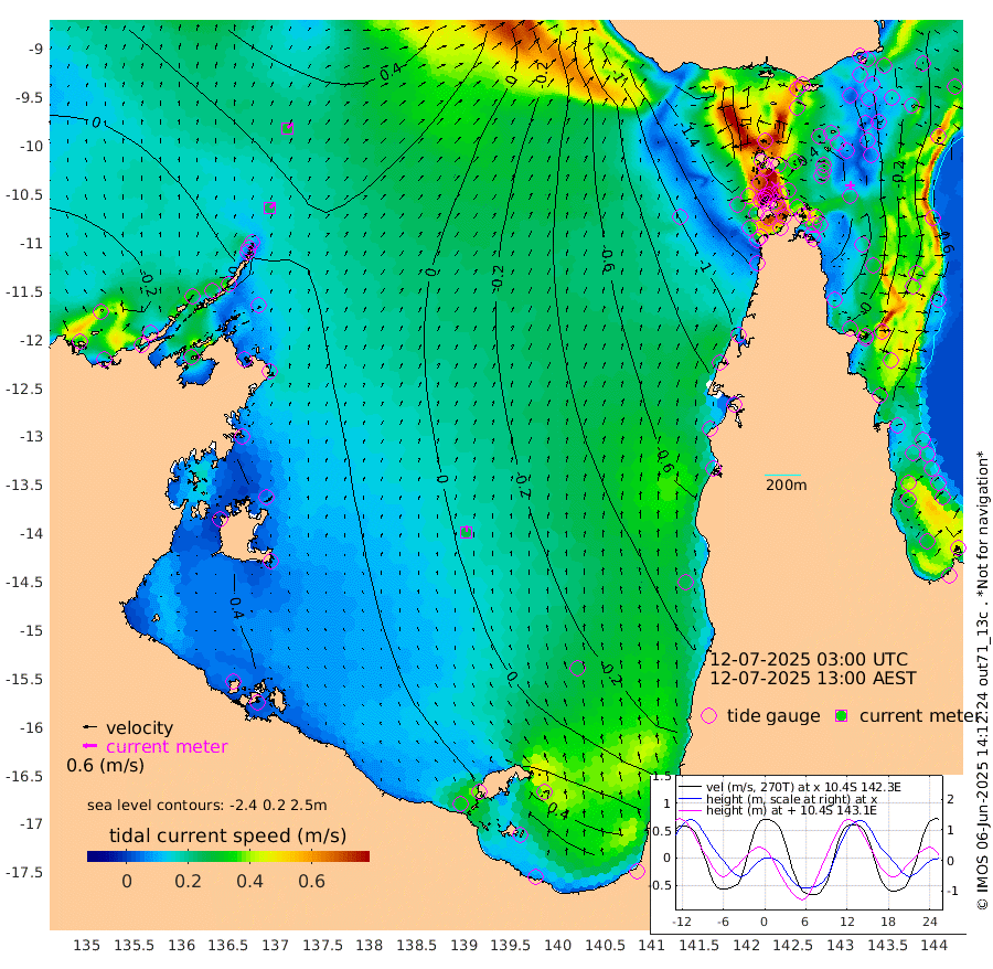 24cm/s 49T +3cm/s rms + 7cm/s -42T. ARA-GOC87 57m 26cm/s 3T +3cm/s rms + 2cm/s -2T. ARA-GOC87 60m 30cm/s 48T +2cm/s rms + 3cm/s 61T. ARA-GOC87 47m 14cm Daru 15cm Bobo Island -41cm Meer Island Barge -22cm Bramble Cay -3cm Unnamed Cay -2cm Pearce Cay -15cm Stephens Island -2cm Merrie England Shoals 16cm Mutacomal Reef -15cm Darnley Island Barge -43cm East Cay 1cm Yorke Island Barge -4cm Rennel Island 6cm Aureed Island 0cm Dungeness Reef 22cm Zagai Island 5cm Yam Island -16cm Dauan Island 3cm Saibai Island -12cm Phipi Reef 14cm Warrior Reef - West -24cm Mabuiag Island Barge -5cm Half Way Island 12cm Coconut Island -2cm Dugong Islet 10cm Poll Island -2cm Kirkcaldie Reef 5cm Suarji Island 17cm Sue Islet -152cm Hawkesbury Island -17cm Alert Patches -10cm Twin Island -117cm Badu Island -4cm St Pauls (Moa Island) -111cm Kubin (Moa Island) -42cm Ince Point -65cm Thursday Island -58cm Nardana Patches -104cm Turtle Head -124cm Round Island -157cm Goods Island -183cm Booby Island -165cm White Rocks Area -153cm Carpentaria -13cm Papou Point -191cm Bampfield Head -154cm Crab Island -170cm Red Wallis Island -137cm Packe Island 10cm Harrington Reef -181cm Herald Camp 14cm Sharp Point -87cm Red Island Point -53cm Possession Island 7cm Alpha Rock 1cm Frederick Point 19cm Wyborn Reef Light 20cm Tetley Island -33cm Triangle Reef 2cm Turtle Head Island -48cm Maclennan Cay -58cm Raine Island -4cm Mcsweeny Reef -9cm Collette Reef -35cm Shadwell Reef -9cm Hannibal Island -25cm Round Point -144cm Vrilya Point -33cm Cape Grenville -41cm Hicks Island -55cm Sir Charles Hardy Island -11cm Harvey Island -43cm Kay Reef -52cm Rocky Island -55cm Chapman Island -57cm Ham Reef -53cm Jubilee Reef -48cm Night Island -56cm Unnamed Reef No. 3 -55cm Morris Island -64cm 1st 3 Mile Opening -59cm Creech Reef -44cm Fife Island -68cm Eden Reef -58cm Stanley Island -54cm Normanby River -19cm Yabooma Island -18cm Hutchison River -11cm Elcho Island -9cm North West Crocodile Island 26cm Cape Wessel 25cm Stevens Island 37cm Guluwuru Island 11cm Hopeful Bay 18cm Auster Point 10cm Two Island Bay 21cm Cadell Strait 129cm Mallison Island 38cm Melville Bay (Gove Harbour) 37cm Truant Island 35cm Cape Arnhem 51cm Cape Grey 54cm Hawk Island 79cm Milner Bay (Groote Eylandt) 68cm Cape Beatrice 86cm West Island 81cm Centre Island 67cm Mornington Island 70cm West Wellesley Islands 76cm Bountiful Island 105cm Albert River Mouth 145cm Sweers Island 90cm Karumba 5cm Nassau River Offshore -51cm Christmas Creek -91cm Archer River -107cm Boyd Point -125cm Weipa (Humbug Point) -96cm Pennefather River -141cm Cullen Point