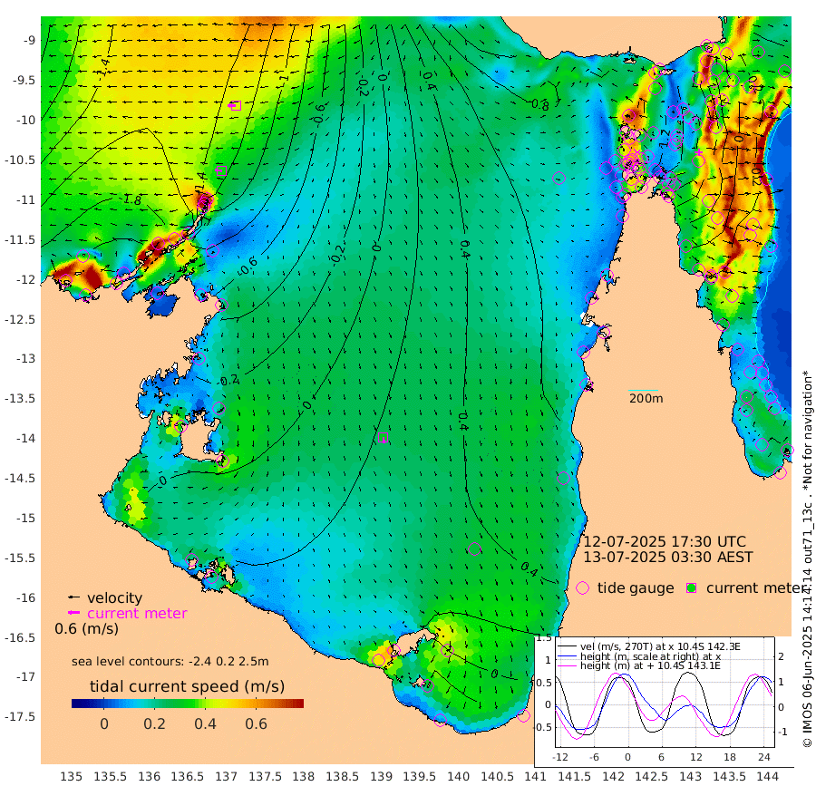 35cm/s -85T +3cm/s rms + 7cm/s -42T. ARA-GOC87 57m 31cm/s 173T +3cm/s rms + 2cm/s -2T. ARA-GOC87 60m 45cm/s -92T +2cm/s rms + 3cm/s 61T. ARA-GOC87 47m 39cm Daru 19cm Bobo Island -21cm Meer Island Barge -18cm Bramble Cay 6cm Unnamed Cay 3cm Pearce Cay -3cm Stephens Island -2cm Merrie England Shoals 33cm Mutacomal Reef -3cm Darnley Island Barge -19cm East Cay 16cm Yorke Island Barge 23cm Rennel Island 25cm Aureed Island 47cm Dungeness Reef 91cm Zagai Island 97cm Yam Island 148cm Dauan Island 141cm Saibai Island 130cm Phipi Reef 113cm Warrior Reef - West 117cm Mabuiag Island Barge 17cm Half Way Island 48cm Coconut Island 35cm Dugong Islet 69cm Poll Island 67cm Kirkcaldie Reef 101cm Suarji Island 74cm Sue Islet 102cm Hawkesbury Island 100cm Alert Patches 96cm Twin Island 105cm Badu Island 110cm St Pauls (Moa Island) 104cm Kubin (Moa Island) 107cm Ince Point 107cm Thursday Island 108cm Nardana Patches 107cm Turtle Head 103cm Round Island 95cm Goods Island 96cm Booby Island 86cm White Rocks Area 93cm Carpentaria 87cm Papou Point 103cm Bampfield Head 88cm Crab Island 105cm Red Wallis Island 114cm Packe Island 39cm Harrington Reef 128cm Herald Camp 41cm Sharp Point 90cm Red Island Point 91cm Possession Island 87cm Alpha Rock 75cm Frederick Point 38cm Wyborn Reef Light 50cm Tetley Island 5cm Triangle Reef 15cm Turtle Head Island -8cm Maclennan Cay -21cm Raine Island 10cm Mcsweeny Reef 5cm Collette Reef -7cm Shadwell Reef -6cm Hannibal Island -16cm Round Point 81cm Vrilya Point -11cm Cape Grenville -15cm Hicks Island -1cm Sir Charles Hardy Island -3cm Harvey Island -22cm Kay Reef -20cm Rocky Island -18cm Chapman Island -16cm Ham Reef -20cm Jubilee Reef -13cm Night Island -15cm Unnamed Reef No. 3 -25cm Morris Island -24cm 1st 3 Mile Opening -20cm Creech Reef -13cm Fife Island -42cm Eden Reef -27cm Stanley Island -39cm Normanby River -212cm Yabooma Island -245cm Hutchison River -217cm Elcho Island -208cm North West Crocodile Island -138cm Cape Wessel -196cm Stevens Island -125cm Guluwuru Island -177cm Hopeful Bay -162cm Auster Point -163cm Two Island Bay -207cm Cadell Strait -43cm Mallison Island -116cm Melville Bay (Gove Harbour) -119cm Truant Island -72cm Cape Arnhem -66cm Cape Grey -48cm Hawk Island -48cm Milner Bay (Groote Eylandt) -32cm Cape Beatrice -3cm West Island -3cm Centre Island 21cm Mornington Island 19cm West Wellesley Islands -1cm Bountiful Island -37cm Albert River Mouth -60cm Sweers Island -14cm Karumba 54cm Nassau River Offshore 81cm Christmas Creek 69cm Archer River 79cm Boyd Point 77cm Weipa (Humbug Point) 59cm Pennefather River 94cm Cullen Point