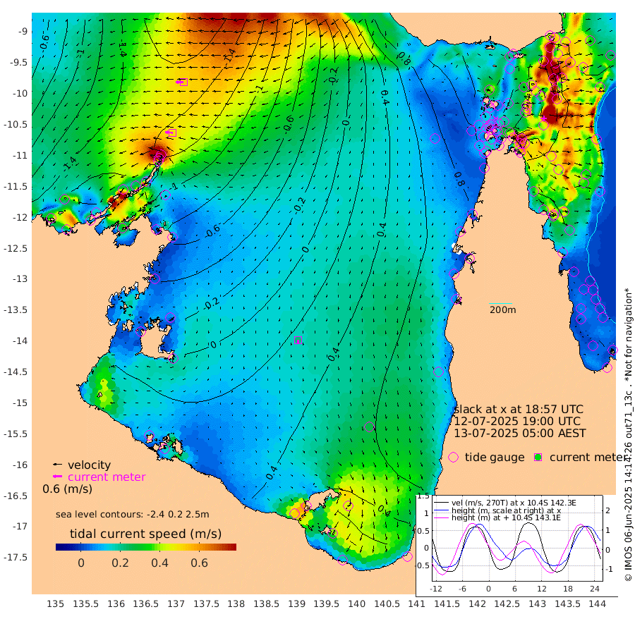 49cm/s -85T +3cm/s rms + 7cm/s -42T. ARA-GOC87 57m 22cm/s -171T +3cm/s rms + 2cm/s -2T. ARA-GOC87 60m 54cm/s -93T +2cm/s rms + 3cm/s 61T. ARA-GOC87 47m -44cm Daru -58cm Bobo Island -49cm Meer Island Barge -65cm Bramble Cay -65cm Unnamed Cay -65cm Pearce Cay -62cm Stephens Island -70cm Merrie England Shoals -53cm Mutacomal Reef -58cm Darnley Island Barge -48cm East Cay -53cm Yorke Island Barge -49cm Rennel Island -46cm Aureed Island -28cm Dungeness Reef 5cm Zagai Island 15cm Yam Island 74cm Dauan Island 66cm Saibai Island 68cm Phipi Reef 26cm Warrior Reef - West 56cm Mabuiag Island Barge -53cm Half Way Island -35cm Coconut Island -43cm Dugong Islet -14cm Poll Island -12cm Kirkcaldie Reef 20cm Suarji Island -11cm Sue Islet 80cm Hawkesbury Island 23cm Alert Patches 16cm Twin Island 73cm Badu Island 27cm St Pauls (Moa Island) 65cm Kubin (Moa Island) 42cm Ince Point 53cm Thursday Island 51cm Nardana Patches 68cm Turtle Head 76cm Round Island 79cm Goods Island 95cm Booby Island 78cm White Rocks Area 88cm Carpentaria 17cm Papou Point 90cm Bampfield Head 90cm Crab Island 97cm Red Wallis Island 86cm Packe Island -47cm Harrington Reef 117cm Herald Camp 16cm Sharp Point 62cm Red Island Point 39cm Possession Island 4cm Alpha Rock -10cm Frederick Point -54cm Wyborn Reef Light -44cm Tetley Island -31cm Triangle Reef -70cm Turtle Head Island -36cm Maclennan Cay -33cm Raine Island -56cm Mcsweeny Reef -53cm Collette Reef -40cm Shadwell Reef -66cm Hannibal Island -64cm Round Point 85cm Vrilya Point -51cm Cape Grenville -48cm Hicks Island -37cm Sir Charles Hardy Island -14cm Harvey Island -51cm Kay Reef -38cm Rocky Island -33cm Chapman Island -30cm Ham Reef -39cm Jubilee Reef -31cm Night Island -30cm Unnamed Reef No. 3 -43cm Morris Island -38cm 1st 3 Mile Opening -36cm Creech Reef -37cm Fife Island -55cm Eden Reef -44cm Stanley Island -58cm Normanby River -186cm Yabooma Island -223cm Hutchison River -189cm Elcho Island -176cm North West Crocodile Island -158cm Cape Wessel -197cm Stevens Island -166cm Guluwuru Island -166cm Hopeful Bay -168cm Auster Point -166cm Two Island Bay -215cm Cadell Strait -179cm Mallison Island -145cm Melville Bay (Gove Harbour) -156cm Truant Island -98cm Cape Arnhem -77cm Cape Grey -49cm Hawk Island -32cm Milner Bay (Groote Eylandt) -12cm Cape Beatrice 28cm West Island 33cm Centre Island 63cm Mornington Island 54cm West Wellesley Islands 59cm Bountiful Island 43cm Albert River Mouth 25cm Sweers Island 69cm Karumba 88cm Nassau River Offshore 99cm Christmas Creek 83cm Archer River 80cm Boyd Point 90cm Weipa (Humbug Point) 64cm Pennefather River 99cm Cullen Point