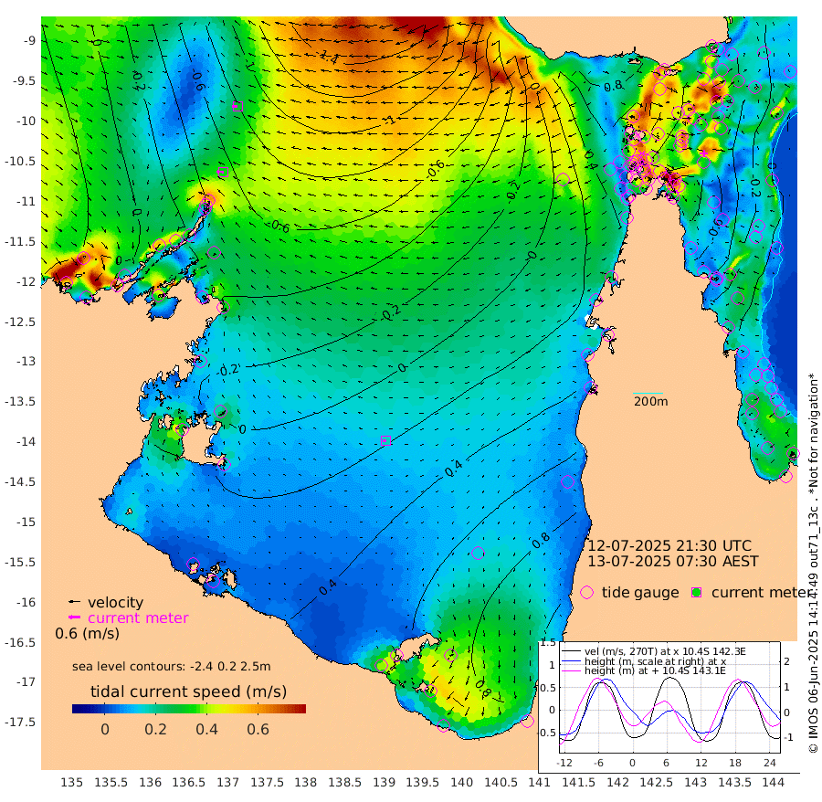 34cm/s -87T +3cm/s rms + 7cm/s -42T. ARA-GOC87 57m 16cm/s -103T +3cm/s rms + 2cm/s -2T. ARA-GOC87 60m 30cm/s -91T +2cm/s rms + 3cm/s 61T. ARA-GOC87 47m -75cm Daru -74cm Bobo Island -17cm Meer Island Barge -37cm Bramble Cay -62cm Unnamed Cay -60cm Pearce Cay -51cm Stephens Island -61cm Merrie England Shoals -78cm Mutacomal Reef -48cm Darnley Island Barge -16cm East Cay -64cm Yorke Island Barge -63cm Rennel Island -64cm Aureed Island -61cm Dungeness Reef -79cm Zagai Island -68cm Yam Island -44cm Dauan Island -59cm Saibai Island -17cm Phipi Reef -67cm Warrior Reef - West -51cm Mabuiag Island Barge -62cm Half Way Island -78cm Coconut Island -69cm Dugong Islet -75cm Poll Island -65cm Kirkcaldie Reef -69cm Suarji Island -81cm Sue Islet 7cm Hawkesbury Island -65cm Alert Patches -71cm Twin Island -8cm Badu Island -74cm St Pauls (Moa Island) -12cm Kubin (Moa Island) -50cm Ince Point -37cm Thursday Island -40cm Nardana Patches -11cm Turtle Head 4cm Round Island 15cm Goods Island 25cm Booby Island 15cm White Rocks Area -7cm Carpentaria -63cm Papou Point 9cm Bampfield Head 28cm Crab Island 18cm Red Wallis Island 7cm Packe Island -82cm Harrington Reef 37cm Herald Camp -22cm Sharp Point -3cm Red Island Point -33cm Possession Island -82cm Alpha Rock -78cm Frederick Point -92cm Wyborn Reef Light -94cm Tetley Island -25cm Triangle Reef -87cm Turtle Head Island -16cm Maclennan Cay 1cm Raine Island -60cm Mcsweeny Reef -50cm Collette Reef -21cm Shadwell Reef -52cm Hannibal Island -37cm Round Point 21cm Vrilya Point -27cm Cape Grenville -19cm Hicks Island -20cm Sir Charles Hardy Island -7cm Harvey Island -17cm Kay Reef -3cm Rocky Island -1cm Chapman Island -2cm Ham Reef -8cm Jubilee Reef -4cm Night Island -3cm Unnamed Reef No. 3 -4cm Morris Island -2cm 1st 3 Mile Opening -3cm Creech Reef -11cm Fife Island 3cm Eden Reef -3cm Stanley Island -6cm Normanby River -9cm Yabooma Island -19cm Hutchison River -10cm Elcho Island 0cm North West Crocodile Island -75cm Cape Wessel -50cm Stevens Island -95cm Guluwuru Island -25cm Hopeful Bay -54cm Auster Point -49cm Two Island Bay -56cm Cadell Strait -211cm Mallison Island -73cm Melville Bay (Gove Harbour) -88cm Truant Island -60cm Cape Arnhem -34cm Cape Grey -9cm Hawk Island 7cm Milner Bay (Groote Eylandt) 23cm Cape Beatrice 43cm West Island 51cm Centre Island 103cm Mornington Island 90cm West Wellesley Islands 136cm Bountiful Island 159cm Albert River Mouth 156cm Sweers Island 176cm Karumba 111cm Nassau River Offshore 90cm Christmas Creek 63cm Archer River 34cm Boyd Point 58cm Weipa (Humbug Point) 26cm Pennefather River 33cm Cullen Point