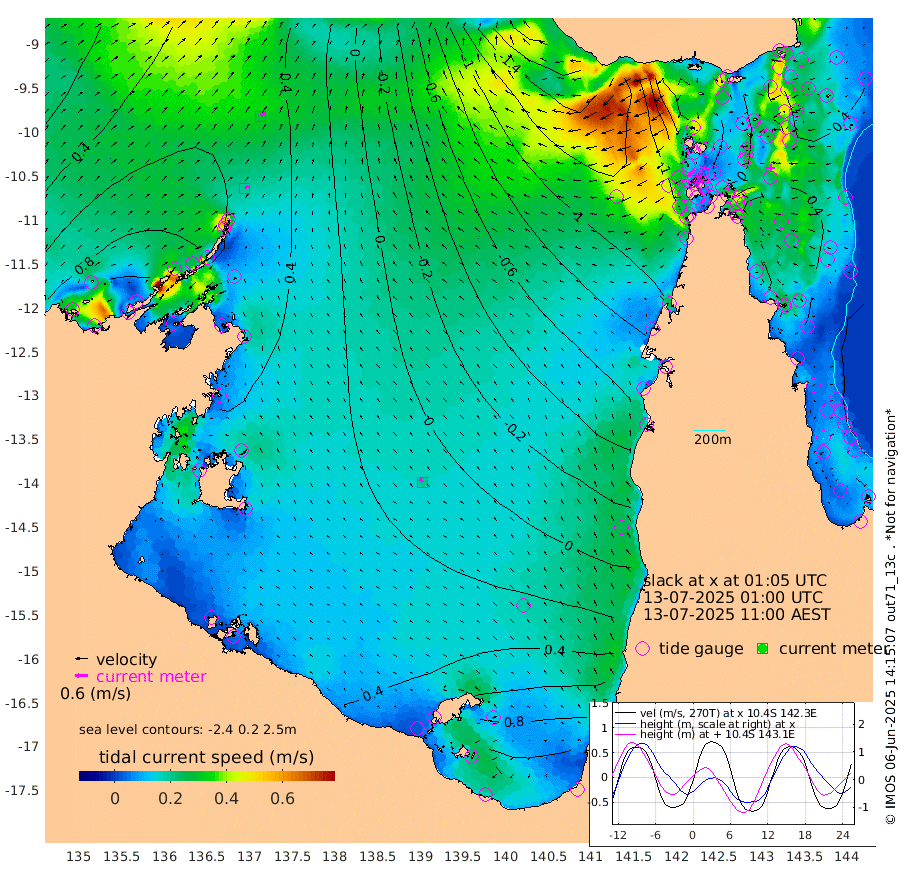 19cm/s 63T +3cm/s rms + 7cm/s -42T. ARA-GOC87 57m 20cm/s -40T +3cm/s rms + 2cm/s -2T. ARA-GOC87 60m 29cm/s 54T +2cm/s rms + 3cm/s 61T. ARA-GOC87 47m 42cm Daru 47cm Bobo Island 31cm Meer Island Barge 49cm Bramble Cay 50cm Unnamed Cay 51cm Pearce Cay 46cm Stephens Island 55cm Merrie England Shoals 45cm Mutacomal Reef 43cm Darnley Island Barge 34cm East Cay 40cm Yorke Island Barge 37cm Rennel Island 38cm Aureed Island 30cm Dungeness Reef -2cm Zagai Island -10cm Yam Island -44cm Dauan Island -49cm Saibai Island -5cm Phipi Reef -4cm Warrior Reef - West -65cm Mabuiag Island Barge 38cm Half Way Island 23cm Coconut Island 30cm Dugong Islet 8cm Poll Island 9cm Kirkcaldie Reef -16cm Suarji Island 3cm Sue Islet -124cm Hawkesbury Island -33cm Alert Patches -30cm Twin Island -108cm Badu Island -34cm St Pauls (Moa Island) -96cm Kubin (Moa Island) -59cm Ince Point -77cm Thursday Island -72cm Nardana Patches -91cm Turtle Head -101cm Round Island -124cm Goods Island -158cm Booby Island -141cm White Rocks Area -182cm Carpentaria -35cm Papou Point -165cm Bampfield Head -134cm Crab Island -154cm Red Wallis Island -113cm Packe Island 30cm Harrington Reef -139cm Herald Camp -7cm Sharp Point -78cm Red Island Point -51cm Possession Island -22cm Alpha Rock -4cm Frederick Point 33cm Wyborn Reef Light 24cm Tetley Island 16cm Triangle Reef 37cm Turtle Head Island 19cm Maclennan Cay 15cm Raine Island 40cm Mcsweeny Reef 41cm Collette Reef 27cm Shadwell Reef 52cm Hannibal Island 48cm Round Point -138cm Vrilya Point 36cm Cape Grenville 34cm Hicks Island 18cm Sir Charles Hardy Island 11cm Harvey Island 32cm Kay Reef 24cm Rocky Island 18cm Chapman Island 11cm Ham Reef 19cm Jubilee Reef 20cm Night Island 11cm Unnamed Reef No. 3 25cm Morris Island 16cm 1st 3 Mile Opening 18cm Creech Reef 24cm Fife Island 33cm Eden Reef 26cm Stanley Island 38cm Normanby River 100cm Yabooma Island 121cm Hutchison River 101cm Elcho Island 101cm North West Crocodile Island 54cm Cape Wessel 104cm Stevens Island 71cm Guluwuru Island 96cm Hopeful Bay 76cm Auster Point 74cm Two Island Bay 121cm Cadell Strait 81cm Mallison Island 74cm Melville Bay (Gove Harbour) 66cm Truant Island 48cm Cape Arnhem 59cm Cape Grey 67cm Hawk Island 68cm Milner Bay (Groote Eylandt) 64cm Cape Beatrice 57cm West Island 56cm Centre Island 105cm Mornington Island 101cm West Wellesley Islands 145cm Bountiful Island 186cm Albert River Mouth 218cm Sweers Island 181cm Karumba 67cm Nassau River Offshore 10cm Christmas Creek -42cm Archer River -80cm Boyd Point -76cm Weipa (Humbug Point) -79cm Pennefather River -128cm Cullen Point