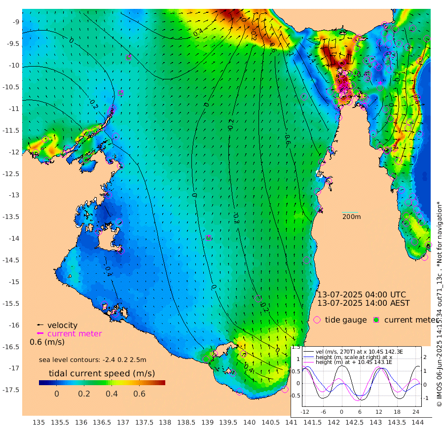 23cm/s 44T +3cm/s rms + 7cm/s -42T. ARA-GOC87 57m 26cm/s 8T +3cm/s rms + 2cm/s -2T. ARA-GOC87 60m 28cm/s 45T +2cm/s rms + 3cm/s 61T. ARA-GOC87 47m 2cm Daru 1cm Bobo Island -49cm Meer Island Barge -37cm Bramble Cay -18cm Unnamed Cay -19cm Pearce Cay -28cm Stephens Island -18cm Merrie England Shoals -1cm Mutacomal Reef -26cm Darnley Island Barge -54cm East Cay -10cm Yorke Island Barge -19cm Rennel Island -7cm Aureed Island -13cm Dungeness Reef 17cm Zagai Island -4cm Yam Island -16cm Dauan Island 5cm Saibai Island -16cm Phipi Reef 6cm Warrior Reef - West -23cm Mabuiag Island Barge -20cm Half Way Island 0cm Coconut Island -16cm Dugong Islet -2cm Poll Island -13cm Kirkcaldie Reef -1cm Suarji Island 11cm Sue Islet -154cm Hawkesbury Island -22cm Alert Patches -18cm Twin Island -118cm Badu Island -9cm St Pauls (Moa Island) -114cm Kubin (Moa Island) -46cm Ince Point -67cm Thursday Island -61cm Nardana Patches -106cm Turtle Head -121cm Round Island -158cm Goods Island -179cm Booby Island -167cm White Rocks Area -139cm Carpentaria -18cm Papou Point -178cm Bampfield Head -149cm Crab Island -169cm Red Wallis Island -141cm Packe Island -4cm Harrington Reef -175cm Herald Camp 13cm Sharp Point -91cm Red Island Point -53cm Possession Island 0cm Alpha Rock -8cm Frederick Point 6cm Wyborn Reef Light 8cm Tetley Island -41cm Triangle Reef -11cm Turtle Head Island -56cm Maclennan Cay -65cm Raine Island -17cm Mcsweeny Reef -20cm Collette Reef -42cm Shadwell Reef -23cm Hannibal Island -40cm Round Point -136cm Vrilya Point -45cm Cape Grenville -52cm Hicks Island -65cm Sir Charles Hardy Island -14cm Harvey Island -54cm Kay Reef -60cm Rocky Island -64cm Chapman Island -63cm Ham Reef -60cm Jubilee Reef -55cm Night Island -64cm Unnamed Reef No. 3 -64cm Morris Island -70cm 1st 3 Mile Opening -66cm Creech Reef -52cm Fife Island -79cm Eden Reef -66cm Stanley Island -66cm Normanby River -50cm Yabooma Island -51cm Hutchison River -39cm Elcho Island -38cm North West Crocodile Island 12cm Cape Wessel -1cm Stevens Island 28cm Guluwuru Island -10cm Hopeful Bay 2cm Auster Point -7cm Two Island Bay -6cm Cadell Strait 131cm Mallison Island 29cm Melville Bay (Gove Harbour) 29cm Truant Island 32cm Cape Arnhem 49cm Cape Grey 51cm Hawk Island 78cm Milner Bay (Groote Eylandt) 65cm Cape Beatrice 87cm West Island 83cm Centre Island 59cm Mornington Island 61cm West Wellesley Islands 62cm Bountiful Island 83cm Albert River Mouth 131cm Sweers Island 71cm Karumba -7cm Nassau River Offshore -58cm Christmas Creek -92cm Archer River -102cm Boyd Point -124cm Weipa (Humbug Point) -91cm Pennefather River -134cm Cullen Point