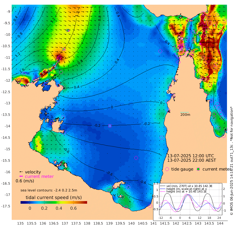 37cm/s 121T +3cm/s rms + 7cm/s -42T. ARA-GOC87 57m 9cm/s 155T +3cm/s rms + 2cm/s -2T. ARA-GOC87 60m 35cm/s 117T +2cm/s rms + 3cm/s 61T. ARA-GOC87 47m 56cm Daru 67cm Bobo Island 90cm Meer Island Barge 95cm Bramble Cay 84cm Unnamed Cay 88cm Pearce Cay 91cm Stephens Island 87cm Merrie England Shoals 64cm Mutacomal Reef 84cm Darnley Island Barge 94cm East Cay 70cm Yorke Island Barge 76cm Rennel Island 63cm Aureed Island 55cm Dungeness Reef 9cm Zagai Island 18cm Yam Island -18cm Dauan Island -29cm Saibai Island -23cm Phipi Reef 1cm Warrior Reef - West 2cm Mabuiag Island Barge 78cm Half Way Island 52cm Coconut Island 70cm Dugong Islet 38cm Poll Island 43cm Kirkcaldie Reef 13cm Suarji Island 26cm Sue Islet 91cm Hawkesbury Island 27cm Alert Patches 30cm Twin Island 66cm Badu Island 16cm St Pauls (Moa Island) 69cm Kubin (Moa Island) 32cm Ince Point 40cm Thursday Island 37cm Nardana Patches 59cm Turtle Head 63cm Round Island 93cm Goods Island 97cm Booby Island 101cm White Rocks Area 69cm Carpentaria 28cm Papou Point 105cm Bampfield Head 69cm Crab Island 87cm Red Wallis Island 72cm Packe Island 65cm Harrington Reef 75cm Herald Camp -17cm Sharp Point 47cm Red Island Point 36cm Possession Island 24cm Alpha Rock 42cm Frederick Point 63cm Wyborn Reef Light 55cm Tetley Island 72cm Triangle Reef 91cm Turtle Head Island 87cm Maclennan Cay 87cm Raine Island 77cm Mcsweeny Reef 75cm Collette Reef 77cm Shadwell Reef 86cm Hannibal Island 98cm Round Point 60cm Vrilya Point 89cm Cape Grenville 92cm Hicks Island 97cm Sir Charles Hardy Island 27cm Harvey Island 94cm Kay Reef 88cm Rocky Island 87cm Chapman Island 85cm Ham Reef 90cm Jubilee Reef 77cm Night Island 86cm Unnamed Reef No. 3 96cm Morris Island 97cm 1st 3 Mile Opening 92cm Creech Reef 82cm Fife Island 116cm Eden Reef 98cm Stanley Island 109cm Normanby River 200cm Yabooma Island 233cm Hutchison River 191cm Elcho Island 177cm North West Crocodile Island 136cm Cape Wessel 170cm Stevens Island 132cm Guluwuru Island 148cm Hopeful Bay 148cm Auster Point 153cm Two Island Bay 194cm Cadell Strait 66cm Mallison Island 109cm Melville Bay (Gove Harbour) 122cm Truant Island 66cm Cape Arnhem 24cm Cape Grey -8cm Hawk Island -54cm Milner Bay (Groote Eylandt) -62cm Cape Beatrice -120cm West Island -124cm Centre Island -137cm Mornington Island -128cm West Wellesley Islands -143cm Bountiful Island -162cm Albert River Mouth -192cm Sweers Island -174cm Karumba -95cm Nassau River Offshore -46cm Christmas Creek 8cm Archer River 29cm Boyd Point 36cm Weipa (Humbug Point) 29cm Pennefather River 45cm Cullen Point