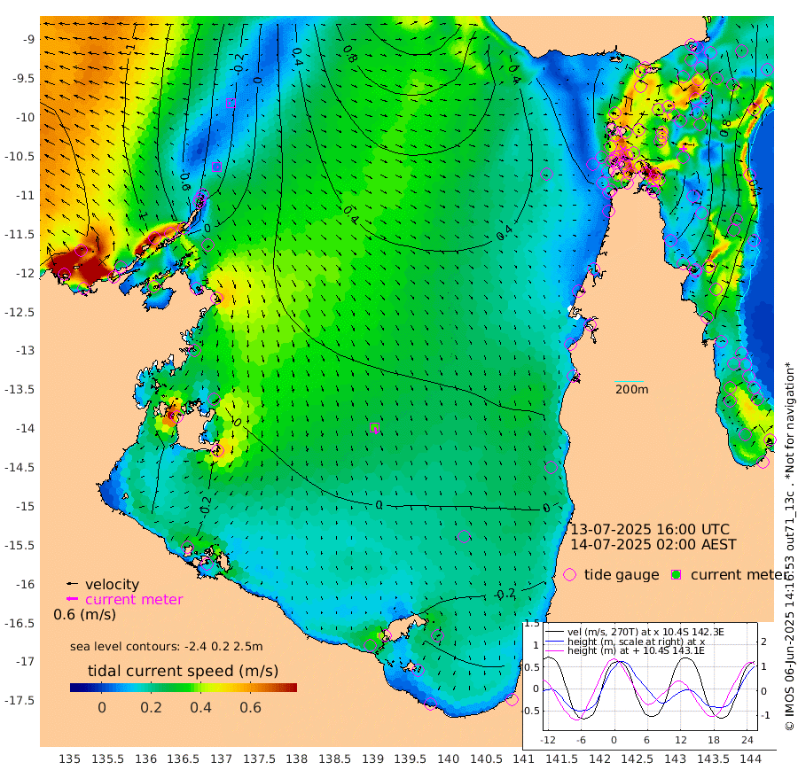 5cm/s 126T +3cm/s rms + 7cm/s -42T. ARA-GOC87 57m 36cm/s 165T +3cm/s rms + 2cm/s -2T. ARA-GOC87 60m 9cm/s -94T +2cm/s rms + 3cm/s 61T. ARA-GOC87 47m 148cm Daru 130cm Bobo Island 57cm Meer Island Barge 84cm Bramble Cay 121cm Unnamed Cay 115cm Pearce Cay 106cm Stephens Island 116cm Merrie England Shoals 147cm Mutacomal Reef 99cm Darnley Island Barge 62cm East Cay 120cm Yorke Island Barge 129cm Rennel Island 122cm Aureed Island 139cm Dungeness Reef 156cm Zagai Island 161cm Yam Island 167cm Dauan Island 159cm Saibai Island 147cm Phipi Reef 173cm Warrior Reef - West 130cm Mabuiag Island Barge 123cm Half Way Island 142cm Coconut Island 140cm Dugong Islet 150cm Poll Island 150cm Kirkcaldie Reef 151cm Suarji Island 151cm Sue Islet 96cm Hawkesbury Island 149cm Alert Patches 152cm Twin Island 101cm Badu Island 160cm St Pauls (Moa Island) 113cm Kubin (Moa Island) 137cm Ince Point 125cm Thursday Island 129cm Nardana Patches 113cm Turtle Head 95cm Round Island 82cm Goods Island 62cm Booby Island 65cm White Rocks Area 51cm Carpentaria 133cm Papou Point 74cm Bampfield Head 52cm Crab Island 74cm Red Wallis Island 107cm Packe Island 146cm Harrington Reef 94cm Herald Camp 49cm Sharp Point 89cm Red Island Point 113cm Possession Island 151cm Alpha Rock 153cm Frederick Point 152cm Wyborn Reef Light 157cm Tetley Island 70cm Triangle Reef 139cm Turtle Head Island 62cm Maclennan Cay 35cm Raine Island 114cm Mcsweeny Reef 102cm Collette Reef 66cm Shadwell Reef 104cm Hannibal Island 86cm Round Point 43cm Vrilya Point 75cm Cape Grenville 68cm Hicks Island 79cm Sir Charles Hardy Island 24cm Harvey Island 58cm Kay Reef 45cm Rocky Island 40cm Chapman Island 39cm Ham Reef 45cm Jubilee Reef 45cm Night Island 41cm Unnamed Reef No. 3 44cm Morris Island 39cm 1st 3 Mile Opening 44cm Creech Reef 54cm Fife Island 35cm Eden Reef 44cm Stanley Island 43cm Normanby River -97cm Yabooma Island -102cm Hutchison River -108cm Elcho Island -108cm North West Crocodile Island -27cm Cape Wessel -67cm Stevens Island 16cm Guluwuru Island -76cm Hopeful Bay -52cm Auster Point -49cm Two Island Bay -49cm Cadell Strait 172cm Mallison Island -1cm Melville Bay (Gove Harbour) 7cm Truant Island 8cm Cape Arnhem -18cm Cape Grey -25cm Hawk Island -59cm Milner Bay (Groote Eylandt) -52cm Cape Beatrice -65cm West Island -73cm Centre Island -49cm Mornington Island -43cm West Wellesley Islands -78cm Bountiful Island -121cm Albert River Mouth -153cm Sweers Island -112cm Karumba -8cm Nassau River Offshore 34cm Christmas Creek 31cm Archer River 49cm Boyd Point 40cm Weipa (Humbug Point) 31cm Pennefather River 49cm Cullen Point