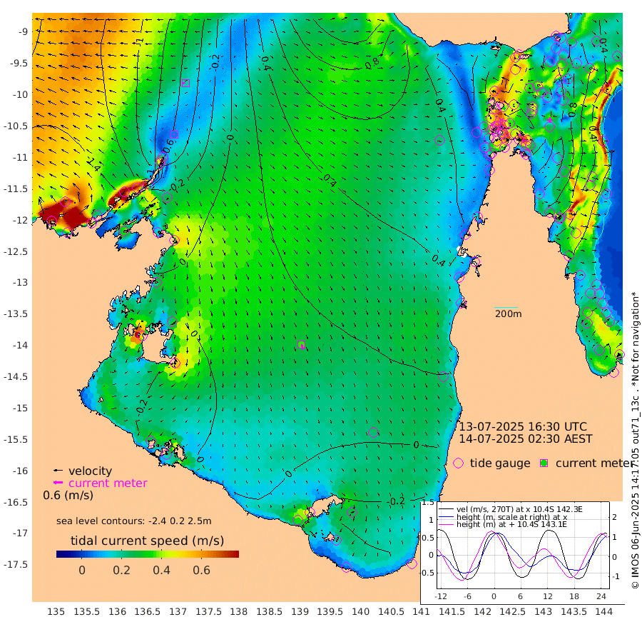 5cm/s -99T +3cm/s rms + 7cm/s -42T. ARA-GOC87 57m 36cm/s 166T +3cm/s rms + 2cm/s -2T. ARA-GOC87 60m 18cm/s -90T +2cm/s rms + 3cm/s 61T. ARA-GOC87 47m 127cm Daru 107cm Bobo Island 37cm Meer Island Barge 60cm Bramble Cay 97cm Unnamed Cay 89cm Pearce Cay 82cm Stephens Island 91cm Merrie England Shoals 126cm Mutacomal Reef 76cm Darnley Island Barge 41cm East Cay 99cm Yorke Island Barge 107cm Rennel Island 102cm Aureed Island 120cm Dungeness Reef 147cm Zagai Island 152cm Yam Island 168cm Dauan Island 162cm Saibai Island 147cm Phipi Reef 165cm Warrior Reef - West 131cm Mabuiag Island Barge 101cm Half Way Island 124cm Coconut Island 119cm Dugong Islet 136cm Poll Island 136cm Kirkcaldie Reef 143cm Suarji Island 139cm Sue Islet 94cm Hawkesbury Island 141cm Alert Patches 144cm Twin Island 101cm Badu Island 153cm St Pauls (Moa Island) 110cm Kubin (Moa Island) 133cm Ince Point 123cm Thursday Island 126cm Nardana Patches 111cm Turtle Head 95cm Round Island 81cm Goods Island 66cm Booby Island 65cm White Rocks Area 59cm Carpentaria 126cm Papou Point 75cm Bampfield Head 57cm Crab Island 78cm Red Wallis Island 107cm Packe Island 125cm Harrington Reef 98cm Herald Camp 51cm Sharp Point 89cm Red Island Point 108cm Possession Island 142cm Alpha Rock 139cm Frederick Point 130cm Wyborn Reef Light 138cm Tetley Island 54cm Triangle Reef 112cm Turtle Head Island 45cm Maclennan Cay 19cm Raine Island 92cm Mcsweeny Reef 81cm Collette Reef 48cm Shadwell Reef 79cm Hannibal Island 62cm Round Point 50cm Vrilya Point 55cm Cape Grenville 47cm Hicks Island 60cm Sir Charles Hardy Island 17cm Harvey Island 38cm Kay Reef 27cm Rocky Island 23cm Chapman Island 24cm Ham Reef 28cm Jubilee Reef 29cm Night Island 26cm Unnamed Reef No. 3 25cm Morris Island 21cm 1st 3 Mile Opening 26cm Creech Reef 36cm Fife Island 13cm Eden Reef 25cm Stanley Island 21cm Normanby River -140cm Yabooma Island -153cm Hutchison River -148cm Elcho Island -145cm North West Crocodile Island -60cm Cape Wessel -108cm Stevens Island -20cm Guluwuru Island -111cm Hopeful Bay -87cm Auster Point -85cm Two Island Bay -97cm Cadell Strait 137cm Mallison Island -32cm Melville Bay (Gove Harbour) -27cm Truant Island -12cm Cape Arnhem -31cm Cape Grey -32cm Hawk Island -57cm Milner Bay (Groote Eylandt) -48cm Cape Beatrice -48cm West Island -55cm Centre Island -32cm Mornington Island -28cm West Wellesley Islands -62cm Bountiful Island -105cm Albert River Mouth -136cm Sweers Island -93cm Karumba 7cm Nassau River Offshore 45cm Christmas Creek 38cm Archer River 55cm Boyd Point 46cm Weipa (Humbug Point) 37cm Pennefather River 57cm Cullen Point