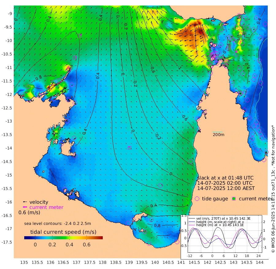 25cm/s 71T +3cm/s rms + 7cm/s -42T. ARA-GOC87 57m 18cm/s -36T +3cm/s rms + 2cm/s -2T. ARA-GOC87 60m 33cm/s 58T +2cm/s rms + 3cm/s 61T. ARA-GOC87 47m 46cm Daru 50cm Bobo Island 27cm Meer Island Barge 43cm Bramble Cay 47cm Unnamed Cay 51cm Pearce Cay 45cm Stephens Island 50cm Merrie England Shoals 43cm Mutacomal Reef 42cm Darnley Island Barge 27cm East Cay 42cm Yorke Island Barge 37cm Rennel Island 41cm Aureed Island 33cm Dungeness Reef 8cm Zagai Island -4cm Yam Island -29cm Dauan Island -37cm Saibai Island 4cm Phipi Reef 7cm Warrior Reef - West -58cm Mabuiag Island Barge 37cm Half Way Island 27cm Coconut Island 30cm Dugong Islet 14cm Poll Island 11cm Kirkcaldie Reef -7cm Suarji Island 9cm Sue Islet -132cm Hawkesbury Island -27cm Alert Patches -24cm Twin Island -110cm Badu Island -25cm St Pauls (Moa Island) -97cm Kubin (Moa Island) -54cm Ince Point -74cm Thursday Island -68cm Nardana Patches -91cm Turtle Head -103cm Round Island -130cm Goods Island -165cm Booby Island -150cm White Rocks Area -185cm Carpentaria -30cm Papou Point -168cm Bampfield Head -141cm Crab Island -162cm Red Wallis Island -118cm Packe Island 32cm Harrington Reef -147cm Herald Camp -4cm Sharp Point -84cm Red Island Point -48cm Possession Island -17cm Alpha Rock 1cm Frederick Point 37cm Wyborn Reef Light 28cm Tetley Island 14cm Triangle Reef 40cm Turtle Head Island 14cm Maclennan Cay 10cm Raine Island 40cm Mcsweeny Reef 39cm Collette Reef 24cm Shadwell Reef 49cm Hannibal Island 42cm Round Point -144cm Vrilya Point 29cm Cape Grenville 29cm Hicks Island 11cm Sir Charles Hardy Island 10cm Harvey Island 22cm Kay Reef 17cm Rocky Island 11cm Chapman Island 4cm Ham Reef 13cm Jubilee Reef 16cm Night Island 4cm Unnamed Reef No. 3 18cm Morris Island 11cm 1st 3 Mile Opening 12cm Creech Reef 23cm Fife Island 24cm Eden Reef 18cm Stanley Island 27cm Normanby River 93cm Yabooma Island 116cm Hutchison River 96cm Elcho Island 93cm North West Crocodile Island 61cm Cape Wessel 105cm Stevens Island 84cm Guluwuru Island 94cm Hopeful Bay 81cm Auster Point 79cm Two Island Bay 127cm Cadell Strait 115cm Mallison Island 86cm Melville Bay (Gove Harbour) 82cm Truant Island 61cm Cape Arnhem 66cm Cape Grey 71cm Hawk Island 69cm Milner Bay (Groote Eylandt) 62cm Cape Beatrice 51cm West Island 50cm Centre Island 95cm Mornington Island 91cm West Wellesley Islands 127cm Bountiful Island 167cm Albert River Mouth 204cm Sweers Island 161cm Karumba 54cm Nassau River Offshore -1cm Christmas Creek -52cm Archer River -84cm Boyd Point -84cm Weipa (Humbug Point) -82cm Pennefather River -133cm Cullen Point