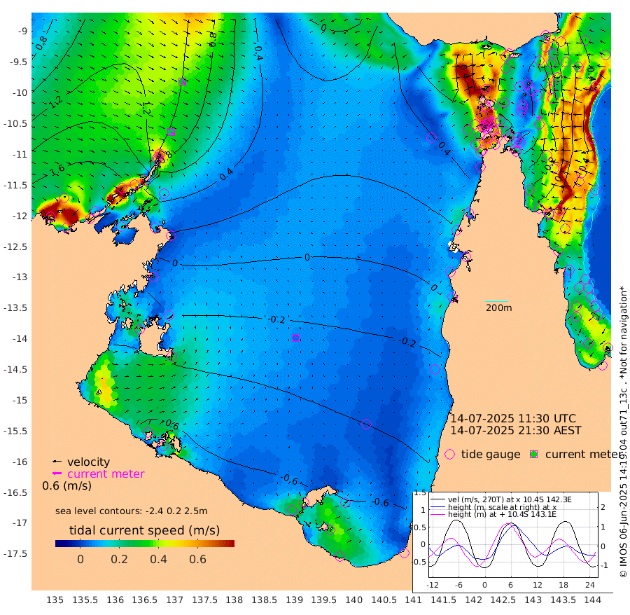 24cm/s 132T +3cm/s rms + 7cm/s -42T. ARA-GOC87 57m 5cm/s 25T +3cm/s rms + 2cm/s -2T. ARA-GOC87 60m 28cm/s 127T +2cm/s rms + 3cm/s 61T. ARA-GOC87 47m -23cm Daru -7cm Bobo Island 40cm Meer Island Barge 30cm Bramble Cay 7cm Unnamed Cay 15cm Pearce Cay 18cm Stephens Island 8cm Merrie England Shoals -17cm Mutacomal Reef 16cm Darnley Island Barge 42cm East Cay -1cm Yorke Island Barge 3cm Rennel Island -4cm Aureed Island -14cm Dungeness Reef -48cm Zagai Island -39cm Yam Island -58cm Dauan Island -62cm Saibai Island -67cm Phipi Reef -59cm Warrior Reef - West -21cm Mabuiag Island Barge 4cm Half Way Island -17cm Coconut Island -4cm Dugong Islet -25cm Poll Island -23cm Kirkcaldie Reef -34cm Suarji Island -34cm Sue Islet 84cm Hawkesbury Island -19cm Alert Patches -19cm Twin Island 55cm Badu Island -32cm St Pauls (Moa Island) 47cm Kubin (Moa Island) -3cm Ince Point 13cm Thursday Island 8cm Nardana Patches 38cm Turtle Head 51cm Round Island 87cm Goods Island 106cm Booby Island 107cm White Rocks Area 89cm Carpentaria -12cm Papou Point 112cm Bampfield Head 76cm Crab Island 92cm Red Wallis Island 55cm Packe Island -10cm Harrington Reef 72cm Herald Camp -30cm Sharp Point 35cm Red Island Point 7cm Possession Island -27cm Alpha Rock -19cm Frederick Point -15cm Wyborn Reef Light -20cm Tetley Island 27cm Triangle Reef 11cm Turtle Head Island 41cm Maclennan Cay 51cm Raine Island 6cm Mcsweeny Reef 9cm Collette Reef 27cm Shadwell Reef 14cm Hannibal Island 32cm Round Point 69cm Vrilya Point 31cm Cape Grenville 38cm Hicks Island 44cm Sir Charles Hardy Island 9cm Harvey Island 44cm Kay Reef 47cm Rocky Island 51cm Chapman Island 50cm Ham Reef 48cm Jubilee Reef 37cm Night Island 49cm Unnamed Reef No. 3 51cm Morris Island 57cm 1st 3 Mile Opening 51cm Creech Reef 36cm Fife Island 69cm Eden Reef 52cm Stanley Island 60cm Normanby River 194cm Yabooma Island 217cm Hutchison River 186cm Elcho Island 176cm North West Crocodile Island 118cm Cape Wessel 149cm Stevens Island 85cm Guluwuru Island 137cm Hopeful Bay 132cm Auster Point 133cm Two Island Bay 155cm Cadell Strait -58cm Mallison Island 74cm Melville Bay (Gove Harbour) 83cm Truant Island 38cm Cape Arnhem 13cm Cape Grey -14cm Hawk Island -39cm Milner Bay (Groote Eylandt) -47cm Cape Beatrice -90cm West Island -90cm Centre Island -124cm Mornington Island -115cm West Wellesley Islands -119cm Bountiful Island -134cm Albert River Mouth -154cm Sweers Island -146cm Karumba -95cm Nassau River Offshore -56cm Christmas Creek 5cm Archer River 26cm Boyd Point 37cm Weipa (Humbug Point) 28cm Pennefather River 54cm Cullen Point
