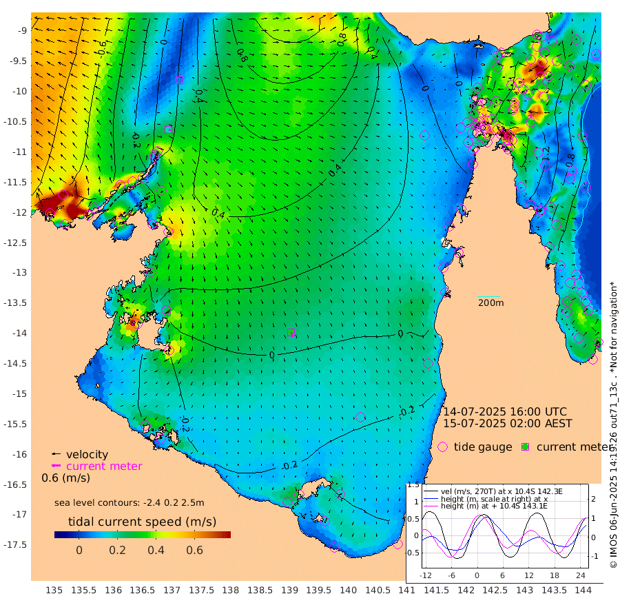 17cm/s 104T +3cm/s rms + 7cm/s -42T. ARA-GOC87 57m 32cm/s 165T +3cm/s rms + 2cm/s -2T. ARA-GOC87 60m 5cm/s 87T +2cm/s rms + 3cm/s 61T. ARA-GOC87 47m 150cm Daru 136cm Bobo Island 73cm Meer Island Barge 99cm Bramble Cay 130cm Unnamed Cay 125cm Pearce Cay 119cm Stephens Island 125cm Merrie England Shoals 147cm Mutacomal Reef 112cm Darnley Island Barge 79cm East Cay 128cm Yorke Island Barge 134cm Rennel Island 126cm Aureed Island 137cm Dungeness Reef 142cm Zagai Island 147cm Yam Island 141cm Dauan Island 133cm Saibai Island 122cm Phipi Reef 156cm Warrior Reef - West 104cm Mabuiag Island Barge 130cm Half Way Island 138cm Coconut Island 142cm Dugong Islet 140cm Poll Island 143cm Kirkcaldie Reef 128cm Suarji Island 141cm Sue Islet 73cm Hawkesbury Island 125cm Alert Patches 132cm Twin Island 77cm Badu Island 137cm St Pauls (Moa Island) 92cm Kubin (Moa Island) 113cm Ince Point 100cm Thursday Island 104cm Nardana Patches 88cm Turtle Head 69cm Round Island 59cm Goods Island 36cm Booby Island 40cm White Rocks Area 23cm Carpentaria 117cm Papou Point 45cm Bampfield Head 29cm Crab Island 46cm Red Wallis Island 79cm Packe Island 145cm Harrington Reef 65cm Herald Camp 39cm Sharp Point 70cm Red Island Point 91cm Possession Island 132cm Alpha Rock 140cm Frederick Point 150cm Wyborn Reef Light 152cm Tetley Island 78cm Triangle Reef 145cm Turtle Head Island 76cm Maclennan Cay 50cm Raine Island 122cm Mcsweeny Reef 110cm Collette Reef 76cm Shadwell Reef 115cm Hannibal Island 100cm Round Point 19cm Vrilya Point 87cm Cape Grenville 83cm Hicks Island 94cm Sir Charles Hardy Island 28cm Harvey Island 72cm Kay Reef 60cm Rocky Island 52cm Chapman Island 53cm Ham Reef 61cm Jubilee Reef 56cm Night Island 54cm Unnamed Reef No. 3 61cm Morris Island 55cm 1st 3 Mile Opening 59cm Creech Reef 69cm Fife Island 58cm Eden Reef 61cm Stanley Island 65cm Normanby River -29cm Yabooma Island -23cm Hutchison River -41cm Elcho Island -43cm North West Crocodile Island 22cm Cape Wessel -6cm Stevens Island 69cm Guluwuru Island -23cm Hopeful Bay 1cm Auster Point 8cm Two Island Bay 29cm Cadell Strait 210cm Mallison Island 44cm Melville Bay (Gove Harbour) 53cm Truant Island 37cm Cape Arnhem 4cm Cape Grey -14cm Hawk Island -55cm Milner Bay (Groote Eylandt) -52cm Cape Beatrice -78cm West Island -89cm Centre Island -64cm Mornington Island -57cm West Wellesley Islands -85cm Bountiful Island -124cm Albert River Mouth -158cm Sweers Island -121cm Karumba -24cm Nassau River Offshore 15cm Christmas Creek 13cm Archer River 31cm Boyd Point 22cm Weipa (Humbug Point) 12cm Pennefather River 23cm Cullen Point