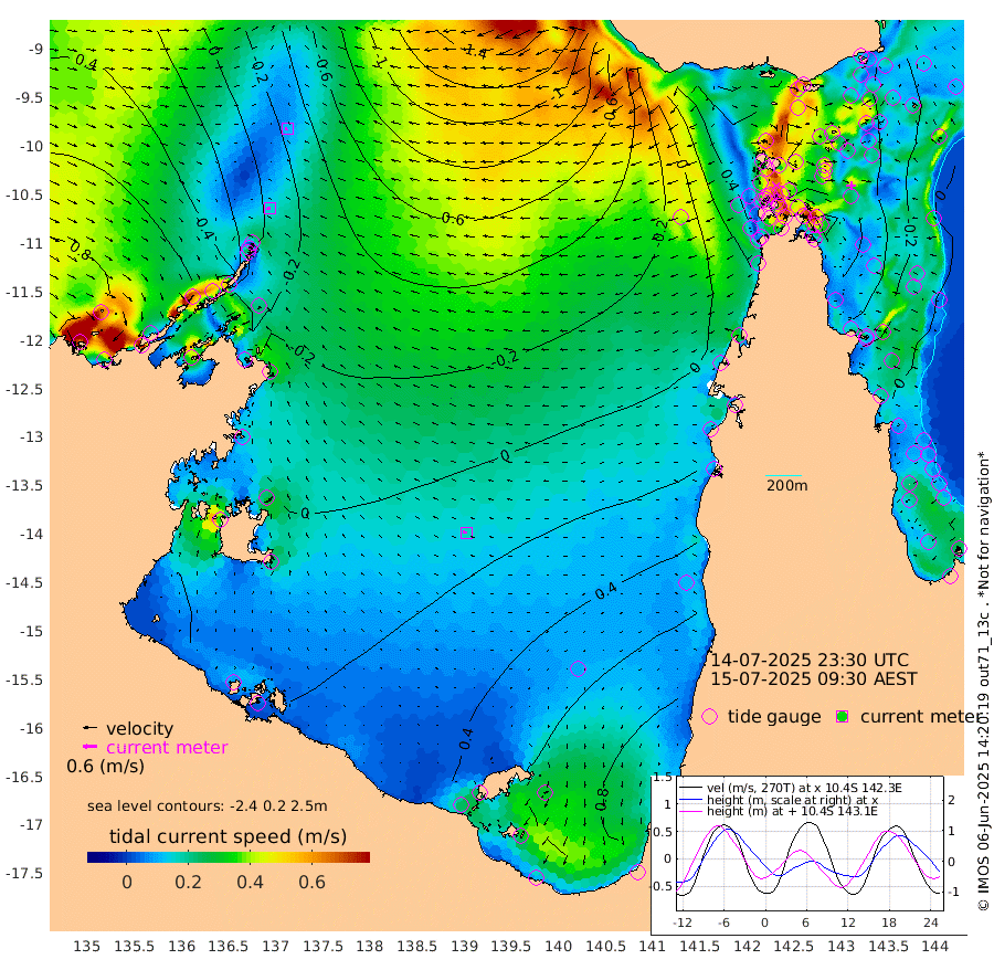 16cm/s -104T +3cm/s rms + 7cm/s -42T. ARA-GOC87 57m 16cm/s -83T +3cm/s rms + 2cm/s -2T. ARA-GOC87 60m 11cm/s -108T +2cm/s rms + 3cm/s 61T. ARA-GOC87 47m -60cm Daru -56cm Bobo Island -13cm Meer Island Barge -23cm Bramble Cay -47cm Unnamed Cay -36cm Pearce Cay -37cm Stephens Island -42cm Merrie England Shoals -59cm Mutacomal Reef -39cm Darnley Island Barge -11cm East Cay -52cm Yorke Island Barge -48cm Rennel Island -48cm Aureed Island -47cm Dungeness Reef -73cm Zagai Island -65cm Yam Island -51cm Dauan Island -72cm Saibai Island -23cm Phipi Reef -64cm Warrior Reef - West -56cm Mabuiag Island Barge -45cm Half Way Island -61cm Coconut Island -54cm Dugong Islet -60cm Poll Island -58cm Kirkcaldie Reef -61cm Suarji Island -76cm Sue Islet -1cm Hawkesbury Island -58cm Alert Patches -61cm Twin Island -9cm Badu Island -67cm St Pauls (Moa Island) -15cm Kubin (Moa Island) -47cm Ince Point -36cm Thursday Island -39cm Nardana Patches -13cm Turtle Head -7cm Round Island 11cm Goods Island 14cm Booby Island 14cm White Rocks Area -30cm Carpentaria -59cm Papou Point -11cm Bampfield Head 16cm Crab Island 12cm Red Wallis Island 5cm Packe Island -63cm Harrington Reef 9cm Herald Camp -24cm Sharp Point -11cm Red Island Point -36cm Possession Island -73cm Alpha Rock -65cm Frederick Point -71cm Wyborn Reef Light -75cm Tetley Island -19cm Triangle Reef -65cm Turtle Head Island -13cm Maclennan Cay 3cm Raine Island -45cm Mcsweeny Reef -38cm Collette Reef -17cm Shadwell Reef -37cm Hannibal Island -20cm Round Point 8cm Vrilya Point -19cm Cape Grenville -14cm Hicks Island -21cm Sir Charles Hardy Island -6cm Harvey Island -13cm Kay Reef -3cm Rocky Island 3cm Chapman Island -5cm Ham Reef -7cm Jubilee Reef 0cm Night Island -2cm Unnamed Reef No. 3 -2cm Morris Island -1cm 1st 3 Mile Opening -2cm Creech Reef -5cm Fife Island 8cm Eden Reef -1cm Stanley Island 0cm Normanby River 69cm Yabooma Island 69cm Hutchison River 67cm Elcho Island 72cm North West Crocodile Island -20cm Cape Wessel 30cm Stevens Island -49cm Guluwuru Island 41cm Hopeful Bay 7cm Auster Point 9cm Two Island Bay 25cm Cadell Strait -168cm Mallison Island -27cm Melville Bay (Gove Harbour) -39cm Truant Island -30cm Cape Arnhem -18cm Cape Grey 6cm Hawk Island 15cm Milner Bay (Groote Eylandt) 26cm Cape Beatrice 29cm West Island 36cm Centre Island 84cm Mornington Island 76cm West Wellesley Islands 113cm Bountiful Island 155cm Albert River Mouth 153cm Sweers Island 161cm Karumba 93cm Nassau River Offshore 67cm Christmas Creek 45cm Archer River 15cm Boyd Point 39cm Weipa (Humbug Point) 18cm Pennefather River 14cm Cullen Point