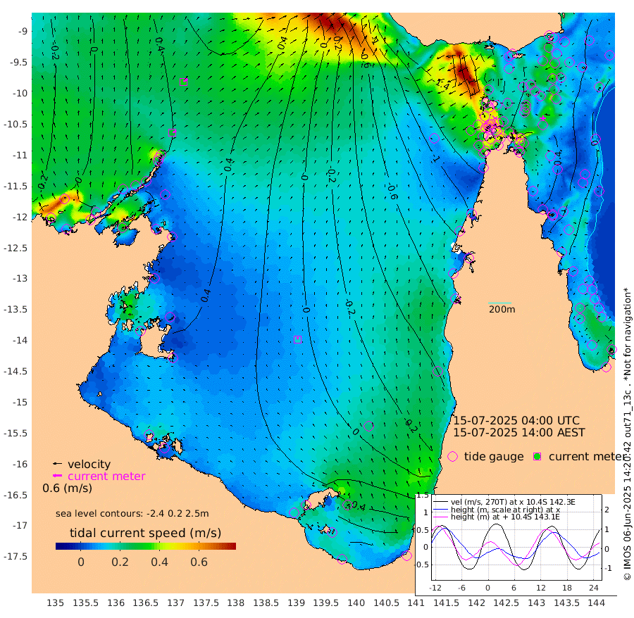 28cm/s 66T +3cm/s rms + 7cm/s -42T. ARA-GOC87 57m 15cm/s -8T +3cm/s rms + 2cm/s -2T. ARA-GOC87 60m 33cm/s 55T +2cm/s rms + 3cm/s 61T. ARA-GOC87 47m 42cm Daru 43cm Bobo Island 8cm Meer Island Barge 20cm Bramble Cay 33cm Unnamed Cay 32cm Pearce Cay 28cm Stephens Island 32cm Merrie England Shoals 34cm Mutacomal Reef 30cm Darnley Island Barge 4cm East Cay 36cm Yorke Island Barge 26cm Rennel Island 34cm Aureed Island 25cm Dungeness Reef 24cm Zagai Island 2cm Yam Island -14cm Dauan Island -11cm Saibai Island 3cm Phipi Reef 18cm Warrior Reef - West -43cm Mabuiag Island Barge 24cm Half Way Island 28cm Coconut Island 21cm Dugong Islet 16cm Poll Island 9cm Kirkcaldie Reef 2cm Suarji Island 21cm Sue Islet -155cm Hawkesbury Island -19cm Alert Patches -17cm Twin Island -122cm Badu Island -13cm St Pauls (Moa Island) -109cm Kubin (Moa Island) -50cm Ince Point -73cm Thursday Island -66cm Nardana Patches -101cm Turtle Head -115cm Round Island -152cm Goods Island -183cm Booby Island -174cm White Rocks Area -168cm Carpentaria -23cm Papou Point -173cm Bampfield Head -153cm Crab Island -179cm Red Wallis Island -136cm Packe Island 28cm Harrington Reef -166cm Herald Camp 5cm Sharp Point -97cm Red Island Point -47cm Possession Island -4cm Alpha Rock 5cm Frederick Point 36cm Wyborn Reef Light 32cm Tetley Island 1cm Triangle Reef 34cm Turtle Head Island -5cm Maclennan Cay -12cm Raine Island 31cm Mcsweeny Reef 28cm Collette Reef 9cm Shadwell Reef 33cm Hannibal Island 18cm Round Point -147cm Vrilya Point 8cm Cape Grenville 7cm Hicks Island -9cm Sir Charles Hardy Island 4cm Harvey Island -1cm Kay Reef -5cm Rocky Island -13cm Chapman Island -15cm Ham Reef -7cm Jubilee Reef -3cm Night Island -16cm Unnamed Reef No. 3 -6cm Morris Island -10cm 1st 3 Mile Opening -10cm Creech Reef 5cm Fife Island -8cm Eden Reef -7cm Stanley Island -4cm Normanby River 8cm Yabooma Island 24cm Hutchison River 17cm Elcho Island 11cm North West Crocodile Island 39cm Cape Wessel 47cm Stevens Island 77cm Guluwuru Island 37cm Hopeful Bay 42cm Auster Point 38cm Two Island Bay 66cm Cadell Strait 180cm Mallison Island 74cm Melville Bay (Gove Harbour) 74cm Truant Island 62cm Cape Arnhem 66cm Cape Grey 67cm Hawk Island 70cm Milner Bay (Groote Eylandt) 58cm Cape Beatrice 57cm West Island 54cm Centre Island 72cm Mornington Island 68cm West Wellesley Islands 82cm Bountiful Island 108cm Albert River Mouth 154cm Sweers Island 100cm Karumba 18cm Nassau River Offshore -30cm Christmas Creek -73cm Archer River -91cm Boyd Point -105cm Weipa (Humbug Point) -86cm Pennefather River -138cm Cullen Point