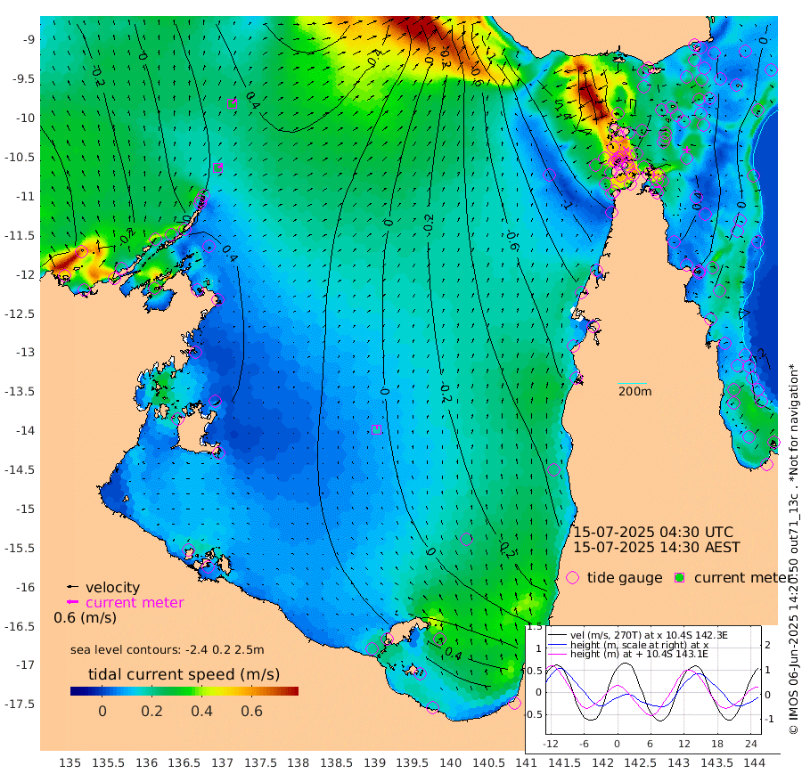 25cm/s 59T +3cm/s rms + 7cm/s -42T. ARA-GOC87 57m 17cm/s 2T +3cm/s rms + 2cm/s -2T. ARA-GOC87 60m 30cm/s 50T +2cm/s rms + 3cm/s 61T. ARA-GOC87 47m 35cm Daru 34cm Bobo Island -3cm Meer Island Barge 8cm Bramble Cay 23cm Unnamed Cay 19cm Pearce Cay 16cm Stephens Island 22cm Merrie England Shoals 26cm Mutacomal Reef 20cm Darnley Island Barge -8cm East Cay 28cm Yorke Island Barge 16cm Rennel Island 26cm Aureed Island 16cm Dungeness Reef 24cm Zagai Island 1cm Yam Island -15cm Dauan Island -6cm Saibai Island -2cm Phipi Reef 16cm Warrior Reef - West -38cm Mabuiag Island Barge 15cm Half Way Island 23cm Coconut Island 14cm Dugong Islet 12cm Poll Island 5cm Kirkcaldie Reef 2cm Suarji Island 21cm Sue Islet -157cm Hawkesbury Island -19cm Alert Patches -16cm Twin Island -123cm Badu Island -11cm St Pauls (Moa Island) -111cm Kubin (Moa Island) -49cm Ince Point -71cm Thursday Island -65cm Nardana Patches -103cm Turtle Head -115cm Round Island -155cm Goods Island -182cm Booby Island -175cm White Rocks Area -154cm Carpentaria -21cm Papou Point -169cm Bampfield Head -152cm Crab Island -178cm Red Wallis Island -139cm Packe Island 22cm Harrington Reef -166cm Herald Camp 8cm Sharp Point -98cm Red Island Point -46cm Possession Island -2cm Alpha Rock 3cm Frederick Point 31cm Wyborn Reef Light 28cm Tetley Island -7cm Triangle Reef 25cm Turtle Head Island -15cm Maclennan Cay -22cm Raine Island 22cm Mcsweeny Reef 19cm Collette Reef -1cm Shadwell Reef 22cm Hannibal Island 5cm Round Point -142cm Vrilya Point -2cm Cape Grenville -5cm Hicks Island -20cm Sir Charles Hardy Island 0cm Harvey Island -11cm Kay Reef -16cm Rocky Island -24cm Chapman Island -24cm Ham Reef -17cm Jubilee Reef -13cm Night Island -26cm Unnamed Reef No. 3 -17cm Morris Island -21cm 1st 3 Mile Opening -20cm Creech Reef -7cm Fife Island -23cm Eden Reef -18cm Stanley Island -18cm Normanby River -29cm Yabooma Island -18cm Hutchison River -17cm Elcho Island -22cm North West Crocodile Island 22cm Cape Wessel 18cm Stevens Island 61cm Guluwuru Island 10cm Hopeful Bay 20cm Auster Point 15cm Two Island Bay 30cm Cadell Strait 178cm Mallison Island 57cm Melville Bay (Gove Harbour) 57cm Truant Island 53cm Cape Arnhem 60cm Cape Grey 61cm Hawk Island 70cm Milner Bay (Groote Eylandt) 57cm Cape Beatrice 64cm West Island 61cm Centre Island 66cm Mornington Island 63cm West Wellesley Islands 71cm Bountiful Island 90cm Albert River Mouth 138cm Sweers Island 83cm Karumba 8cm Nassau River Offshore -38cm Christmas Creek -77cm Archer River -91cm Boyd Point -109cm Weipa (Humbug Point) -85cm Pennefather River -135cm Cullen Point