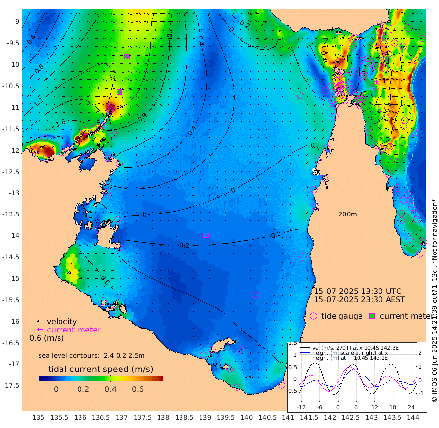 30cm/s 118T +3cm/s rms + 7cm/s -42T. ARA-GOC87 57m 7cm/s 176T +3cm/s rms + 2cm/s -2T. ARA-GOC87 60m 29cm/s 110T +2cm/s rms + 3cm/s 61T. ARA-GOC87 47m 51cm Daru 61cm Bobo Island 70cm Meer Island Barge 73cm Bramble Cay 66cm Unnamed Cay 78cm Pearce Cay 73cm Stephens Island 62cm Merrie England Shoals 52cm Mutacomal Reef 67cm Darnley Island Barge 75cm East Cay 60cm Yorke Island Barge 65cm Rennel Island 59cm Aureed Island 54cm Dungeness Reef 26cm Zagai Island 33cm Yam Island 22cm Dauan Island 10cm Saibai Island 11cm Phipi Reef 26cm Warrior Reef - West 24cm Mabuiag Island Barge 62cm Half Way Island 48cm Coconut Island 61cm Dugong Islet 42cm Poll Island 41cm Kirkcaldie Reef 31cm Suarji Island 32cm Sue Islet 88cm Hawkesbury Island 33cm Alert Patches 37cm Twin Island 69cm Badu Island 30cm St Pauls (Moa Island) 70cm Kubin (Moa Island) 39cm Ince Point 43cm Thursday Island 42cm Nardana Patches 60cm Turtle Head 62cm Round Island 83cm Goods Island 79cm Booby Island 87cm White Rocks Area 41cm Carpentaria 37cm Papou Point 88cm Bampfield Head 52cm Crab Island 71cm Red Wallis Island 64cm Packe Island 57cm Harrington Reef 72cm Herald Camp -11cm Sharp Point 50cm Red Island Point 41cm Possession Island 28cm Alpha Rock 43cm Frederick Point 55cm Wyborn Reef Light 50cm Tetley Island 59cm Triangle Reef 75cm Turtle Head Island 70cm Maclennan Cay 67cm Raine Island 62cm Mcsweeny Reef 58cm Collette Reef 58cm Shadwell Reef 65cm Hannibal Island 76cm Round Point 33cm Vrilya Point 65cm Cape Grenville 74cm Hicks Island 81cm Sir Charles Hardy Island 21cm Harvey Island 68cm Kay Reef 69cm Rocky Island 70cm Chapman Island 67cm Ham Reef 69cm Jubilee Reef 57cm Night Island 66cm Unnamed Reef No. 3 73cm Morris Island 74cm 1st 3 Mile Opening 70cm Creech Reef 66cm Fife Island 88cm Eden Reef 71cm Stanley Island 84cm Normanby River 208cm Yabooma Island 238cm Hutchison River 193cm Elcho Island 183cm North West Crocodile Island 140cm Cape Wessel 171cm Stevens Island 131cm Guluwuru Island 151cm Hopeful Bay 151cm Auster Point 155cm Two Island Bay 202cm Cadell Strait 48cm Mallison Island 114cm Melville Bay (Gove Harbour) 125cm Truant Island 70cm Cape Arnhem 32cm Cape Grey 1cm Hawk Island -44cm Milner Bay (Groote Eylandt) -51cm Cape Beatrice -107cm West Island -114cm Centre Island -111cm Mornington Island -101cm West Wellesley Islands -97cm Bountiful Island -120cm Albert River Mouth -144cm Sweers Island -128cm Karumba -74cm Nassau River Offshore -36cm Christmas Creek 3cm Archer River 21cm Boyd Point 30cm Weipa (Humbug Point) 6cm Pennefather River 29cm Cullen Point