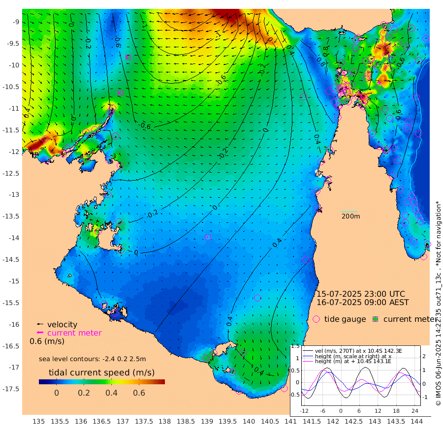 27cm/s -100T +3cm/s rms + 7cm/s -42T. ARA-GOC87 57m 11cm/s -98T +3cm/s rms + 2cm/s -2T. ARA-GOC87 60m 26cm/s -110T +2cm/s rms + 3cm/s 61T. ARA-GOC87 47m -79cm Daru -80cm Bobo Island -45cm Meer Island Barge -56cm Bramble Cay -74cm Unnamed Cay -67cm Pearce Cay -68cm Stephens Island -68cm Merrie England Shoals -73cm Mutacomal Reef -70cm Darnley Island Barge -44cm East Cay -77cm Yorke Island Barge -69cm Rennel Island -71cm Aureed Island -61cm Dungeness Reef -67cm Zagai Island -54cm Yam Island -30cm Dauan Island -44cm Saibai Island -17cm Phipi Reef -58cm Warrior Reef - West -21cm Mabuiag Island Barge -65cm Half Way Island -70cm Coconut Island -69cm Dugong Islet -59cm Poll Island -57cm Kirkcaldie Reef -50cm Suarji Island -72cm Sue Islet 43cm Hawkesbury Island -38cm Alert Patches -42cm Twin Island 32cm Badu Island -44cm St Pauls (Moa Island) 20cm Kubin (Moa Island) -17cm Ince Point -1cm Thursday Island -6cm Nardana Patches 21cm Turtle Head 26cm Round Island 51cm Goods Island 67cm Booby Island 63cm White Rocks Area 37cm Carpentaria -39cm Papou Point 35cm Bampfield Head 65cm Crab Island 69cm Red Wallis Island 48cm Packe Island -76cm Harrington Reef 52cm Herald Camp -13cm Sharp Point 23cm Red Island Point -17cm Possession Island -54cm Alpha Rock -59cm Frederick Point -83cm Wyborn Reef Light -81cm Tetley Island -39cm Triangle Reef -86cm Turtle Head Island -39cm Maclennan Cay -24cm Raine Island -70cm Mcsweeny Reef -64cm Collette Reef -43cm Shadwell Reef -68cm Hannibal Island -53cm Round Point 63cm Vrilya Point -47cm Cape Grenville -46cm Hicks Island -49cm Sir Charles Hardy Island -16cm Harvey Island -41cm Kay Reef -33cm Rocky Island -24cm Chapman Island -30cm Ham Reef -35cm Jubilee Reef -26cm Night Island -25cm Unnamed Reef No. 3 -33cm Morris Island -32cm 1st 3 Mile Opening -31cm Creech Reef -36cm Fife Island -32cm Eden Reef -33cm Stanley Island -37cm Normanby River -9cm Yabooma Island -27cm Hutchison River -11cm Elcho Island -1cm North West Crocodile Island -70cm Cape Wessel -41cm Stevens Island -111cm Guluwuru Island -27cm Hopeful Bay -55cm Auster Point -54cm Two Island Bay -65cm Cadell Strait -213cm Mallison Island -86cm Melville Bay (Gove Harbour) -97cm Truant Island -70cm Cape Arnhem -53cm Cape Grey -26cm Hawk Island -5cm Milner Bay (Groote Eylandt) 10cm Cape Beatrice 30cm West Island 38cm Centre Island 61cm Mornington Island 55cm West Wellesley Islands 70cm Bountiful Island 103cm Albert River Mouth 88cm Sweers Island 111cm Karumba 81cm Nassau River Offshore 69cm Christmas Creek 61cm Archer River 41cm Boyd Point 60cm Weipa (Humbug Point) 50cm Pennefather River 61cm Cullen Point