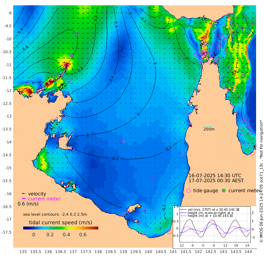 24cm/s 112T +3cm/s rms + 7cm/s -42T. ARA-GOC87 57m 8cm/s -170T +3cm/s rms + 2cm/s -2T. ARA-GOC87 60m 24cm/s 100T +2cm/s rms + 3cm/s 61T. ARA-GOC87 47m 46cm Daru 54cm Bobo Island 57cm Meer Island Barge 58cm Bramble Cay 53cm Unnamed Cay 65cm Pearce Cay 59cm Stephens Island 45cm Merrie England Shoals 41cm Mutacomal Reef 55cm Darnley Island Barge 62cm East Cay 51cm Yorke Island Barge 55cm Rennel Island 52cm Aureed Island 49cm Dungeness Reef 34cm Zagai Island 38cm Yam Island 43cm Dauan Island 31cm Saibai Island 29cm Phipi Reef 39cm Warrior Reef - West 31cm Mabuiag Island Barge 49cm Half Way Island 41cm Coconut Island 51cm Dugong Islet 40cm Poll Island 36cm Kirkcaldie Reef 34cm Suarji Island 33cm Sue Islet 70cm Hawkesbury Island 29cm Alert Patches 33cm Twin Island 58cm Badu Island 31cm St Pauls (Moa Island) 58cm Kubin (Moa Island) 34cm Ince Point 35cm Thursday Island 35cm Nardana Patches 49cm Turtle Head 51cm Round Island 62cm Goods Island 53cm Booby Island 60cm White Rocks Area 14cm Carpentaria 36cm Papou Point 64cm Bampfield Head 31cm Crab Island 48cm Red Wallis Island 48cm Packe Island 46cm Harrington Reef 59cm Herald Camp -7cm Sharp Point 41cm Red Island Point 35cm Possession Island 25cm Alpha Rock 38cm Frederick Point 46cm Wyborn Reef Light 43cm Tetley Island 50cm Triangle Reef 60cm Turtle Head Island 57cm Maclennan Cay 54cm Raine Island 51cm Mcsweeny Reef 47cm Collette Reef 47cm Shadwell Reef 50cm Hannibal Island 60cm Round Point 9cm Vrilya Point 49cm Cape Grenville 60cm Hicks Island 68cm Sir Charles Hardy Island 17cm Harvey Island 51cm Kay Reef 56cm Rocky Island 57cm Chapman Island 54cm Ham Reef 56cm Jubilee Reef 45cm Night Island 52cm Unnamed Reef No. 3 57cm Morris Island 58cm 1st 3 Mile Opening 55cm Creech Reef 56cm Fife Island 68cm Eden Reef 54cm Stanley Island 66cm Normanby River 190cm Yabooma Island 217cm Hutchison River 175cm Elcho Island 167cm North West Crocodile Island 131cm Cape Wessel 157cm Stevens Island 127cm Guluwuru Island 140cm Hopeful Bay 139cm Auster Point 144cm Two Island Bay 192cm Cadell Strait 62cm Mallison Island 112cm Melville Bay (Gove Harbour) 122cm Truant Island 71cm Cape Arnhem 37cm Cape Grey 9cm Hawk Island -35cm Milner Bay (Groote Eylandt) -41cm Cape Beatrice -93cm West Island -102cm Centre Island -85cm Mornington Island -77cm West Wellesley Islands -63cm Bountiful Island -84cm Albert River Mouth -104cm Sweers Island -89cm Karumba -54cm Nassau River Offshore -25cm Christmas Creek -1cm Archer River 14cm Boyd Point 23cm Weipa (Humbug Point) -10cm Pennefather River 14cm Cullen Point