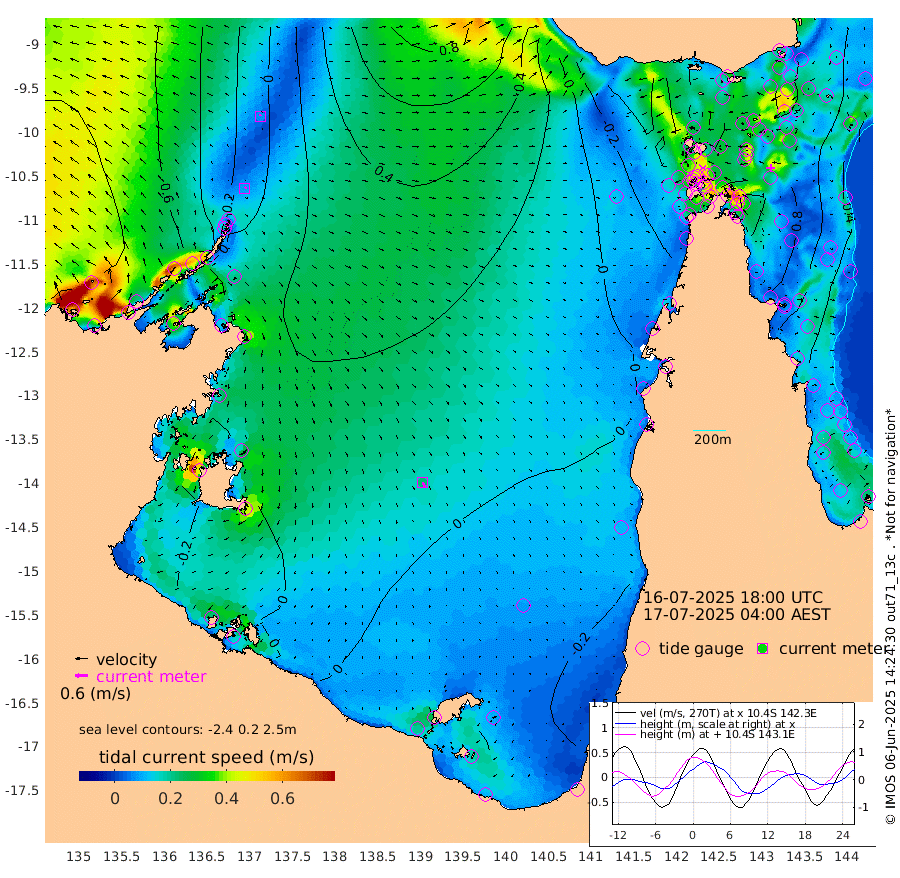 8cm/s 55T +3cm/s rms + 7cm/s -42T. ARA-GOC87 57m 23cm/s 163T +3cm/s rms + 2cm/s -2T. ARA-GOC87 60m 7cm/s -11T +2cm/s rms + 3cm/s 61T. ARA-GOC87 47m 93cm Daru 84cm Bobo Island 45cm Meer Island Barge 59cm Bramble Cay 78cm Unnamed Cay 68cm Pearce Cay 73cm Stephens Island 75cm Merrie England Shoals 88cm Mutacomal Reef 72cm Darnley Island Barge 49cm East Cay 81cm Yorke Island Barge 78cm Rennel Island 74cm Aureed Island 76cm Dungeness Reef 85cm Zagai Island 90cm Yam Island 76cm Dauan Island 82cm Saibai Island 61cm Phipi Reef 94cm Warrior Reef - West 46cm Mabuiag Island Barge 78cm Half Way Island 77cm Coconut Island 85cm Dugong Islet 77cm Poll Island 87cm Kirkcaldie Reef 57cm Suarji Island 86cm Sue Islet 3cm Hawkesbury Island 54cm Alert Patches 63cm Twin Island 4cm Badu Island 67cm St Pauls (Moa Island) 22cm Kubin (Moa Island) 46cm Ince Point 32cm Thursday Island 36cm Nardana Patches 16cm Turtle Head 3cm Round Island -13cm Goods Island -29cm Booby Island -31cm White Rocks Area -18cm Carpentaria 60cm Papou Point -30cm Bampfield Head -20cm Crab Island -19cm Red Wallis Island 8cm Packe Island 84cm Harrington Reef 4cm Herald Camp 26cm Sharp Point 19cm Red Island Point 29cm Possession Island 71cm Alpha Rock 75cm Frederick Point 85cm Wyborn Reef Light 86cm Tetley Island 43cm Triangle Reef 79cm Turtle Head Island 45cm Maclennan Cay 26cm Raine Island 72cm Mcsweeny Reef 65cm Collette Reef 45cm Shadwell Reef 69cm Hannibal Island 55cm Round Point -19cm Vrilya Point 52cm Cape Grenville 50cm Hicks Island 60cm Sir Charles Hardy Island 18cm Harvey Island 43cm Kay Reef 35cm Rocky Island 25cm Chapman Island 32cm Ham Reef 37cm Jubilee Reef 32cm Night Island 30cm Unnamed Reef No. 3 34cm Morris Island 27cm 1st 3 Mile Opening 34cm Creech Reef 41cm Fife Island 32cm Eden Reef 36cm Stanley Island 40cm Normanby River -72cm Yabooma Island -74cm Hutchison River -77cm Elcho Island -73cm North West Crocodile Island -8cm Cape Wessel -46cm Stevens Island 38cm Guluwuru Island -53cm Hopeful Bay -33cm Auster Point -19cm Two Island Bay -11cm Cadell Strait 180cm Mallison Island 14cm Melville Bay (Gove Harbour) 18cm Truant Island 16cm Cape Arnhem 2cm Cape Grey -12cm Hawk Island -31cm Milner Bay (Groote Eylandt) -26cm Cape Beatrice -32cm West Island -41cm Centre Island -20cm Mornington Island -20cm West Wellesley Islands -36cm Bountiful Island -63cm Albert River Mouth -89cm Sweers Island -58cm Karumba -2cm Nassau River Offshore 15cm Christmas Creek -4cm Archer River 4cm Boyd Point -8cm Weipa (Humbug Point) -13cm Pennefather River -11cm Cullen Point