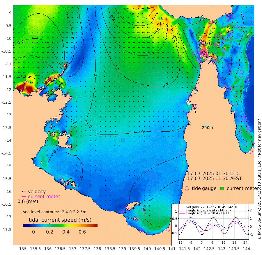 12cm/s 143T +3cm/s rms + 7cm/s -42T. ARA-GOC87 57m 13cm/s -64T +3cm/s rms + 2cm/s -2T. ARA-GOC87 60m 13cm/s 119T +2cm/s rms + 3cm/s 61T. ARA-GOC87 47m -59cm Daru -53cm Bobo Island -26cm Meer Island Barge -34cm Bramble Cay -55cm Unnamed Cay -35cm Pearce Cay -45cm Stephens Island -53cm Merrie England Shoals -62cm Mutacomal Reef -48cm Darnley Island Barge -28cm East Cay -56cm Yorke Island Barge -51cm Rennel Island -48cm Aureed Island -46cm Dungeness Reef -58cm Zagai Island -59cm Yam Island -29cm Dauan Island -54cm Saibai Island -19cm Phipi Reef -51cm Warrior Reef - West -39cm Mabuiag Island Barge -49cm Half Way Island -56cm Coconut Island -57cm Dugong Islet -51cm Poll Island -59cm Kirkcaldie Reef -52cm Suarji Island -69cm Sue Islet -3cm Hawkesbury Island -50cm Alert Patches -51cm Twin Island 2cm Badu Island -52cm St Pauls (Moa Island) -11cm Kubin (Moa Island) -37cm Ince Point -29cm Thursday Island -31cm Nardana Patches -10cm Turtle Head -15cm Round Island 9cm Goods Island 10cm Booby Island 12cm White Rocks Area -35cm Carpentaria -49cm Papou Point -21cm Bampfield Head 12cm Crab Island 9cm Red Wallis Island 2cm Packe Island -63cm Harrington Reef -13cm Herald Camp -22cm Sharp Point -14cm Red Island Point -37cm Possession Island -64cm Alpha Rock -57cm Frederick Point -65cm Wyborn Reef Light -66cm Tetley Island -26cm Triangle Reef -58cm Turtle Head Island -28cm Maclennan Cay -11cm Raine Island -49cm Mcsweeny Reef -46cm Collette Reef -29cm Shadwell Reef -48cm Hannibal Island -31cm Round Point 4cm Vrilya Point -37cm Cape Grenville -29cm Hicks Island -40cm Sir Charles Hardy Island -12cm Harvey Island -33cm Kay Reef -20cm Rocky Island -12cm Chapman Island -21cm Ham Reef -22cm Jubilee Reef -15cm Night Island -18cm Unnamed Reef No. 3 -19cm Morris Island -17cm 1st 3 Mile Opening -20cm Creech Reef -14cm Fife Island -13cm Eden Reef -23cm Stanley Island -21cm Normanby River 125cm Yabooma Island 135cm Hutchison River 123cm Elcho Island 123cm North West Crocodile Island 38cm Cape Wessel 96cm Stevens Island 8cm Guluwuru Island 91cm Hopeful Bay 63cm Auster Point 64cm Two Island Bay 102cm Cadell Strait -86cm Mallison Island 26cm Melville Bay (Gove Harbour) 21cm Truant Island 10cm Cape Arnhem 3cm Cape Grey 14cm Hawk Island 14cm Milner Bay (Groote Eylandt) 15cm Cape Beatrice 0cm West Island 3cm Centre Island 37cm Mornington Island 33cm West Wellesley Islands 55cm Bountiful Island 103cm Albert River Mouth 103cm Sweers Island 99cm Karumba 47cm Nassau River Offshore 27cm Christmas Creek 20cm Archer River -1cm Boyd Point 18cm Weipa (Humbug Point) 11cm Pennefather River 1cm Cullen Point