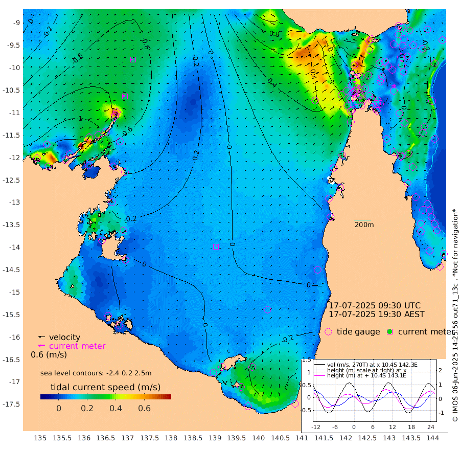 23cm/s -73T +3cm/s rms + 7cm/s -42T. ARA-GOC87 57m 13cm/s 33T +3cm/s rms + 2cm/s -2T. ARA-GOC87 60m 21cm/s -91T +2cm/s rms + 3cm/s 61T. ARA-GOC87 47m -14cm Daru -17cm Bobo Island -20cm Meer Island Barge -20cm Bramble Cay -8cm Unnamed Cay -25cm Pearce Cay -18cm Stephens Island -5cm Merrie England Shoals -2cm Mutacomal Reef -16cm Darnley Island Barge -23cm East Cay -12cm Yorke Island Barge -12cm Rennel Island -13cm Aureed Island -12cm Dungeness Reef -5cm Zagai Island -7cm Yam Island -29cm Dauan Island -9cm Saibai Island -22cm Phipi Reef -20cm Warrior Reef - West 10cm Mabuiag Island Barge -12cm Half Way Island 0cm Coconut Island -8cm Dugong Islet -3cm Poll Island -2cm Kirkcaldie Reef 17cm Suarji Island 7cm Sue Islet 5cm Hawkesbury Island 21cm Alert Patches 13cm Twin Island 0cm Badu Island 10cm St Pauls (Moa Island) -1cm Kubin (Moa Island) 13cm Ince Point 16cm Thursday Island 15cm Nardana Patches 7cm Turtle Head 20cm Round Island 8cm Goods Island 24cm Booby Island 21cm White Rocks Area 66cm Carpentaria 8cm Papou Point 52cm Bampfield Head 15cm Crab Island 18cm Red Wallis Island 2cm Packe Island 1cm Harrington Reef 16cm Herald Camp 8cm Sharp Point 5cm Red Island Point 24cm Possession Island 19cm Alpha Rock 6cm Frederick Point 1cm Wyborn Reef Light 3cm Tetley Island -15cm Triangle Reef -4cm Turtle Head Island -17cm Maclennan Cay -21cm Raine Island -10cm Mcsweeny Reef -8cm Collette Reef -13cm Shadwell Reef -9cm Hannibal Island -19cm Round Point 28cm Vrilya Point -8cm Cape Grenville -21cm Hicks Island -19cm Sir Charles Hardy Island -5cm Harvey Island -8cm Kay Reef -18cm Rocky Island -19cm Chapman Island -15cm Ham Reef -19cm Jubilee Reef -17cm Night Island -16cm Unnamed Reef No. 3 -19cm Morris Island -16cm 1st 3 Mile Opening -17cm Creech Reef -31cm Fife Island -26cm Eden Reef -15cm Stanley Island -24cm Normanby River -137cm Yabooma Island -155cm Hutchison River -127cm Elcho Island -128cm North West Crocodile Island -83cm Cape Wessel -119cm Stevens Island -89cm Guluwuru Island -103cm Hopeful Bay -90cm Auster Point -105cm Two Island Bay -168cm Cadell Strait -93cm Mallison Island -82cm Melville Bay (Gove Harbour) -83cm Truant Island -52cm Cape Arnhem -24cm Cape Grey -14cm Hawk Island 14cm Milner Bay (Groote Eylandt) 12cm Cape Beatrice 48cm West Island 57cm Centre Island -1cm Mornington Island 2cm West Wellesley Islands -16cm Bountiful Island -40cm Albert River Mouth -19cm Sweers Island -39cm Karumba -28cm Nassau River Offshore -25cm Christmas Creek -6cm Archer River 6cm Boyd Point -5cm Weipa (Humbug Point) 17cm Pennefather River 21cm Cullen Point