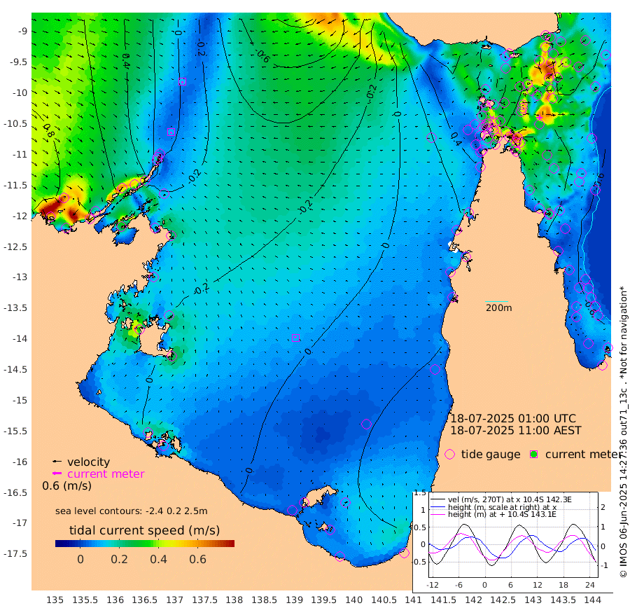 10cm/s -159T +3cm/s rms + 7cm/s -42T. ARA-GOC87 57m 10cm/s -41T +3cm/s rms + 2cm/s -2T. ARA-GOC87 60m 11cm/s -178T +2cm/s rms + 3cm/s 61T. ARA-GOC87 47m -80cm Daru -80cm Bobo Island -64cm Meer Island Barge -70cm Bramble Cay -84cm Unnamed Cay -68cm Pearce Cay -80cm Stephens Island -80cm Merrie England Shoals -77cm Mutacomal Reef -84cm Darnley Island Barge -65cm East Cay -84cm Yorke Island Barge -75cm Rennel Island -75cm Aureed Island -64cm Dungeness Reef -57cm Zagai Island -50cm Yam Island -18cm Dauan Island -33cm Saibai Island -18cm Phipi Reef -51cm Warrior Reef - West -7cm Mabuiag Island Barge -71cm Half Way Island -68cm Coconut Island -74cm Dugong Islet -53cm Poll Island -60cm Kirkcaldie Reef -43cm Suarji Island -67cm Sue Islet 41cm Hawkesbury Island -32cm Alert Patches -34cm Twin Island 40cm Badu Island -32cm St Pauls (Moa Island) 19cm Kubin (Moa Island) -11cm Ince Point 3cm Thursday Island -1cm Nardana Patches 18cm Turtle Head 16cm Round Island 44cm Goods Island 57cm Booby Island 58cm White Rocks Area 23cm Carpentaria -29cm Papou Point 18cm Bampfield Head 55cm Crab Island 59cm Red Wallis Island 38cm Packe Island -76cm Harrington Reef 24cm Herald Camp -11cm Sharp Point 20cm Red Island Point -19cm Possession Island -46cm Alpha Rock -53cm Frederick Point -78cm Wyborn Reef Light -73cm Tetley Island -51cm Triangle Reef -78cm Turtle Head Island -59cm Maclennan Cay -45cm Raine Island -77cm Mcsweeny Reef -75cm Collette Reef -61cm Shadwell Reef -82cm Hannibal Island -67cm Round Point 53cm Vrilya Point -69cm Cape Grenville -66cm Hicks Island -75cm Sir Charles Hardy Island -22cm Harvey Island -66cm Kay Reef -56cm Rocky Island -46cm Chapman Island -52cm Ham Reef -55cm Jubilee Reef -47cm Night Island -48cm Unnamed Reef No. 3 -57cm Morris Island -54cm 1st 3 Mile Opening -55cm Creech Reef -54cm Fife Island -60cm Eden Reef -59cm Stanley Island -62cm Normanby River 68cm Yabooma Island 59cm Hutchison River 64cm Elcho Island 70cm North West Crocodile Island -4cm Cape Wessel 41cm Stevens Island -52cm Guluwuru Island 38cm Hopeful Bay 14cm Auster Point 14cm Two Island Bay 26cm Cadell Strait -151cm Mallison Island -30cm Melville Bay (Gove Harbour) -35cm Truant Island -31cm Cape Arnhem -27cm Cape Grey -13cm Hawk Island 1cm Milner Bay (Groote Eylandt) 6cm Cape Beatrice 8cm West Island 11cm Centre Island 14cm Mornington Island 13cm West Wellesley Islands 19cm Bountiful Island 58cm Albert River Mouth 50cm Sweers Island 56cm Karumba 30cm Nassau River Offshore 19cm Christmas Creek 27cm Archer River 15cm Boyd Point 30cm Weipa (Humbug Point) 37cm Pennefather River 40cm Cullen Point