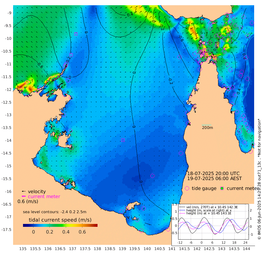 12cm/s 7T +3cm/s rms + 7cm/s -42T. ARA-GOC87 57m 6cm/s 151T +3cm/s rms + 2cm/s -2T. ARA-GOC87 60m 13cm/s -6T +2cm/s rms + 3cm/s 61T. ARA-GOC87 47m 52cm Daru 51cm Bobo Island 35cm Meer Island Barge 46cm Bramble Cay 53cm Unnamed Cay 39cm Pearce Cay 51cm Stephens Island 56cm Merrie England Shoals 54cm Mutacomal Reef 52cm Darnley Island Barge 40cm East Cay 51cm Yorke Island Barge 44cm Rennel Island 41cm Aureed Island 33cm Dungeness Reef 23cm Zagai Island 29cm Yam Island -17cm Dauan Island 0cm Saibai Island -14cm Phipi Reef 22cm Warrior Reef - West -27cm Mabuiag Island Barge 50cm Half Way Island 34cm Coconut Island 48cm Dugong Islet 24cm Poll Island 40cm Kirkcaldie Reef -7cm Suarji Island 34cm Sue Islet -70cm Hawkesbury Island -11cm Alert Patches 1cm Twin Island -77cm Badu Island -3cm St Pauls (Moa Island) -50cm Kubin (Moa Island) -23cm Ince Point -36cm Thursday Island -34cm Nardana Patches -57cm Turtle Head -61cm Round Island -84cm Goods Island -97cm Booby Island -96cm White Rocks Area -68cm Carpentaria 2cm Papou Point -101cm Bampfield Head -76cm Crab Island -86cm Red Wallis Island -62cm Packe Island 45cm Harrington Reef -62cm Herald Camp 9cm Sharp Point -36cm Red Island Point -27cm Possession Island 16cm Alpha Rock 21cm Frederick Point 43cm Wyborn Reef Light 40cm Tetley Island 23cm Triangle Reef 39cm Turtle Head Island 32cm Maclennan Cay 18cm Raine Island 45cm Mcsweeny Reef 44cm Collette Reef 31cm Shadwell Reef 51cm Hannibal Island 41cm Round Point -65cm Vrilya Point 43cm Cape Grenville 39cm Hicks Island 42cm Sir Charles Hardy Island 15cm Harvey Island 39cm Kay Reef 28cm Rocky Island 17cm Chapman Island 25cm Ham Reef 28cm Jubilee Reef 24cm Night Island 23cm Unnamed Reef No. 3 28cm Morris Island 17cm 1st 3 Mile Opening 26cm Creech Reef 28cm Fife Island 30cm Eden Reef 33cm Stanley Island 40cm Normanby River -69cm Yabooma Island -75cm Hutchison River -69cm Elcho Island -62cm North West Crocodile Island -16cm Cape Wessel -45cm Stevens Island 17cm Guluwuru Island -46cm Hopeful Bay -36cm Auster Point -19cm Two Island Bay -24cm Cadell Strait 127cm Mallison Island -2cm Melville Bay (Gove Harbour) -3cm Truant Island 2cm Cape Arnhem 5cm Cape Grey 2cm Hawk Island 3cm Milner Bay (Groote Eylandt) 8cm Cape Beatrice 19cm West Island 15cm Centre Island 24cm Mornington Island 21cm West Wellesley Islands 17cm Bountiful Island 8cm Albert River Mouth -1cm Sweers Island 13cm Karumba 16cm Nassau River Offshore 6cm Christmas Creek -27cm Archer River -33cm Boyd Point -46cm Weipa (Humbug Point) -44cm Pennefather River -56cm Cullen Point