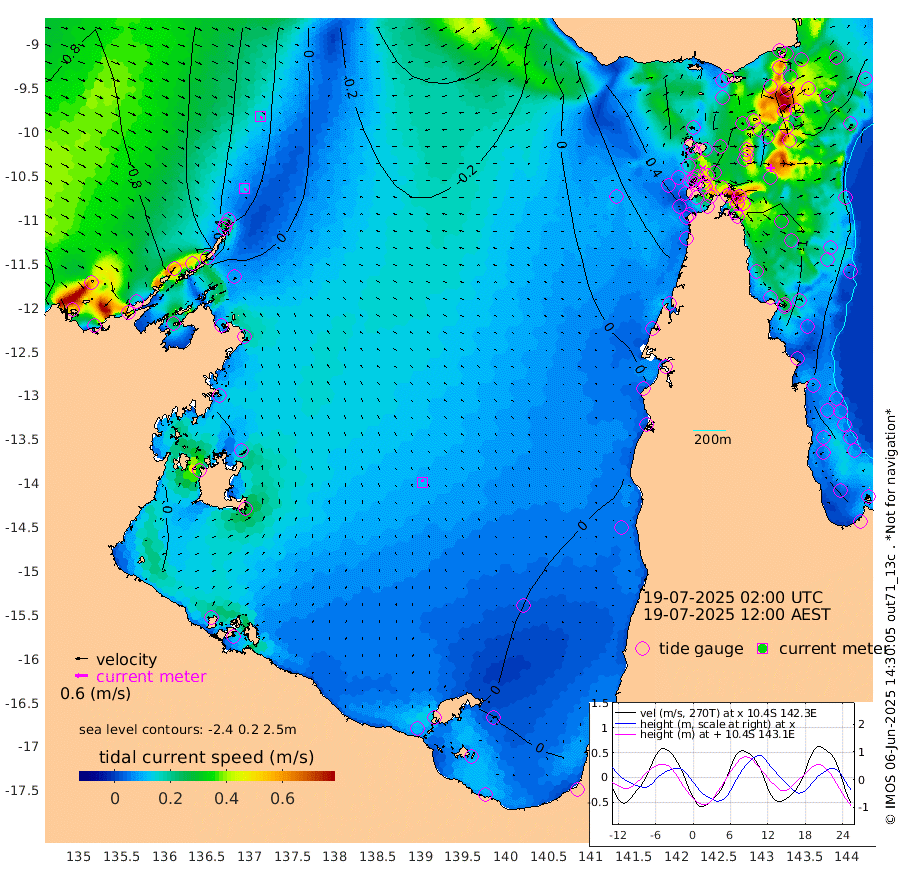 12cm/s 152T +3cm/s rms + 7cm/s -42T. ARA-GOC87 57m 12cm/s -15T +3cm/s rms + 2cm/s -2T. ARA-GOC87 60m 15cm/s 141T +2cm/s rms + 3cm/s 61T. ARA-GOC87 47m -92cm Daru -92cm Bobo Island -78cm Meer Island Barge -88cm Bramble Cay -100cm Unnamed Cay -83cm Pearce Cay -96cm Stephens Island -99cm Merrie England Shoals -92cm Mutacomal Reef -98cm Darnley Island Barge -83cm East Cay -96cm Yorke Island Barge -90cm Rennel Island -88cm Aureed Island -76cm Dungeness Reef -57cm Zagai Island -55cm Yam Island -12cm Dauan Island -25cm Saibai Island -23cm Phipi Reef -54cm Warrior Reef - West -1cm Mabuiag Island Barge -86cm Half Way Island -78cm Coconut Island -88cm Dugong Islet -60cm Poll Island -71cm Kirkcaldie Reef -49cm Suarji Island -71cm Sue Islet 36cm Hawkesbury Island -37cm Alert Patches -39cm Twin Island 40cm Badu Island -33cm St Pauls (Moa Island) 15cm Kubin (Moa Island) -15cm Ince Point -1cm Thursday Island -4cm Nardana Patches 12cm Turtle Head 10cm Round Island 37cm Goods Island 50cm Booby Island 50cm White Rocks Area 22cm Carpentaria -30cm Papou Point 14cm Bampfield Head 50cm Crab Island 52cm Red Wallis Island 27cm Packe Island -90cm Harrington Reef 12cm Herald Camp -12cm Sharp Point 14cm Red Island Point -24cm Possession Island -50cm Alpha Rock -61cm Frederick Point -88cm Wyborn Reef Light -81cm Tetley Island -63cm Triangle Reef -87cm Turtle Head Island -75cm Maclennan Cay -59cm Raine Island -91cm Mcsweeny Reef -90cm Collette Reef -75cm Shadwell Reef -100cm Hannibal Island -85cm Round Point 49cm Vrilya Point -88cm Cape Grenville -83cm Hicks Island -93cm Sir Charles Hardy Island -28cm Harvey Island -85cm Kay Reef -72cm Rocky Island -61cm Chapman Island -67cm Ham Reef -70cm Jubilee Reef -63cm Night Island -64cm Unnamed Reef No. 3 -74cm Morris Island -69cm 1st 3 Mile Opening -71cm Creech Reef -67cm Fife Island -80cm Eden Reef -78cm Stanley Island -82cm Normanby River 91cm Yabooma Island 86cm Hutchison River 87cm Elcho Island 91cm North West Crocodile Island 24cm Cape Wessel 69cm Stevens Island -25cm Guluwuru Island 59cm Hopeful Bay 40cm Auster Point 40cm Two Island Bay 58cm Cadell Strait -113cm Mallison Island -5cm Melville Bay (Gove Harbour) -7cm Truant Island -12cm Cape Arnhem -15cm Cape Grey -9cm Hawk Island 3cm Milner Bay (Groote Eylandt) 1cm Cape Beatrice -4cm West Island -3cm Centre Island -13cm Mornington Island -14cm West Wellesley Islands -13cm Bountiful Island 25cm Albert River Mouth 23cm Sweers Island 21cm Karumba -1cm Nassau River Offshore -9cm Christmas Creek 9cm Archer River 4cm Boyd Point 15cm Weipa (Humbug Point) 30cm Pennefather River 32cm Cullen Point