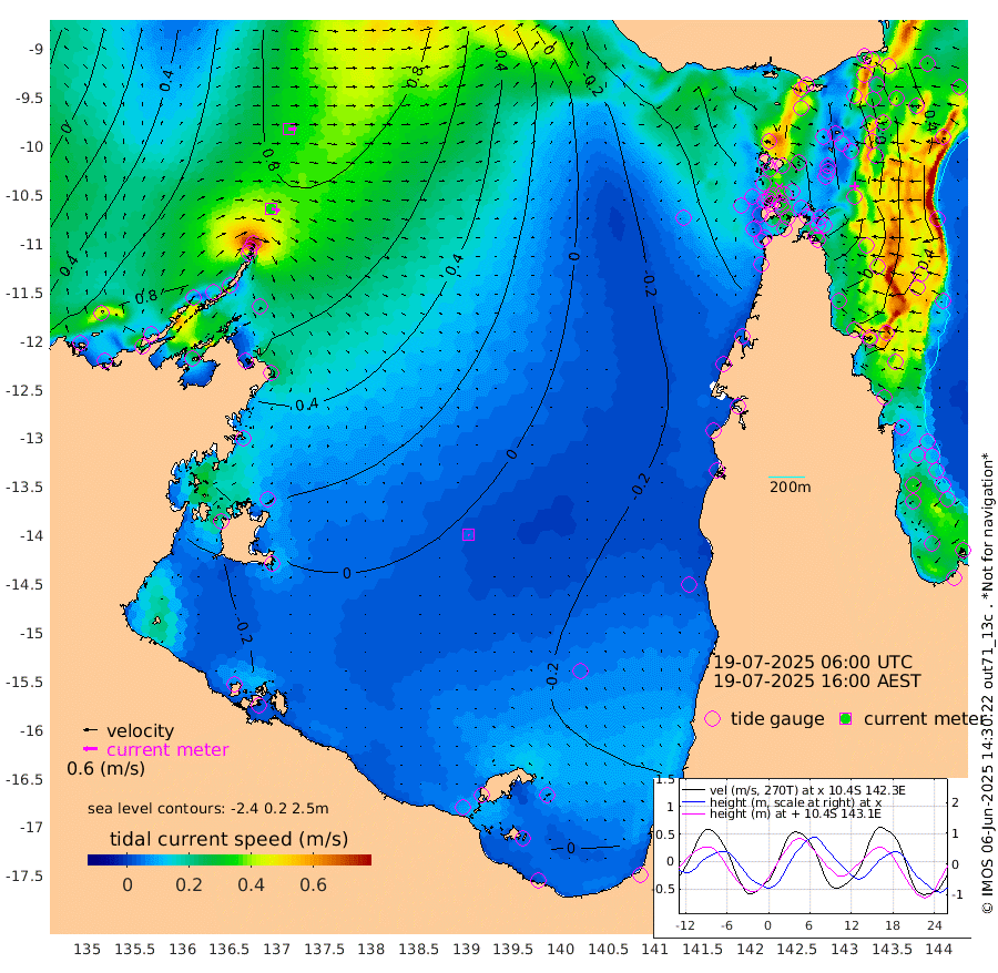 36cm/s 105T +3cm/s rms + 7cm/s -42T. ARA-GOC87 57m 4cm/s 161T +3cm/s rms + 2cm/s -2T. ARA-GOC87 60m 33cm/s 95T +2cm/s rms + 3cm/s 61T. ARA-GOC87 47m -8cm Daru 4cm Bobo Island 39cm Meer Island Barge 26cm Bramble Cay 3cm Unnamed Cay 13cm Pearce Cay 19cm Stephens Island 5cm Merrie England Shoals -22cm Mutacomal Reef 26cm Darnley Island Barge 33cm East Cay 8cm Yorke Island Barge -5cm Rennel Island 4cm Aureed Island -19cm Dungeness Reef -38cm Zagai Island -57cm Yam Island -54cm Dauan Island -60cm Saibai Island -53cm Phipi Reef -43cm Warrior Reef - West -71cm Mabuiag Island Barge -4cm Half Way Island -18cm Coconut Island -18cm Dugong Islet -38cm Poll Island -39cm Kirkcaldie Reef -63cm Suarji Island -39cm Sue Islet -78cm Hawkesbury Island -62cm Alert Patches -60cm Twin Island -62cm Badu Island -65cm St Pauls (Moa Island) -64cm Kubin (Moa Island) -66cm Ince Point -68cm Thursday Island -68cm Nardana Patches -62cm Turtle Head -71cm Round Island -59cm Goods Island -61cm Booby Island -70cm White Rocks Area -52cm Carpentaria -59cm Papou Point -65cm Bampfield Head -47cm Crab Island -67cm Red Wallis Island -66cm Packe Island -22cm Harrington Reef -82cm Herald Camp -26cm Sharp Point -65cm Red Island Point -61cm Possession Island -59cm Alpha Rock -43cm Frederick Point -19cm Wyborn Reef Light -27cm Tetley Island 20cm Triangle Reef -5cm Turtle Head Island 25cm Maclennan Cay 40cm Raine Island 10cm Mcsweeny Reef 14cm Collette Reef 29cm Shadwell Reef 19cm Hannibal Island 25cm Round Point -40cm Vrilya Point 20cm Cape Grenville 29cm Hicks Island 24cm Sir Charles Hardy Island 8cm Harvey Island 28cm Kay Reef 35cm Rocky Island 36cm Chapman Island 35cm Ham Reef 38cm Jubilee Reef 34cm Night Island 35cm Unnamed Reef No. 3 40cm Morris Island 42cm 1st 3 Mile Opening 39cm Creech Reef 47cm Fife Island 54cm Eden Reef 39cm Stanley Island 40cm Normanby River 68cm Yabooma Island 100cm Hutchison River 83cm Elcho Island 67cm North West Crocodile Island 75cm Cape Wessel 85cm Stevens Island 109cm Guluwuru Island 75cm Hopeful Bay 77cm Auster Point 81cm Two Island Bay 125cm Cadell Strait 178cm Mallison Island 93cm Melville Bay (Gove Harbour) 99cm Truant Island 71cm Cape Arnhem 42cm Cape Grey 27cm Hawk Island 1cm Milner Bay (Groote Eylandt) -8cm Cape Beatrice -42cm West Island -44cm Centre Island -25cm Mornington Island -31cm West Wellesley Islands -37cm Bountiful Island -22cm Albert River Mouth -12cm Sweers Island -30cm Karumba -25cm Nassau River Offshore -23cm Christmas Creek -17cm Archer River -20cm Boyd Point -23cm Weipa (Humbug Point) -13cm Pennefather River -43cm Cullen Point