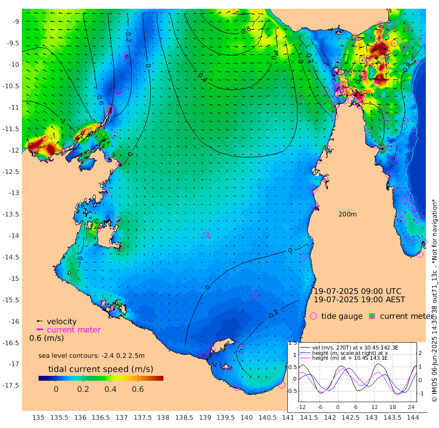 4cm/s 83T +3cm/s rms + 7cm/s -42T. ARA-GOC87 57m 12cm/s 139T +3cm/s rms + 2cm/s -2T. ARA-GOC87 60m 2cm/s -79T +2cm/s rms + 3cm/s 61T. ARA-GOC87 47m 85cm Daru 86cm Bobo Island 72cm Meer Island Barge 84cm Bramble Cay 97cm Unnamed Cay 83cm Pearce Cay 92cm Stephens Island 103cm Merrie England Shoals 91cm Mutacomal Reef 92cm Darnley Island Barge 72cm East Cay 89cm Yorke Island Barge 85cm Rennel Island 84cm Aureed Island 73cm Dungeness Reef 43cm Zagai Island 36cm Yam Island -17cm Dauan Island -8cm Saibai Island 2cm Phipi Reef 32cm Warrior Reef - West -8cm Mabuiag Island Barge 88cm Half Way Island 81cm Coconut Island 85cm Dugong Islet 59cm Poll Island 68cm Kirkcaldie Reef 45cm Suarji Island 62cm Sue Islet -29cm Hawkesbury Island 47cm Alert Patches 44cm Twin Island -27cm Badu Island 34cm St Pauls (Moa Island) -10cm Kubin (Moa Island) 22cm Ince Point 13cm Thursday Island 14cm Nardana Patches 1cm Turtle Head -8cm Round Island -17cm Goods Island -20cm Booby Island -22cm White Rocks Area 16cm Carpentaria 28cm Papou Point 2cm Bampfield Head -19cm Crab Island -23cm Red Wallis Island -10cm Packe Island 94cm Harrington Reef -21cm Herald Camp 11cm Sharp Point -9cm Red Island Point 28cm Possession Island 50cm Alpha Rock 63cm Frederick Point 88cm Wyborn Reef Light 81cm Tetley Island 59cm Triangle Reef 96cm Turtle Head Island 66cm Maclennan Cay 54cm Raine Island 90cm Mcsweeny Reef 89cm Collette Reef 71cm Shadwell Reef 100cm Hannibal Island 84cm Round Point -3cm Vrilya Point 86cm Cape Grenville 73cm Hicks Island 73cm Sir Charles Hardy Island 26cm Harvey Island 81cm Kay Reef 62cm Rocky Island 54cm Chapman Island 56cm Ham Reef 63cm Jubilee Reef 61cm Night Island 59cm Unnamed Reef No. 3 68cm Morris Island 66cm 1st 3 Mile Opening 67cm Creech Reef 61cm Fife Island 74cm Eden Reef 74cm Stanley Island 73cm Normanby River -128cm Yabooma Island -123cm Hutchison River -114cm Elcho Island -123cm North West Crocodile Island -50cm Cape Wessel -91cm Stevens Island -6cm Guluwuru Island -85cm Hopeful Bay -62cm Auster Point -69cm Two Island Bay -94cm Cadell Strait 88cm Mallison Island -20cm Melville Bay (Gove Harbour) -17cm Truant Island -3cm Cape Arnhem 0cm Cape Grey -2cm Hawk Island -5cm Milner Bay (Groote Eylandt) -4cm Cape Beatrice 6cm West Island 11cm Centre Island -5cm Mornington Island -4cm West Wellesley Islands -35cm Bountiful Island -62cm Albert River Mouth -52cm Sweers Island -61cm Karumba -14cm Nassau River Offshore -2cm Christmas Creek 0cm Archer River 5cm Boyd Point -9cm Weipa (Humbug Point) 13cm Pennefather River -10cm Cullen Point