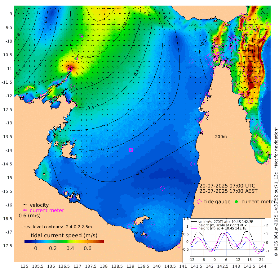 37cm/s 110T +3cm/s rms + 7cm/s -42T. ARA-GOC87 57m 9cm/s 154T +3cm/s rms + 2cm/s -2T. ARA-GOC87 60m 33cm/s 103T +2cm/s rms + 3cm/s 61T. ARA-GOC87 47m -5cm Daru 11cm Bobo Island 57cm Meer Island Barge 43cm Bramble Cay 15cm Unnamed Cay 23cm Pearce Cay 33cm Stephens Island 21cm Merrie England Shoals -14cm Mutacomal Reef 40cm Darnley Island Barge 54cm East Cay 18cm Yorke Island Barge 4cm Rennel Island 10cm Aureed Island -16cm Dungeness Reef -46cm Zagai Island -61cm Yam Island -71cm Dauan Island -71cm Saibai Island -70cm Phipi Reef -54cm Warrior Reef - West -74cm Mabuiag Island Barge 7cm Half Way Island -13cm Coconut Island -10cm Dugong Islet -39cm Poll Island -36cm Kirkcaldie Reef -69cm Suarji Island -39cm Sue Islet -52cm Hawkesbury Island -61cm Alert Patches -59cm Twin Island -47cm Badu Island -70cm St Pauls (Moa Island) -50cm Kubin (Moa Island) -62cm Ince Point -60cm Thursday Island -62cm Nardana Patches -49cm Turtle Head -55cm Round Island -34cm Goods Island -29cm Booby Island -41cm White Rocks Area -15cm Carpentaria -58cm Papou Point -32cm Bampfield Head -21cm Crab Island -37cm Red Wallis Island -46cm Packe Island -15cm Harrington Reef -57cm Herald Camp -31cm Sharp Point -50cm Red Island Point -55cm Possession Island -58cm Alpha Rock -40cm Frederick Point -13cm Wyborn Reef Light -23cm Tetley Island 35cm Triangle Reef 5cm Turtle Head Island 44cm Maclennan Cay 60cm Raine Island 21cm Mcsweeny Reef 27cm Collette Reef 46cm Shadwell Reef 35cm Hannibal Island 43cm Round Point -11cm Vrilya Point 40cm Cape Grenville 47cm Hicks Island 46cm Sir Charles Hardy Island 13cm Harvey Island 52cm Kay Reef 56cm Rocky Island 58cm Chapman Island 57cm Ham Reef 59cm Jubilee Reef 52cm Night Island 58cm Unnamed Reef No. 3 62cm Morris Island 63cm 1st 3 Mile Opening 61cm Creech Reef 64cm Fife Island 81cm Eden Reef 63cm Stanley Island 65cm Normanby River 68cm Yabooma Island 100cm Hutchison River 82cm Elcho Island 65cm North West Crocodile Island 78cm Cape Wessel 82cm Stevens Island 110cm Guluwuru Island 74cm Hopeful Bay 77cm Auster Point 81cm Two Island Bay 122cm Cadell Strait 181cm Mallison Island 89cm Melville Bay (Gove Harbour) 97cm Truant Island 67cm Cape Arnhem 33cm Cape Grey 13cm Hawk Island -19cm Milner Bay (Groote Eylandt) -27cm Cape Beatrice -65cm West Island -66cm Centre Island -56cm Mornington Island -61cm West Wellesley Islands -76cm Bountiful Island -74cm Albert River Mouth -72cm Sweers Island -81cm Karumba -44cm Nassau River Offshore -26cm Christmas Creek -5cm Archer River -3cm Boyd Point -5cm Weipa (Humbug Point) 5cm Pennefather River -19cm Cullen Point