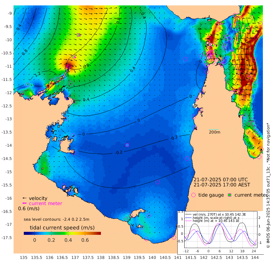 40cm/s 116T +3cm/s rms + 7cm/s -42T. ARA-GOC87 57m 6cm/s 138T +3cm/s rms + 2cm/s -2T. ARA-GOC87 60m 37cm/s 111T +2cm/s rms + 3cm/s 61T. ARA-GOC87 47m -56cm Daru -38cm Bobo Island 30cm Meer Island Barge 8cm Bramble Cay -32cm Unnamed Cay -21cm Pearce Cay -12cm Stephens Island -27cm Merrie England Shoals -63cm Mutacomal Reef -2cm Darnley Island Barge 26cm East Cay -29cm Yorke Island Barge -42cm Rennel Island -36cm Aureed Island -62cm Dungeness Reef -84cm Zagai Island -96cm Yam Island -88cm Dauan Island -86cm Saibai Island -98cm Phipi Reef -92cm Warrior Reef - West -78cm Mabuiag Island Barge -40cm Half Way Island -59cm Coconut Island -58cm Dugong Islet -79cm Poll Island -79cm Kirkcaldie Reef -106cm Suarji Island -79cm Sue Islet -20cm Hawkesbury Island -88cm Alert Patches -88cm Twin Island -23cm Badu Island -99cm St Pauls (Moa Island) -39cm Kubin (Moa Island) -75cm Ince Point -64cm Thursday Island -68cm Nardana Patches -43cm Turtle Head -39cm Round Island -5cm Goods Island 11cm Booby Island -4cm White Rocks Area 20cm Carpentaria -78cm Papou Point 3cm Bampfield Head 13cm Crab Island 0cm Red Wallis Island -29cm Packe Island -67cm Harrington Reef -30cm Herald Camp -42cm Sharp Point -39cm Red Island Point -68cm Possession Island -88cm Alpha Rock -78cm Frederick Point -60cm Wyborn Reef Light -68cm Tetley Island 12cm Triangle Reef -42cm Turtle Head Island 19cm Maclennan Cay 45cm Raine Island -22cm Mcsweeny Reef -13cm Collette Reef 19cm Shadwell Reef -10cm Hannibal Island 8cm Round Point 22cm Vrilya Point 6cm Cape Grenville 17cm Hicks Island 18cm Sir Charles Hardy Island 2cm Harvey Island 26cm Kay Reef 35cm Rocky Island 44cm Chapman Island 43cm Ham Reef 40cm Jubilee Reef 31cm Night Island 43cm Unnamed Reef No. 3 41cm Morris Island 44cm 1st 3 Mile Opening 41cm Creech Reef 41cm Fife Island 60cm Eden Reef 40cm Stanley Island 41cm Normanby River 123cm Yabooma Island 154cm Hutchison River 134cm Elcho Island 117cm North West Crocodile Island 104cm Cape Wessel 122cm Stevens Island 113cm Guluwuru Island 113cm Hopeful Bay 108cm Auster Point 113cm Two Island Bay 157cm Cadell Strait 147cm Mallison Island 95cm Melville Bay (Gove Harbour) 104cm Truant Island 66cm Cape Arnhem 26cm Cape Grey 3cm Hawk Island -31cm Milner Bay (Groote Eylandt) -41cm Cape Beatrice -89cm West Island -89cm Centre Island -92cm Mornington Island -97cm West Wellesley Islands -109cm Bountiful Island -105cm Albert River Mouth -108cm Sweers Island -113cm Karumba -69cm Nassau River Offshore -42cm Christmas Creek 1cm Archer River 8cm Boyd Point 10cm Weipa (Humbug Point) 20cm Pennefather River 9cm Cullen Point