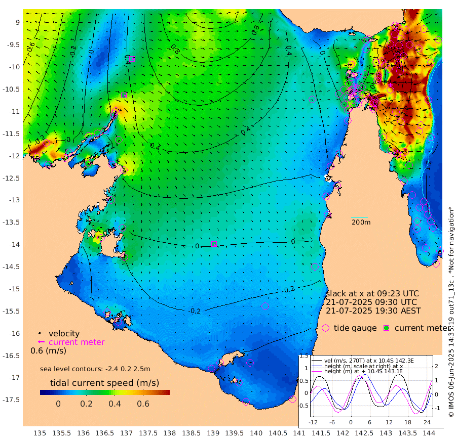 27cm/s 116T +3cm/s rms + 7cm/s -42T. ARA-GOC87 57m 23cm/s 159T +3cm/s rms + 2cm/s -2T. ARA-GOC87 60m 19cm/s 116T +2cm/s rms + 3cm/s 61T. ARA-GOC87 47m 106cm Daru 117cm Bobo Island 123cm Meer Island Barge 134cm Bramble Cay 130cm Unnamed Cay 130cm Pearce Cay 137cm Stephens Island 140cm Merrie England Shoals 112cm Mutacomal Reef 135cm Darnley Island Barge 128cm East Cay 120cm Yorke Island Barge 117cm Rennel Island 114cm Aureed Island 92cm Dungeness Reef 35cm Zagai Island 31cm Yam Island -31cm Dauan Island -29cm Saibai Island -15cm Phipi Reef 26cm Warrior Reef - West -22cm Mabuiag Island Barge 121cm Half Way Island 97cm Coconut Island 110cm Dugong Islet 65cm Poll Island 77cm Kirkcaldie Reef 30cm Suarji Island 60cm Sue Islet 7cm Hawkesbury Island 40cm Alert Patches 42cm Twin Island -2cm Badu Island 23cm St Pauls (Moa Island) 13cm Kubin (Moa Island) 21cm Ince Point 17cm Thursday Island 16cm Nardana Patches 18cm Turtle Head 5cm Round Island 20cm Goods Island 17cm Booby Island 15cm White Rocks Area 31cm Carpentaria 25cm Papou Point 27cm Bampfield Head 10cm Crab Island 13cm Red Wallis Island 20cm Packe Island 114cm Harrington Reef 1cm Herald Camp -5cm Sharp Point 10cm Red Island Point 26cm Possession Island 42cm Alpha Rock 70cm Frederick Point 105cm Wyborn Reef Light 93cm Tetley Island 100cm Triangle Reef 127cm Turtle Head Island 115cm Maclennan Cay 107cm Raine Island 124cm Mcsweeny Reef 124cm Collette Reef 113cm Shadwell Reef 140cm Hannibal Island 137cm Round Point 21cm Vrilya Point 131cm Cape Grenville 124cm Hicks Island 126cm Sir Charles Hardy Island 40cm Harvey Island 132cm Kay Reef 115cm Rocky Island 111cm Chapman Island 109cm Ham Reef 116cm Jubilee Reef 107cm Night Island 113cm Unnamed Reef No. 3 124cm Morris Island 118cm 1st 3 Mile Opening 121cm Creech Reef 117cm Fife Island 145cm Eden Reef 130cm Stanley Island 138cm Normanby River -16cm Yabooma Island 9cm Hutchison River -7cm Elcho Island -21cm North West Crocodile Island 28cm Cape Wessel 6cm Stevens Island 72cm Guluwuru Island 2cm Hopeful Bay 19cm Auster Point 18cm Two Island Bay 34cm Cadell Strait 155cm Mallison Island 45cm Melville Bay (Gove Harbour) 53cm Truant Island 36cm Cape Arnhem 10cm Cape Grey -7cm Hawk Island -43cm Milner Bay (Groote Eylandt) -42cm Cape Beatrice -69cm West Island -67cm Centre Island -65cm Mornington Island -63cm West Wellesley Islands -97cm Bountiful Island -130cm Albert River Mouth -140cm Sweers Island -131cm Karumba -39cm Nassau River Offshore -4cm Christmas Creek 18cm Archer River 25cm Boyd Point 18cm Weipa (Humbug Point) 29cm Pennefather River 10cm Cullen Point