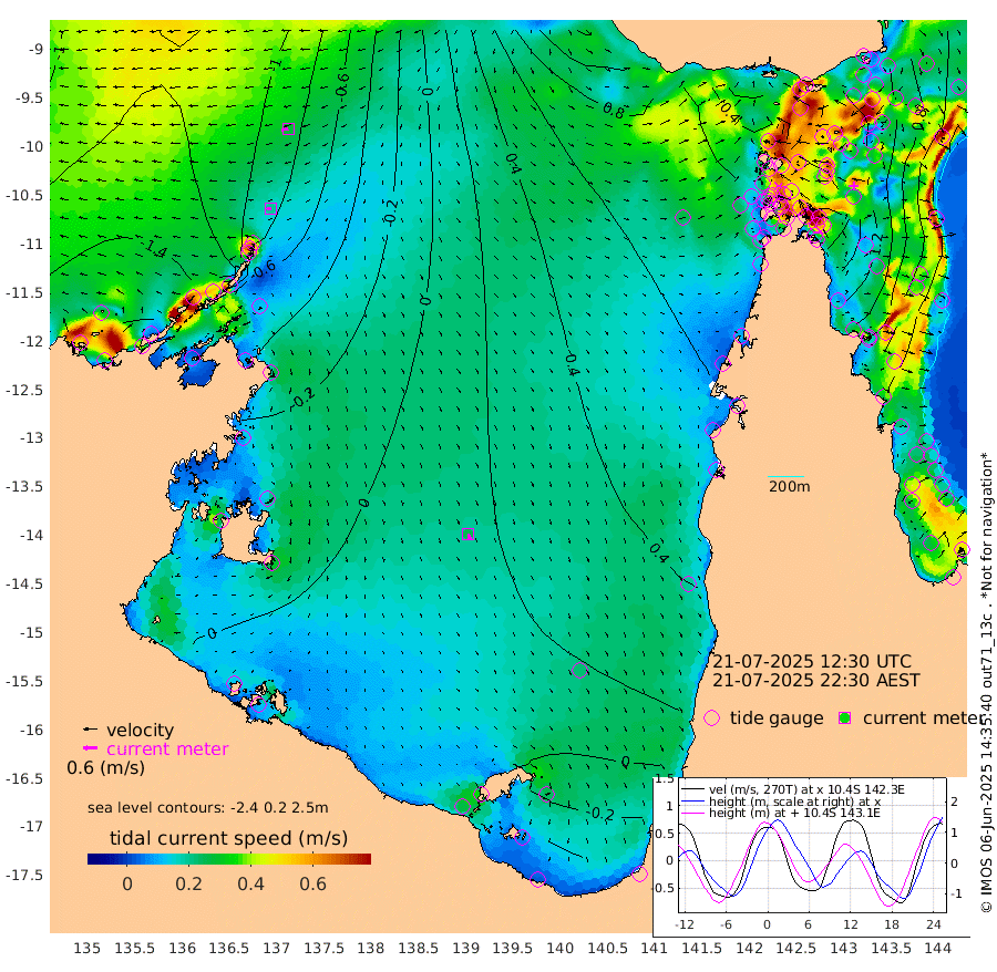 19cm/s -98T +3cm/s rms + 7cm/s -42T. ARA-GOC87 57m 25cm/s 165T +3cm/s rms + 2cm/s -2T. ARA-GOC87 60m 29cm/s -101T +2cm/s rms + 3cm/s 61T. ARA-GOC87 47m 147cm Daru 131cm Bobo Island 61cm Meer Island Barge 89cm Bramble Cay 132cm Unnamed Cay 127cm Pearce Cay 116cm Stephens Island 131cm Merrie England Shoals 156cm Mutacomal Reef 103cm Darnley Island Barge 66cm East Cay 125cm Yorke Island Barge 141cm Rennel Island 132cm Aureed Island 153cm Dungeness Reef 145cm Zagai Island 153cm Yam Island 129cm Dauan Island 118cm Saibai Island 141cm Phipi Reef 151cm Warrior Reef - West 127cm Mabuiag Island Barge 139cm Half Way Island 155cm Coconut Island 156cm Dugong Islet 160cm Poll Island 163cm Kirkcaldie Reef 179cm Suarji Island 153cm Sue Islet 120cm Hawkesbury Island 179cm Alert Patches 172cm Twin Island 120cm Badu Island 173cm St Pauls (Moa Island) 130cm Kubin (Moa Island) 158cm Ince Point 151cm Thursday Island 153cm Nardana Patches 142cm Turtle Head 124cm Round Island 120cm Goods Island 110cm Booby Island 117cm White Rocks Area 98cm Carpentaria 144cm Papou Point 127cm Bampfield Head 85cm Crab Island 112cm Red Wallis Island 131cm Packe Island 170cm Harrington Reef 119cm Herald Camp 51cm Sharp Point 114cm Red Island Point 147cm Possession Island 159cm Alpha Rock 168cm Frederick Point 156cm Wyborn Reef Light 160cm Tetley Island 71cm Triangle Reef 160cm Turtle Head Island 70cm Maclennan Cay 39cm Raine Island 123cm Mcsweeny Reef 110cm Collette Reef 69cm Shadwell Reef 115cm Hannibal Island 93cm Round Point 81cm Vrilya Point 89cm Cape Grenville 74cm Hicks Island 77cm Sir Charles Hardy Island 26cm Harvey Island 69cm Kay Reef 49cm Rocky Island 42cm Chapman Island 39cm Ham Reef 47cm Jubilee Reef 50cm Night Island 44cm Unnamed Reef No. 3 52cm Morris Island 52cm 1st 3 Mile Opening 52cm Creech Reef 46cm Fife Island 43cm Eden Reef 54cm Stanley Island 52cm Normanby River -159cm Yabooma Island -171cm Hutchison River -164cm Elcho Island -162cm North West Crocodile Island -104cm Cape Wessel -145cm Stevens Island -81cm Guluwuru Island -141cm Hopeful Bay -113cm Auster Point -127cm Two Island Bay -163cm Cadell Strait -72cm Mallison Island -80cm Melville Bay (Gove Harbour) -80cm Truant Island -50cm Cape Arnhem -39cm Cape Grey -34cm Hawk Island -38cm Milner Bay (Groote Eylandt) -26cm Cape Beatrice -6cm West Island -4cm Centre Island -7cm Mornington Island 3cm West Wellesley Islands -28cm Bountiful Island -75cm Albert River Mouth -90cm Sweers Island -65cm Karumba 16cm Nassau River Offshore 46cm Christmas Creek 51cm Archer River 65cm Boyd Point 60cm Weipa (Humbug Point) 63cm Pennefather River 73cm Cullen Point
