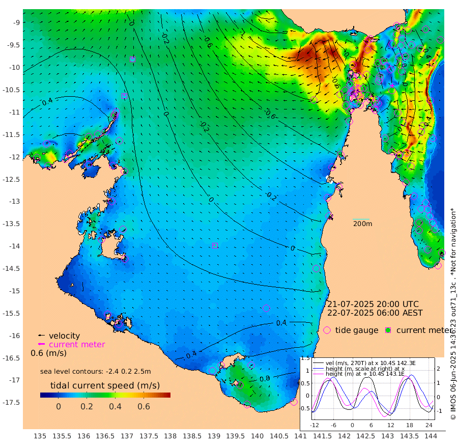 14cm/s -23T +3cm/s rms + 7cm/s -42T. ARA-GOC87 57m 15cm/s -70T +3cm/s rms + 2cm/s -2T. ARA-GOC87 60m 16cm/s 2T +2cm/s rms + 3cm/s 61T. ARA-GOC87 47m -37cm Daru -25cm Bobo Island 24cm Meer Island Barge 13cm Bramble Cay -16cm Unnamed Cay -22cm Pearce Cay -5cm Stephens Island -14cm Merrie England Shoals -40cm Mutacomal Reef 2cm Darnley Island Barge 28cm East Cay -19cm Yorke Island Barge -30cm Rennel Island -26cm Aureed Island -48cm Dungeness Reef -70cm Zagai Island -72cm Yam Island -81cm Dauan Island -75cm Saibai Island -66cm Phipi Reef -66cm Warrior Reef - West -104cm Mabuiag Island Barge -33cm Half Way Island -56cm Coconut Island -46cm Dugong Islet -72cm Poll Island -67cm Kirkcaldie Reef -94cm Suarji Island -70cm Sue Islet -119cm Hawkesbury Island -109cm Alert Patches -103cm Twin Island -120cm Badu Island -112cm St Pauls (Moa Island) -107cm Kubin (Moa Island) -111cm Ince Point -117cm Thursday Island -115cm Nardana Patches -109cm Turtle Head -99cm Round Island -111cm Goods Island -123cm Booby Island -121cm White Rocks Area -122cm Carpentaria -94cm Papou Point -119cm Bampfield Head -104cm Crab Island -121cm Red Wallis Island -108cm Packe Island -59cm Harrington Reef -91cm Herald Camp -32cm Sharp Point -93cm Red Island Point -96cm Possession Island -90cm Alpha Rock -83cm Frederick Point -54cm Wyborn Reef Light -64cm Tetley Island 4cm Triangle Reef -64cm Turtle Head Island 16cm Maclennan Cay 29cm Raine Island -19cm Mcsweeny Reef -7cm Collette Reef 15cm Shadwell Reef -1cm Hannibal Island 9cm Round Point -111cm Vrilya Point 13cm Cape Grenville 21cm Hicks Island 27cm Sir Charles Hardy Island 5cm Harvey Island 26cm Kay Reef 33cm Rocky Island 33cm Chapman Island 33cm Ham Reef 29cm Jubilee Reef 24cm Night Island 30cm Unnamed Reef No. 3 32cm Morris Island 25cm 1st 3 Mile Opening 29cm Creech Reef 32cm Fife Island 48cm Eden Reef 33cm Stanley Island 42cm Normanby River 61cm Yabooma Island 75cm Hutchison River 67cm Elcho Island 66cm North West Crocodile Island 36cm Cape Wessel 51cm Stevens Island 49cm Guluwuru Island 62cm Hopeful Bay 38cm Auster Point 47cm Two Island Bay 68cm Cadell Strait 70cm Mallison Island 44cm Melville Bay (Gove Harbour) 37cm Truant Island 29cm Cape Arnhem 31cm Cape Grey 38cm Hawk Island 36cm Milner Bay (Groote Eylandt) 39cm Cape Beatrice 33cm West Island 33cm Centre Island 89cm Mornington Island 82cm West Wellesley Islands 129cm Bountiful Island 156cm Albert River Mouth 158cm Sweers Island 152cm Karumba 69cm Nassau River Offshore 34cm Christmas Creek -13cm Archer River -40cm Boyd Point -29cm Weipa (Humbug Point) -72cm Pennefather River -80cm Cullen Point