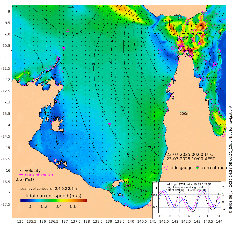22cm/s 35T +3cm/s rms + 7cm/s -42T. ARA-GOC87 57m 24cm/s -7T +3cm/s rms + 2cm/s -2T. ARA-GOC87 60m 28cm/s 39T +2cm/s rms + 3cm/s 61T. ARA-GOC87 47m 63cm Daru 70cm Bobo Island 26cm Meer Island Barge 51cm Bramble Cay 66cm Unnamed Cay 64cm Pearce Cay 61cm Stephens Island 73cm Merrie England Shoals 72cm Mutacomal Reef 54cm Darnley Island Barge 31cm East Cay 59cm Yorke Island Barge 58cm Rennel Island 61cm Aureed Island 45cm Dungeness Reef 18cm Zagai Island 16cm Yam Island -66cm Dauan Island -55cm Saibai Island -40cm Phipi Reef 6cm Warrior Reef - West -69cm Mabuiag Island Barge 65cm Half Way Island 49cm Coconut Island 61cm Dugong Islet 35cm Poll Island 36cm Kirkcaldie Reef 6cm Suarji Island 29cm Sue Islet -158cm Hawkesbury Island -19cm Alert Patches -4cm Twin Island -152cm Badu Island -12cm St Pauls (Moa Island) -111cm Kubin (Moa Island) -50cm Ince Point -74cm Thursday Island -69cm Nardana Patches -112cm Turtle Head -122cm Round Island -163cm Goods Island -193cm Booby Island -169cm White Rocks Area -167cm Carpentaria -12cm Papou Point -190cm Bampfield Head -165cm Crab Island -176cm Red Wallis Island -130cm Packe Island 69cm Harrington Reef -162cm Herald Camp 6cm Sharp Point -94cm Red Island Point -46cm Possession Island 13cm Alpha Rock 25cm Frederick Point 63cm Wyborn Reef Light 55cm Tetley Island 15cm Triangle Reef 61cm Turtle Head Island 19cm Maclennan Cay -3cm Raine Island 56cm Mcsweeny Reef 50cm Collette Reef 19cm Shadwell Reef 61cm Hannibal Island 50cm Round Point -156cm Vrilya Point 43cm Cape Grenville 32cm Hicks Island 18cm Sir Charles Hardy Island 13cm Harvey Island 30cm Kay Reef 12cm Rocky Island 1cm Chapman Island 0cm Ham Reef 7cm Jubilee Reef 14cm Night Island 1cm Unnamed Reef No. 3 13cm Morris Island -2cm 1st 3 Mile Opening 7cm Creech Reef 16cm Fife Island 14cm Eden Reef 17cm Stanley Island 33cm Normanby River 7cm Yabooma Island 8cm Hutchison River 8cm Elcho Island 12cm North West Crocodile Island 30cm Cape Wessel 33cm Stevens Island 37cm Guluwuru Island 24cm Hopeful Bay 26cm Auster Point 32cm Two Island Bay 33cm Cadell Strait 77cm Mallison Island 34cm Melville Bay (Gove Harbour) 32cm Truant Island 27cm Cape Arnhem 41cm Cape Grey 51cm Hawk Island 73cm Milner Bay (Groote Eylandt) 68cm Cape Beatrice 86cm West Island 85cm Centre Island 80cm Mornington Island 83cm West Wellesley Islands 89cm Bountiful Island 114cm Albert River Mouth 144cm Sweers Island 105cm Karumba 26cm Nassau River Offshore -30cm Christmas Creek -86cm Archer River -107cm Boyd Point -121cm Weipa (Humbug Point) -105cm Pennefather River -144cm Cullen Point
