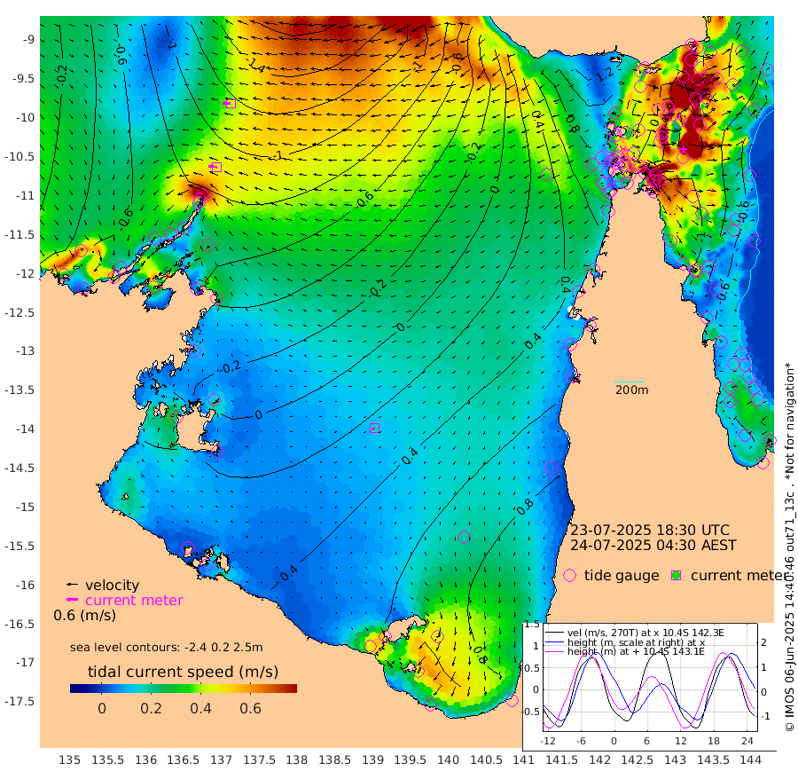 45cm/s -84T +3cm/s rms + 7cm/s -42T. ARA-GOC87 57m 17cm/s -128T +3cm/s rms + 2cm/s -2T. ARA-GOC87 60m 44cm/s -91T +2cm/s rms + 3cm/s 61T. ARA-GOC87 47m -95cm Daru -110cm Bobo Island -69cm Meer Island Barge -92cm Bramble Cay -106cm Unnamed Cay -114cm Pearce Cay -106cm Stephens Island -112cm Merrie England Shoals -105cm Mutacomal Reef -97cm Darnley Island Barge -73cm East Cay -99cm Yorke Island Barge -98cm Rennel Island -100cm Aureed Island -79cm Dungeness Reef -41cm Zagai Island -36cm Yam Island 50cm Dauan Island 39cm Saibai Island 46cm Phipi Reef -20cm Warrior Reef - West 25cm Mabuiag Island Barge -106cm Half Way Island -91cm Coconut Island -101cm Dugong Islet -71cm Poll Island -69cm Kirkcaldie Reef -35cm Suarji Island -64cm Sue Islet 47cm Hawkesbury Island -32cm Alert Patches -45cm Twin Island 57cm Badu Island -32cm St Pauls (Moa Island) 27cm Kubin (Moa Island) -8cm Ince Point 6cm Thursday Island 5cm Nardana Patches 34cm Turtle Head 42cm Round Island 57cm Goods Island 70cm Booby Island 53cm White Rocks Area 40cm Carpentaria -34cm Papou Point 56cm Bampfield Head 67cm Crab Island 62cm Red Wallis Island 42cm Packe Island -115cm Harrington Reef 76cm Herald Camp -3cm Sharp Point 28cm Red Island Point -10cm Possession Island -54cm Alpha Rock -73cm Frederick Point -110cm Wyborn Reef Light -102cm Tetley Island -57cm Triangle Reef -130cm Turtle Head Island -61cm Maclennan Cay -40cm Raine Island -100cm Mcsweeny Reef -89cm Collette Reef -58cm Shadwell Reef -103cm Hannibal Island -97cm Round Point 52cm Vrilya Point -82cm Cape Grenville -73cm Hicks Island -61cm Sir Charles Hardy Island -25cm Harvey Island -72cm Kay Reef -51cm Rocky Island -44cm Chapman Island -43cm Ham Reef -51cm Jubilee Reef -50cm Night Island -46cm Unnamed Reef No. 3 -57cm Morris Island -46cm 1st 3 Mile Opening -52cm Creech Reef -58cm Fife Island -64cm Eden Reef -60cm Stanley Island -76cm Normanby River -80cm Yabooma Island -98cm Hutchison River -78cm Elcho Island -69cm North West Crocodile Island -112cm Cape Wessel -108cm Stevens Island -117cm Guluwuru Island -84cm Hopeful Bay -105cm Auster Point -110cm Two Island Bay -126cm Cadell Strait -169cm Mallison Island -97cm Melville Bay (Gove Harbour) -112cm Truant Island -70cm Cape Arnhem -43cm Cape Grey -23cm Hawk Island -3cm Milner Bay (Groote Eylandt) 15cm Cape Beatrice 39cm West Island 42cm Centre Island 96cm Mornington Island 88cm West Wellesley Islands 129cm Bountiful Island 150cm Albert River Mouth 128cm Sweers Island 157cm Karumba 107cm Nassau River Offshore 100cm Christmas Creek 78cm Archer River 62cm Boyd Point 84cm Weipa (Humbug Point) 41cm Pennefather River 67cm Cullen Point