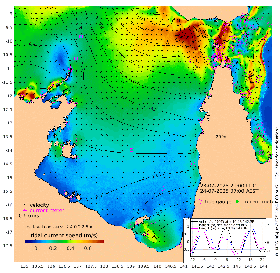 17cm/s -57T +3cm/s rms + 7cm/s -42T. ARA-GOC87 57m 20cm/s -73T +3cm/s rms + 2cm/s -2T. ARA-GOC87 60m 12cm/s -33T +2cm/s rms + 3cm/s 61T. ARA-GOC87 47m -65cm Daru -55cm Bobo Island 8cm Meer Island Barge -4cm Bramble Cay -39cm Unnamed Cay -45cm Pearce Cay -30cm Stephens Island -33cm Merrie England Shoals -62cm Mutacomal Reef -24cm Darnley Island Barge 12cm East Cay -48cm Yorke Island Barge -53cm Rennel Island -52cm Aureed Island -70cm Dungeness Reef -95cm Zagai Island -96cm Yam Island -92cm Dauan Island -93cm Saibai Island -68cm Phipi Reef -89cm Warrior Reef - West -108cm Mabuiag Island Barge -58cm Half Way Island -78cm Coconut Island -72cm Dugong Islet -93cm Poll Island -89cm Kirkcaldie Reef -108cm Suarji Island -96cm Sue Islet -99cm Hawkesbury Island -117cm Alert Patches -116cm Twin Island -96cm Badu Island -127cm St Pauls (Moa Island) -99cm Kubin (Moa Island) -113cm Ince Point -113cm Thursday Island -112cm Nardana Patches -93cm Turtle Head -87cm Round Island -82cm Goods Island -88cm Booby Island -86cm White Rocks Area -104cm Carpentaria -110cm Papou Point -98cm Bampfield Head -72cm Crab Island -88cm Red Wallis Island -85cm Packe Island -87cm Harrington Reef -76cm Herald Camp -37cm Sharp Point -81cm Red Island Point -101cm Possession Island -108cm Alpha Rock -104cm Frederick Point -81cm Wyborn Reef Light -91cm Tetley Island -9cm Triangle Reef -94cm Turtle Head Island 1cm Maclennan Cay 24cm Raine Island -41cm Mcsweeny Reef -25cm Collette Reef 3cm Shadwell Reef -21cm Hannibal Island -6cm Round Point -81cm Vrilya Point -1cm Cape Grenville 4cm Hicks Island 9cm Sir Charles Hardy Island -1cm Harvey Island 16cm Kay Reef 23cm Rocky Island 30cm Chapman Island 24cm Ham Reef 19cm Jubilee Reef 16cm Night Island 24cm Unnamed Reef No. 3 24cm Morris Island 18cm 1st 3 Mile Opening 20cm Creech Reef 19cm Fife Island 41cm Eden Reef 25cm Stanley Island 29cm Normanby River 63cm Yabooma Island 73cm Hutchison River 71cm Elcho Island 70cm North West Crocodile Island 8cm Cape Wessel 43cm Stevens Island 8cm Guluwuru Island 58cm Hopeful Bay 19cm Auster Point 19cm Two Island Bay 42cm Cadell Strait -3cm Mallison Island 14cm Melville Bay (Gove Harbour) 1cm Truant Island 4cm Cape Arnhem 15cm Cape Grey 31cm Hawk Island 39cm Milner Bay (Groote Eylandt) 49cm Cape Beatrice 48cm West Island 52cm Centre Island 119cm Mornington Island 112cm West Wellesley Islands 166cm Bountiful Island 212cm Albert River Mouth 209cm Sweers Island 206cm Karumba 105cm Nassau River Offshore 65cm Christmas Creek 19cm Archer River -20cm Boyd Point 1cm Weipa (Humbug Point) -45cm Pennefather River -55cm Cullen Point