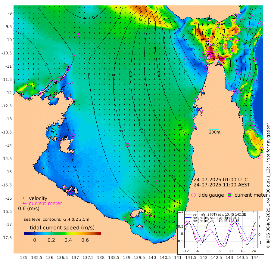 24cm/s 42T +3cm/s rms + 7cm/s -42T. ARA-GOC87 57m 27cm/s -5T +3cm/s rms + 2cm/s -2T. ARA-GOC87 60m 31cm/s 44T +2cm/s rms + 3cm/s 61T. ARA-GOC87 47m 64cm Daru 71cm Bobo Island 14cm Meer Island Barge 39cm Bramble Cay 59cm Unnamed Cay 62cm Pearce Cay 54cm Stephens Island 63cm Merrie England Shoals 69cm Mutacomal Reef 46cm Darnley Island Barge 18cm East Cay 56cm Yorke Island Barge 55cm Rennel Island 62cm Aureed Island 48cm Dungeness Reef 31cm Zagai Island 23cm Yam Island -48cm Dauan Island -40cm Saibai Island -26cm Phipi Reef 20cm Warrior Reef - West -58cm Mabuiag Island Barge 61cm Half Way Island 53cm Coconut Island 59cm Dugong Islet 42cm Poll Island 38cm Kirkcaldie Reef 22cm Suarji Island 35cm Sue Islet -170cm Hawkesbury Island -10cm Alert Patches 4cm Twin Island -152cm Badu Island 1cm St Pauls (Moa Island) -113cm Kubin (Moa Island) -43cm Ince Point -70cm Thursday Island -63cm Nardana Patches -111cm Turtle Head -126cm Round Island -170cm Goods Island -204cm Booby Island -177cm White Rocks Area -177cm Carpentaria -5cm Papou Point -199cm Bampfield Head -175cm Crab Island -185cm Red Wallis Island -136cm Packe Island 71cm Harrington Reef -175cm Herald Camp 10cm Sharp Point -99cm Red Island Point -42cm Possession Island 20cm Alpha Rock 32cm Frederick Point 64cm Wyborn Reef Light 59cm Tetley Island 8cm Triangle Reef 61cm Turtle Head Island 8cm Maclennan Cay -15cm Raine Island 52cm Mcsweeny Reef 43cm Collette Reef 9cm Shadwell Reef 52cm Hannibal Island 38cm Round Point -167cm Vrilya Point 29cm Cape Grenville 20cm Hicks Island 3cm Sir Charles Hardy Island 10cm Harvey Island 13cm Kay Reef -2cm Rocky Island -13cm Chapman Island -15cm Ham Reef -7cm Jubilee Reef 3cm Night Island -13cm Unnamed Reef No. 3 -1cm Morris Island -14cm 1st 3 Mile Opening -7cm Creech Reef 7cm Fife Island -4cm Eden Reef 0cm Stanley Island 14cm Normanby River 7cm Yabooma Island 11cm Hutchison River 10cm Elcho Island 12cm North West Crocodile Island 36cm Cape Wessel 38cm Stevens Island 45cm Guluwuru Island 26cm Hopeful Bay 33cm Auster Point 35cm Two Island Bay 40cm Cadell Strait 83cm Mallison Island 44cm Melville Bay (Gove Harbour) 44cm Truant Island 37cm Cape Arnhem 50cm Cape Grey 59cm Hawk Island 82cm Milner Bay (Groote Eylandt) 74cm Cape Beatrice 93cm West Island 91cm Centre Island 84cm Mornington Island 87cm West Wellesley Islands 92cm Bountiful Island 121cm Albert River Mouth 157cm Sweers Island 109cm Karumba 22cm Nassau River Offshore -39cm Christmas Creek -97cm Archer River -116cm Boyd Point -132cm Weipa (Humbug Point) -113cm Pennefather River -156cm Cullen Point