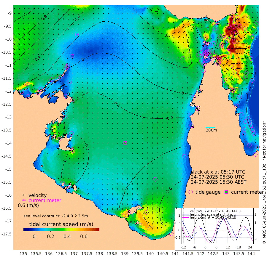 3cm/s 95T +3cm/s rms + 7cm/s -42T. ARA-GOC87 57m 31cm/s 17T +3cm/s rms + 2cm/s -2T. ARA-GOC87 60m 10cm/s 121T +2cm/s rms + 3cm/s 61T. ARA-GOC87 47m -151cm Daru -155cm Bobo Island -129cm Meer Island Barge -155cm Bramble Cay -161cm Unnamed Cay -167cm Pearce Cay -162cm Stephens Island -166cm Merrie England Shoals -157cm Mutacomal Reef -152cm Darnley Island Barge -144cm East Cay -147cm Yorke Island Barge -156cm Rennel Island -152cm Aureed Island -143cm Dungeness Reef -88cm Zagai Island -94cm Yam Island -51cm Dauan Island -36cm Saibai Island -83cm Phipi Reef -103cm Warrior Reef - West -15cm Mabuiag Island Barge -151cm Half Way Island -136cm Coconut Island -150cm Dugong Islet -114cm Poll Island -124cm Kirkcaldie Reef -92cm Suarji Island -99cm Sue Islet -14cm Hawkesbury Island -79cm Alert Patches -83cm Twin Island -13cm Badu Island -68cm St Pauls (Moa Island) -33cm Kubin (Moa Island) -54cm Ince Point -40cm Thursday Island -43cm Nardana Patches -44cm Turtle Head -19cm Round Island -23cm Goods Island 9cm Booby Island -6cm White Rocks Area 47cm Carpentaria -59cm Papou Point 11cm Bampfield Head 13cm Crab Island 0cm Red Wallis Island -40cm Packe Island -152cm Harrington Reef -17cm Herald Camp -13cm Sharp Point -37cm Red Island Point -51cm Possession Island -76cm Alpha Rock -110cm Frederick Point -139cm Wyborn Reef Light -128cm Tetley Island -114cm Triangle Reef -141cm Turtle Head Island -127cm Maclennan Cay -110cm Raine Island -150cm Mcsweeny Reef -146cm Collette Reef -123cm Shadwell Reef -162cm Hannibal Island -159cm Round Point 28cm Vrilya Point -146cm Cape Grenville -141cm Hicks Island -147cm Sir Charles Hardy Island -45cm Harvey Island -140cm Kay Reef -125cm Rocky Island -122cm Chapman Island -112cm Ham Reef -118cm Jubilee Reef -115cm Night Island -118cm Unnamed Reef No. 3 -130cm Morris Island -115cm 1st 3 Mile Opening -124cm Creech Reef -129cm Fife Island -148cm Eden Reef -132cm Stanley Island -148cm Normanby River 15cm Yabooma Island -3cm Hutchison River 18cm Elcho Island 19cm North West Crocodile Island 11cm Cape Wessel 15cm Stevens Island -29cm Guluwuru Island 12cm Hopeful Bay 15cm Auster Point 19cm Two Island Bay -14cm Cadell Strait -74cm Mallison Island -17cm Melville Bay (Gove Harbour) -13cm Truant Island -12cm Cape Arnhem -4cm Cape Grey -7cm Hawk Island 24cm Milner Bay (Groote Eylandt) 5cm Cape Beatrice 20cm West Island 21cm Centre Island -63cm Mornington Island -66cm West Wellesley Islands -80cm Bountiful Island -67cm Albert River Mouth -42cm Sweers Island -74cm Karumba -94cm Nassau River Offshore -96cm Christmas Creek -56cm Archer River -32cm Boyd Point -42cm Weipa (Humbug Point) 0cm Pennefather River 11cm Cullen Point